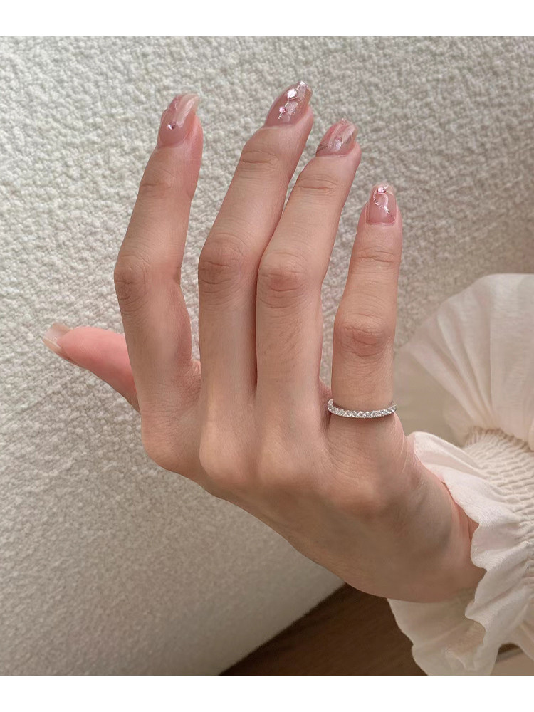 [整圈滿鑽]超閃小碎鑽戒指尾戒女小指超小號尺寸小拇指排鑽精緻防