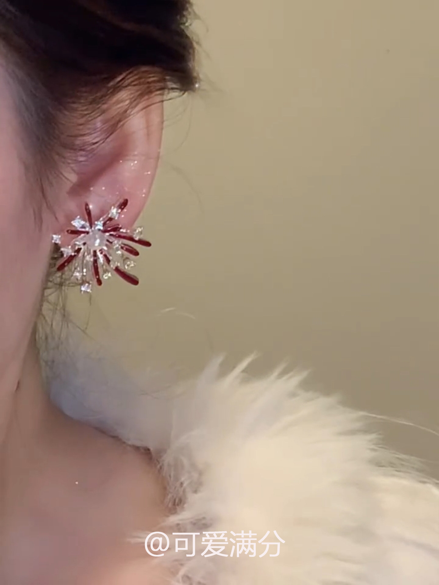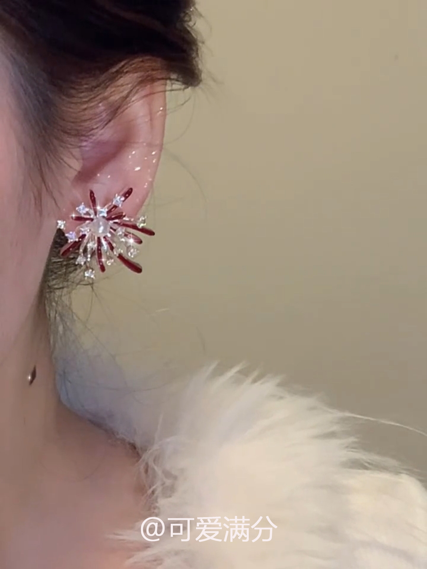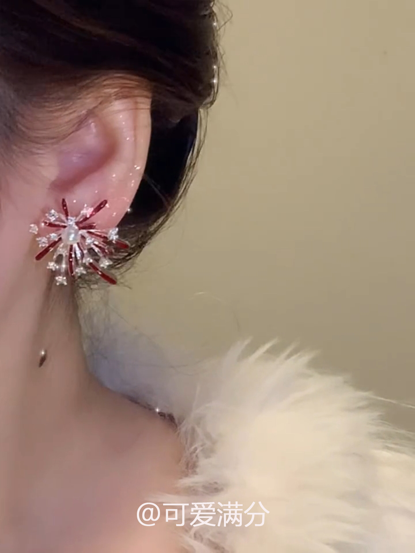 「絢爛綻放」新年紅色滴釉菸花珍珠耳釘爆閃精緻顯白氣質閃鑽耳飾