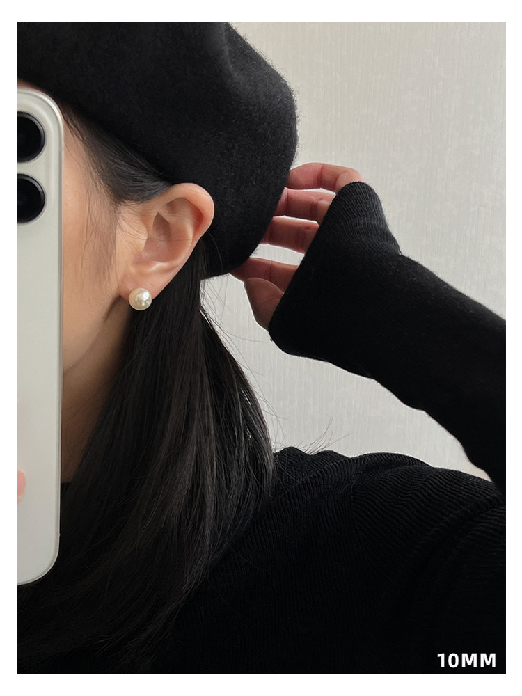 DOUDOUSTORE強光ins正圓珍珠fever同款博主耳釘復古簡約耳環女