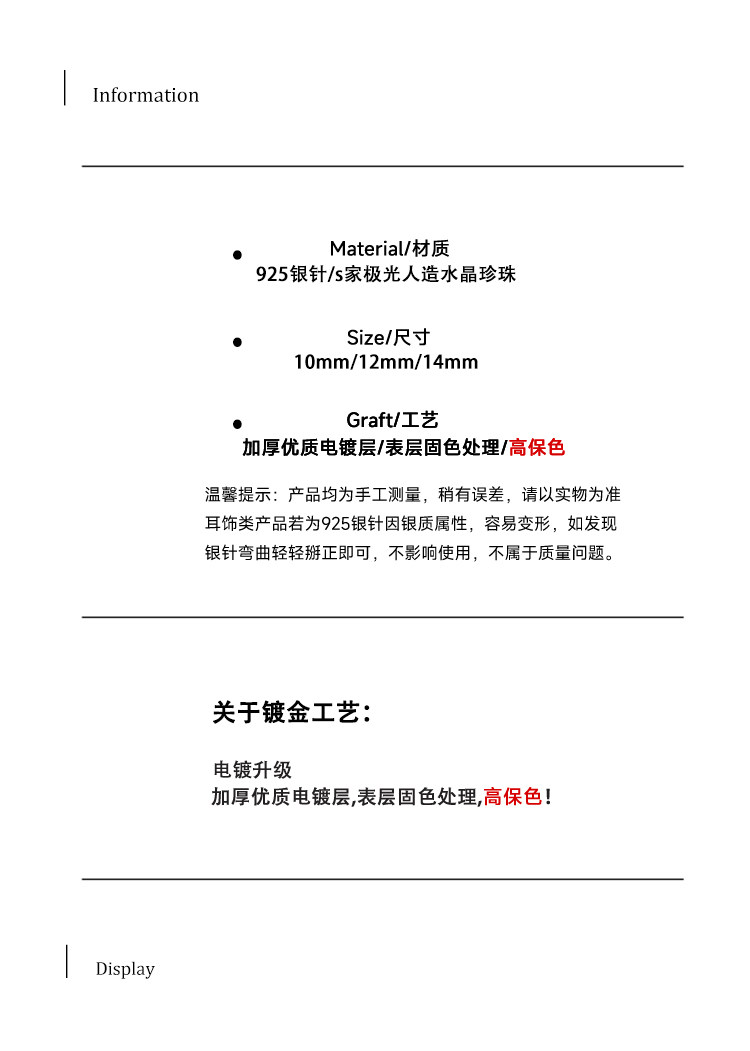 款式及尺寸: