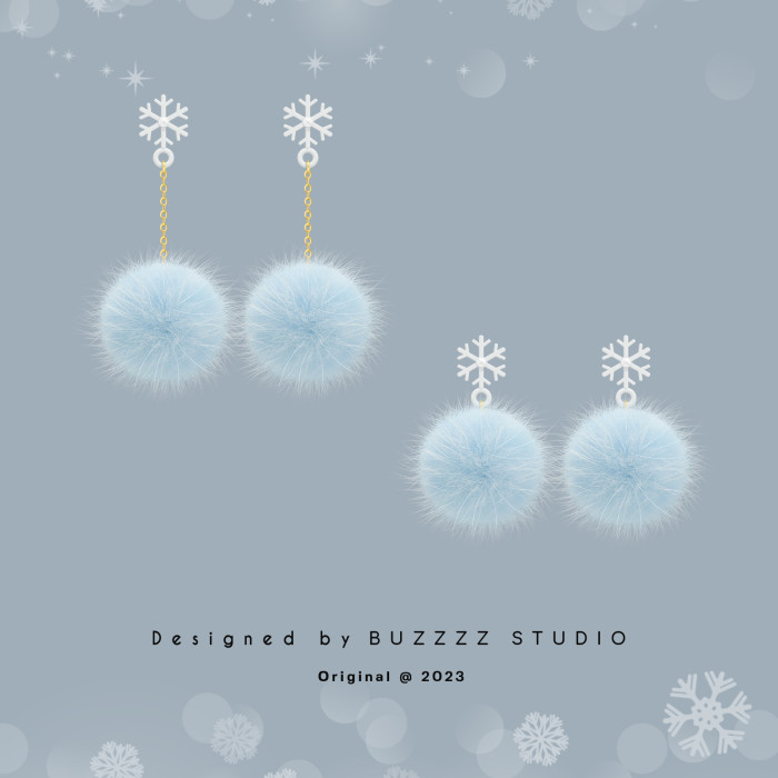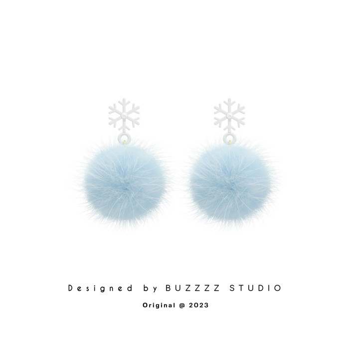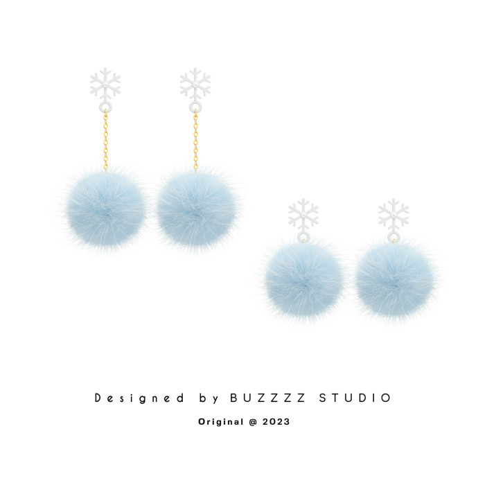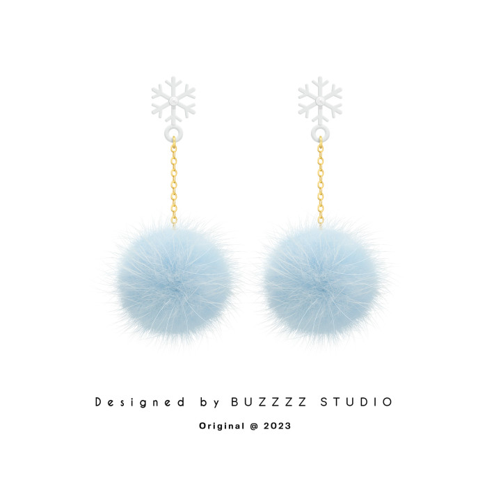 原創白色雪花毛絨毛球耳釘冬季氣質銀針長款耳環無耳洞耳夾耳飾