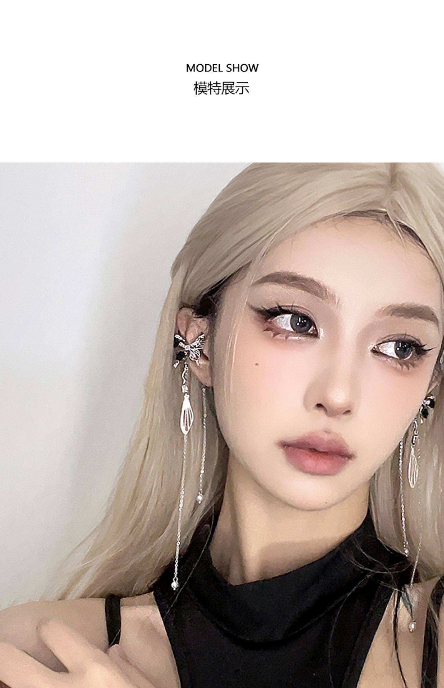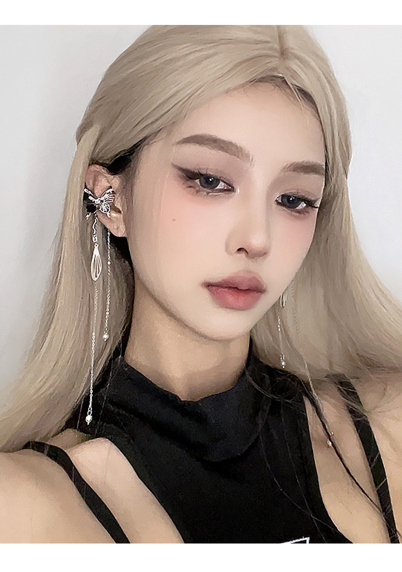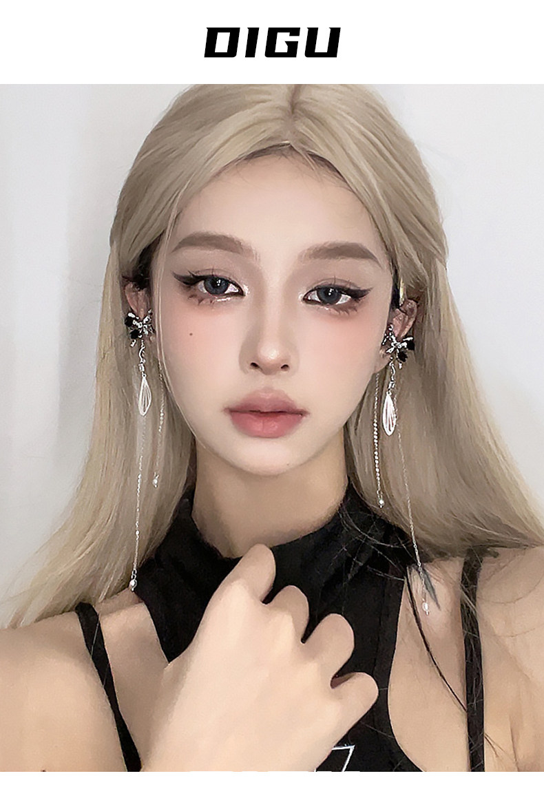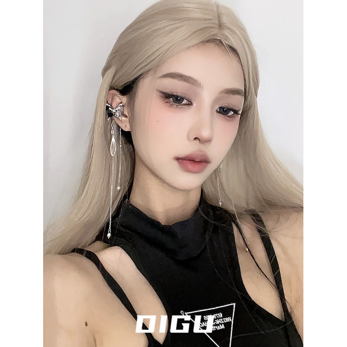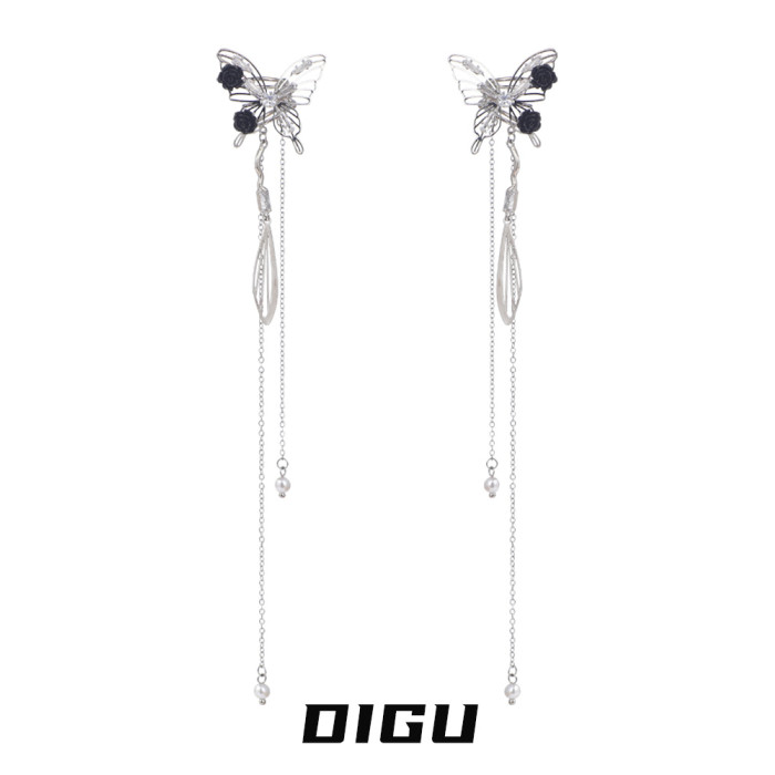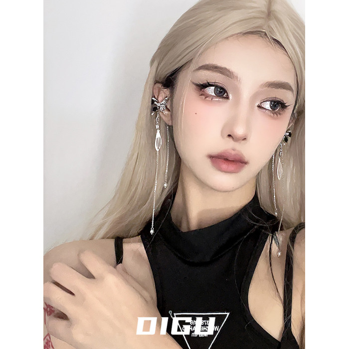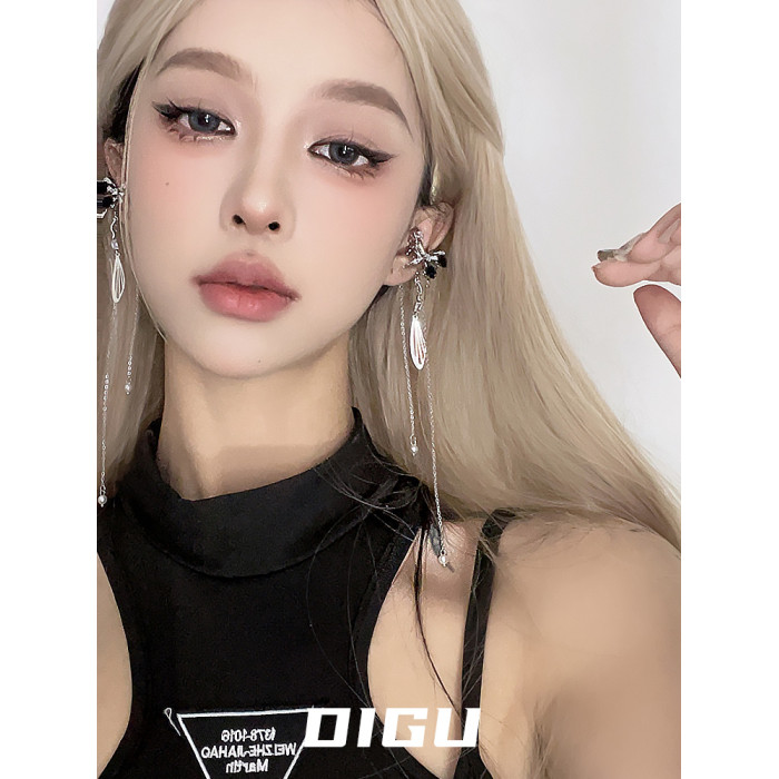 DIGU甜酷辣妹黑玫瑰蝴蝶流蘇耳夾無耳洞輕奢小衆設計感耳骨夾耳飾