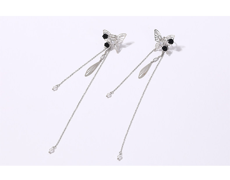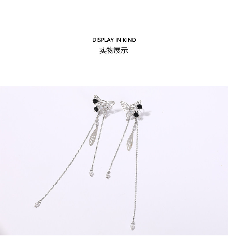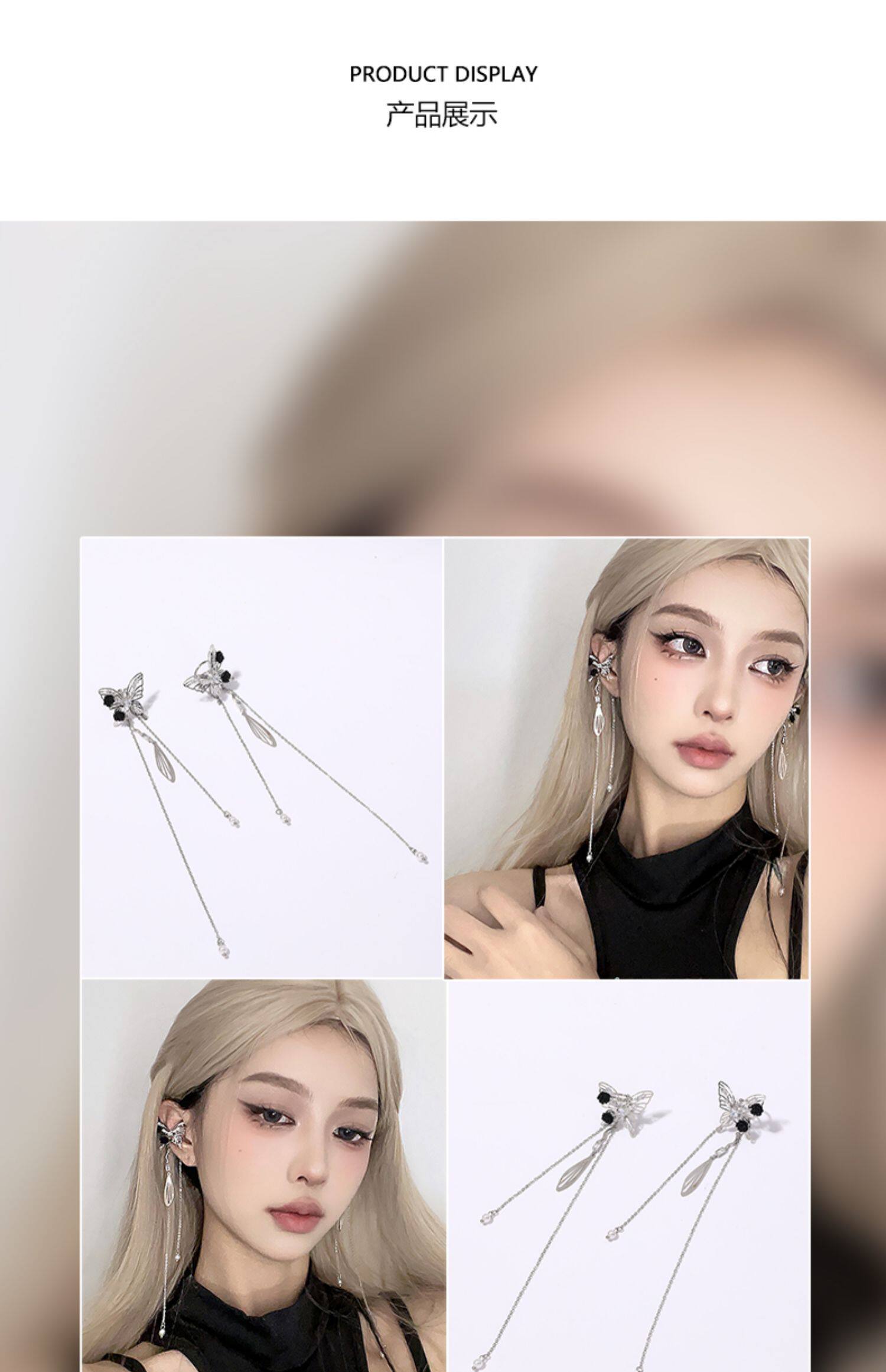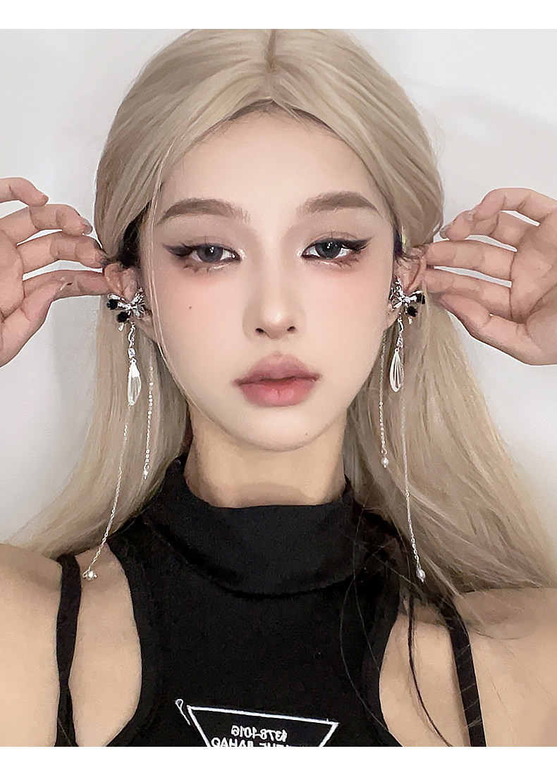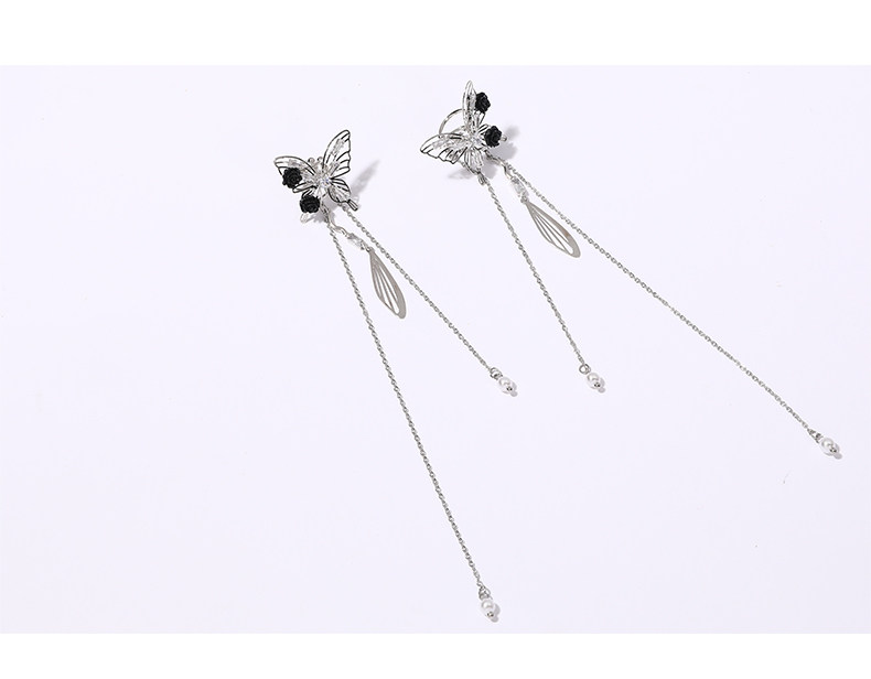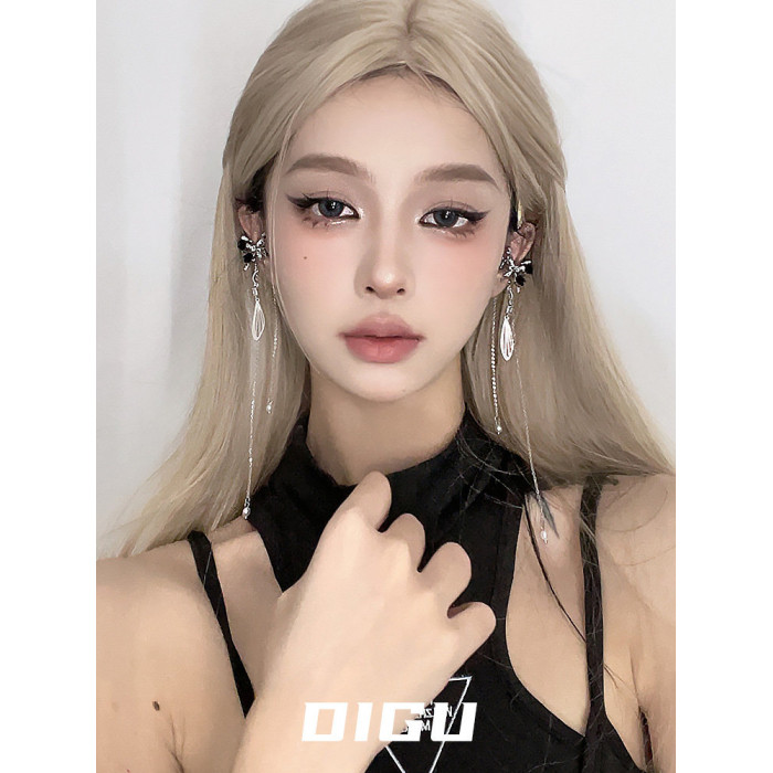 DIGU甜酷辣妹黑玫瑰蝴蝶流蘇耳夾無耳洞輕奢小衆設計感耳骨夾耳飾