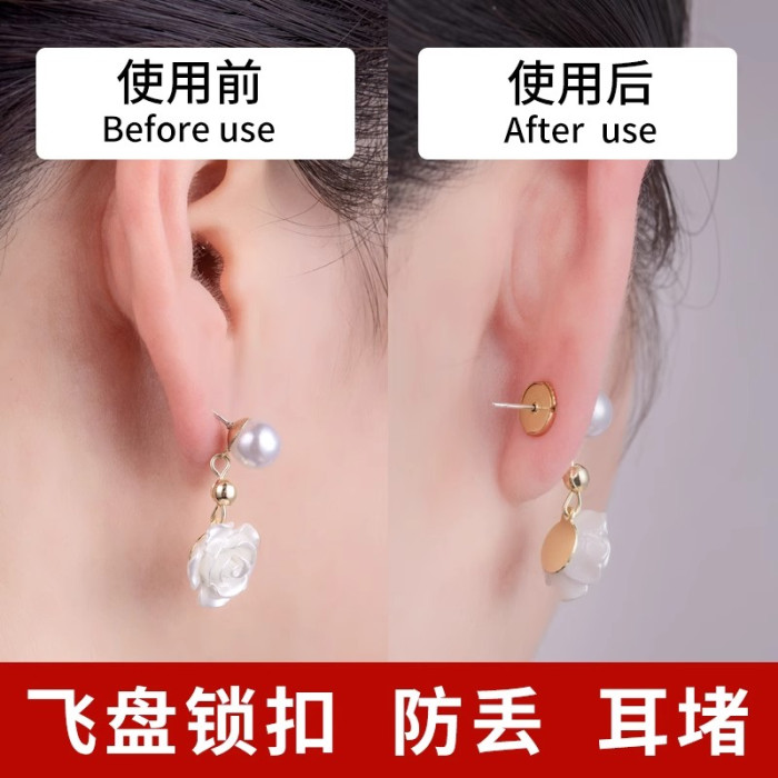 耳堵防掉18k金色鎖釦飛碟細孔耳釦固定耳後塞耳堵輔助器耳飾後塞