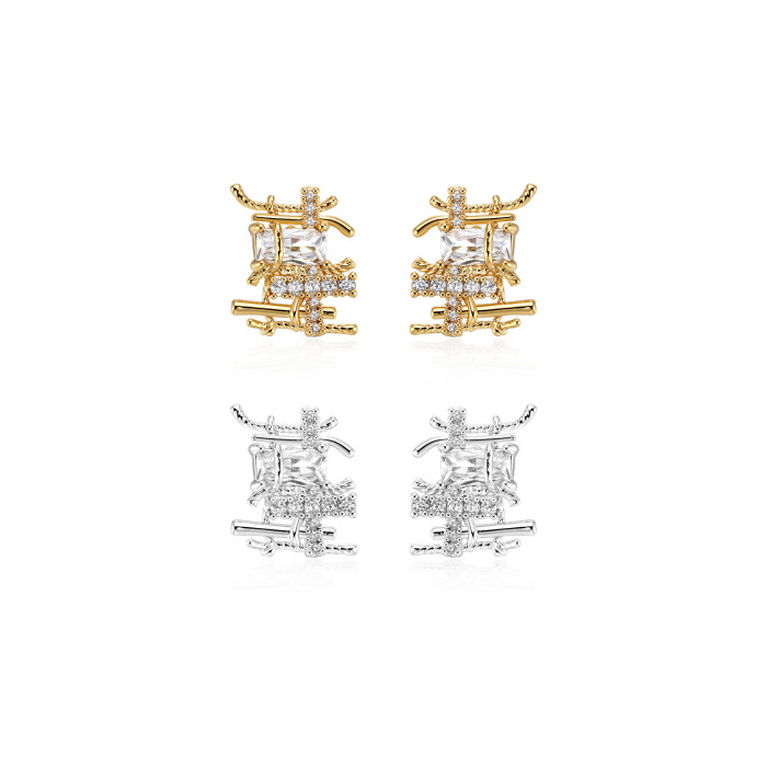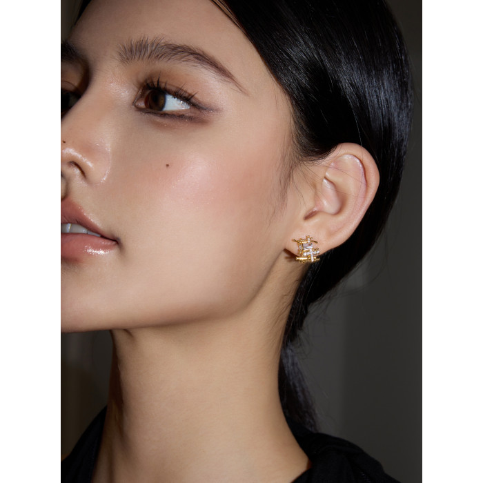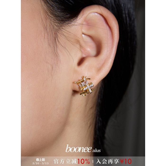 Boonee alus復古金色耳釘女新款金屬鋯石小衆編織耳環高級設計感