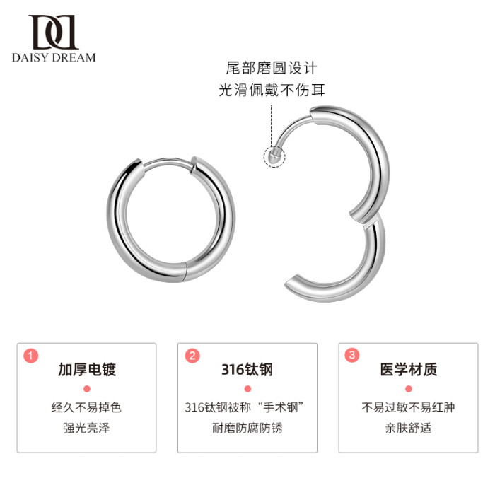 醫用鈦鋼素圈耳環女鈦合金耳釦養耳洞耳圈男睡覺免摘耳骨釘耳飾品