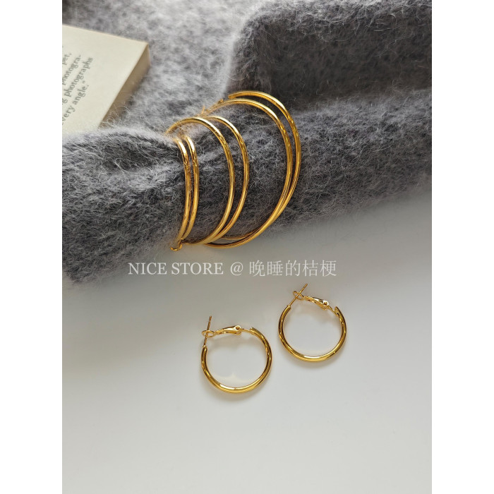 晚睡的桔梗|經典素圈 基礎高級感圈圈耳飾2025新款百搭耳圈耳環
