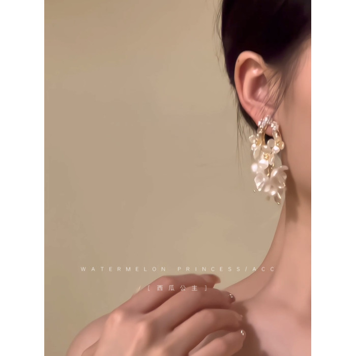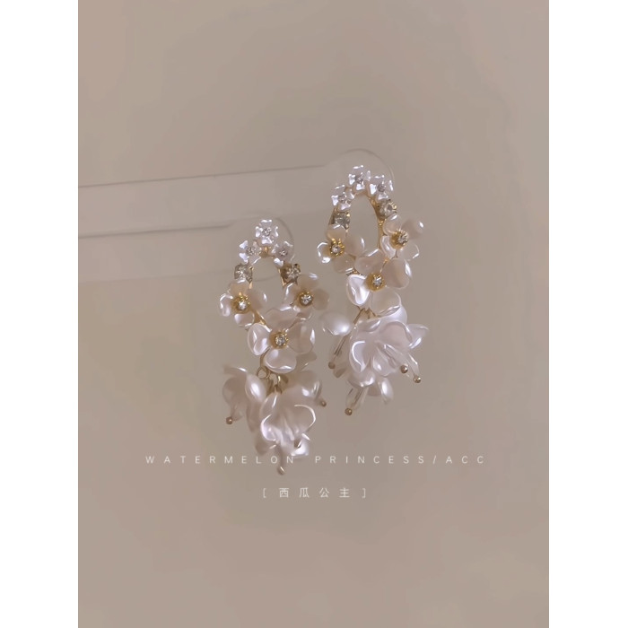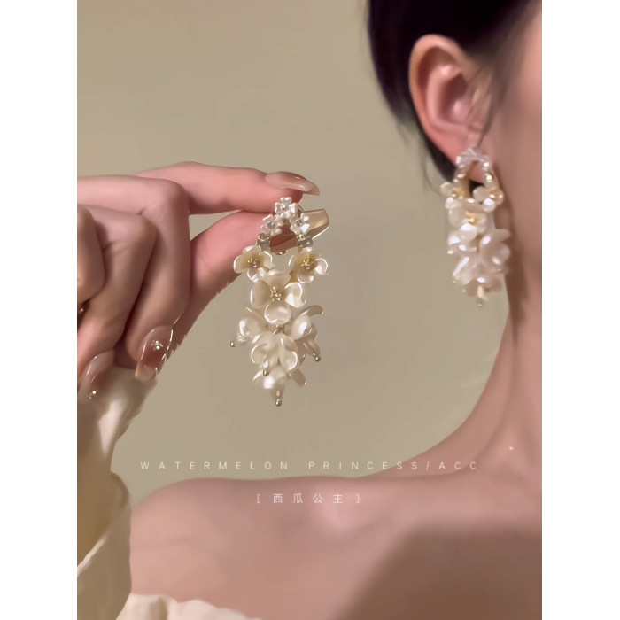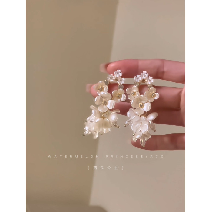 「茉莉花瀑」法式花朵耳環女超仙復古耳飾高級感輕奢小衆氣質耳釘