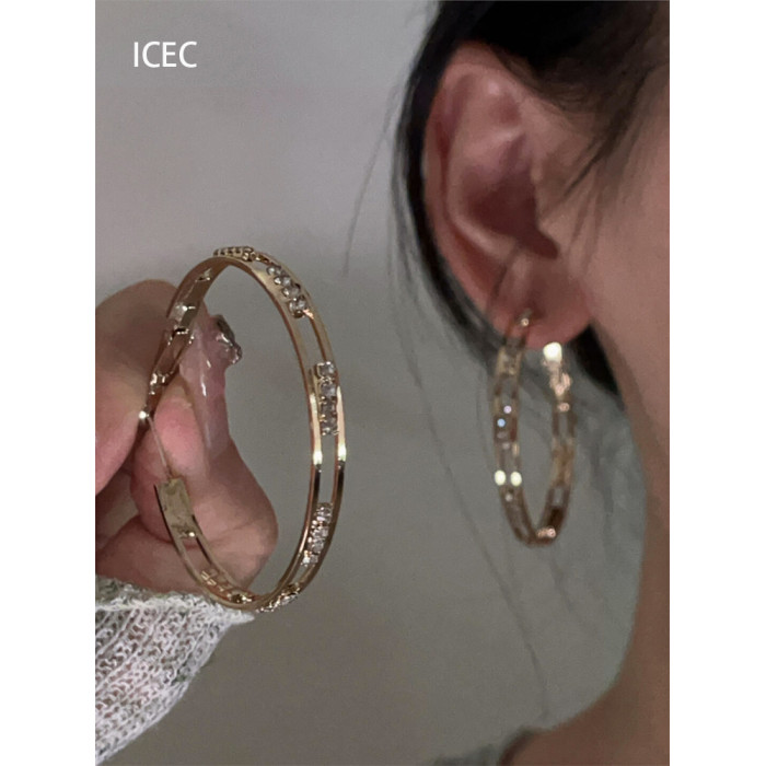歐美個性鏤空大圈耳環冷淡風超閃誇張時尚適合方圓臉的高級感耳飾
