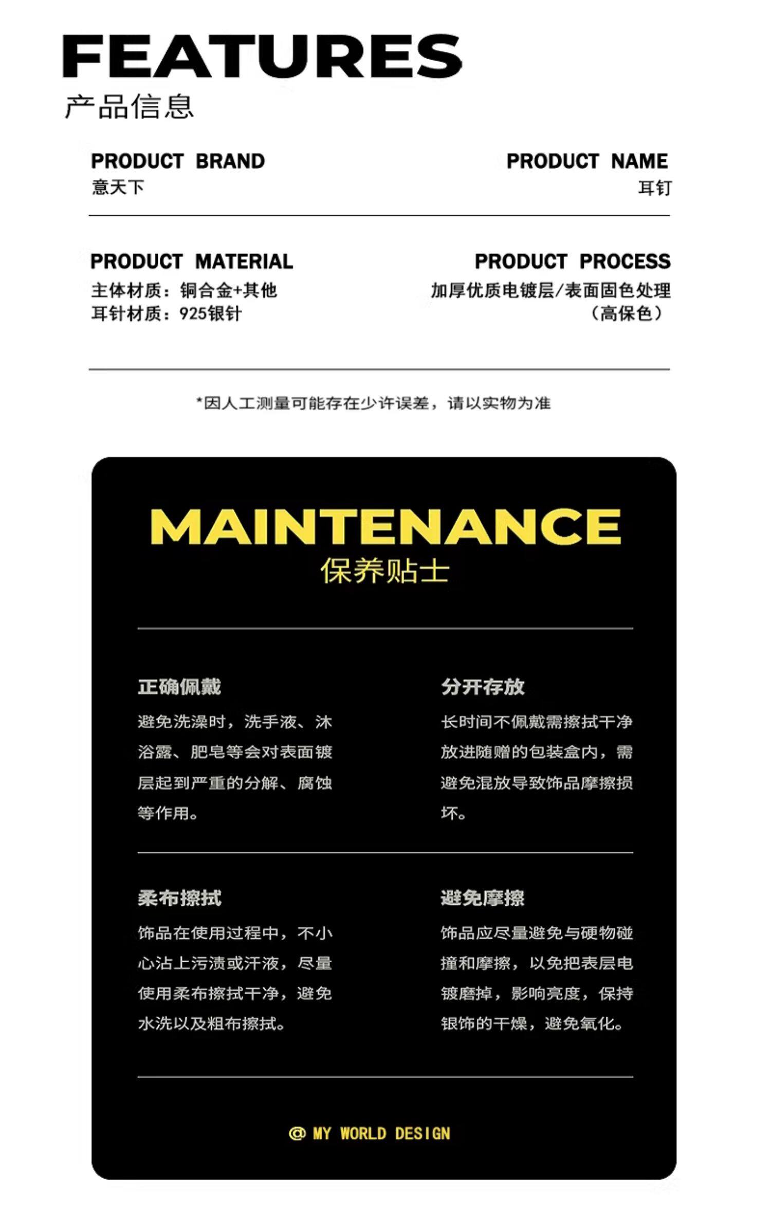 | 材質 | 主體材質:銅合金,耳針材質:925銀針 |