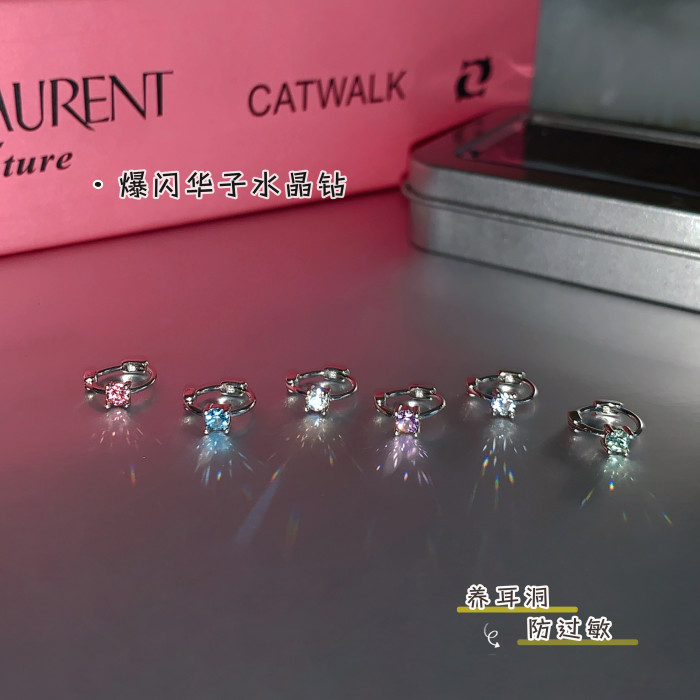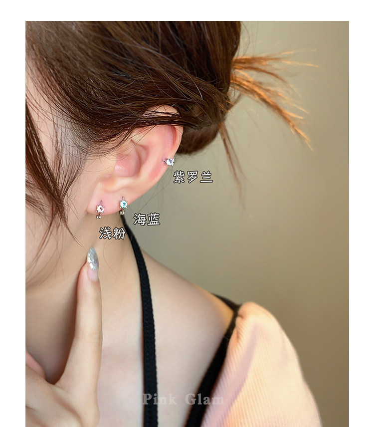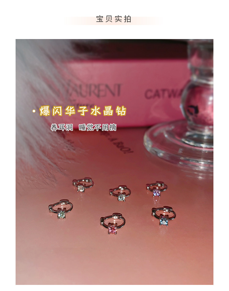 pinkglam巨好看的耳釘華子爆閃耳釦式耳環鑽石耳骨環耳飾耳圈小號