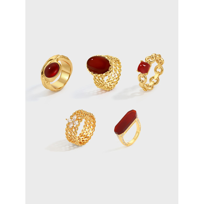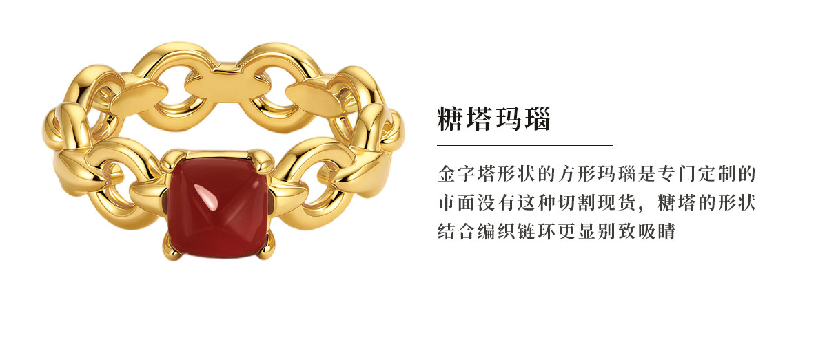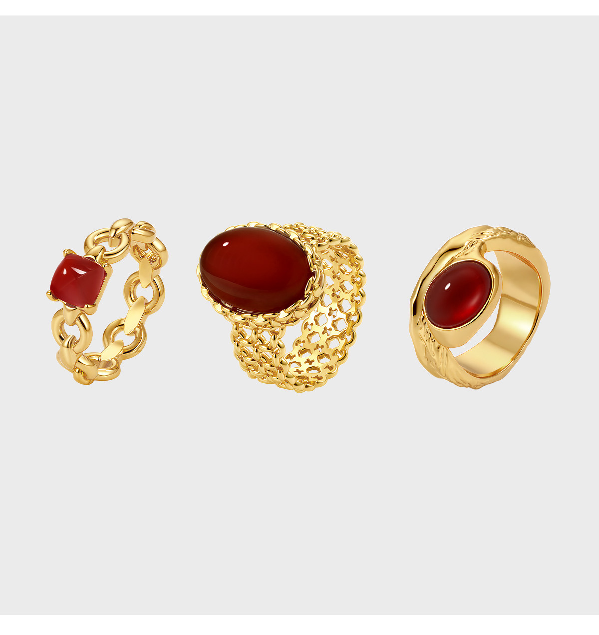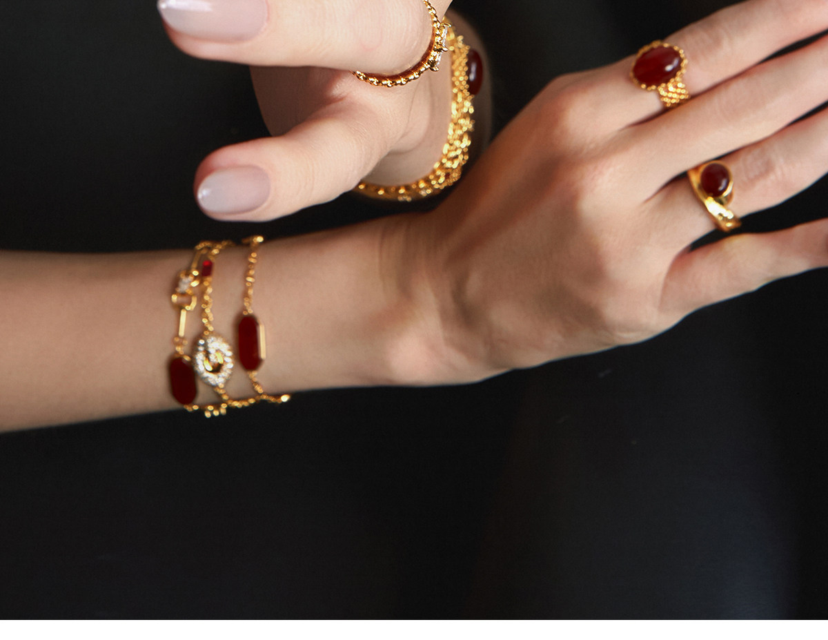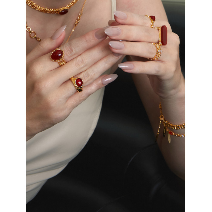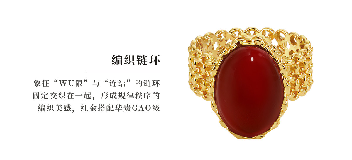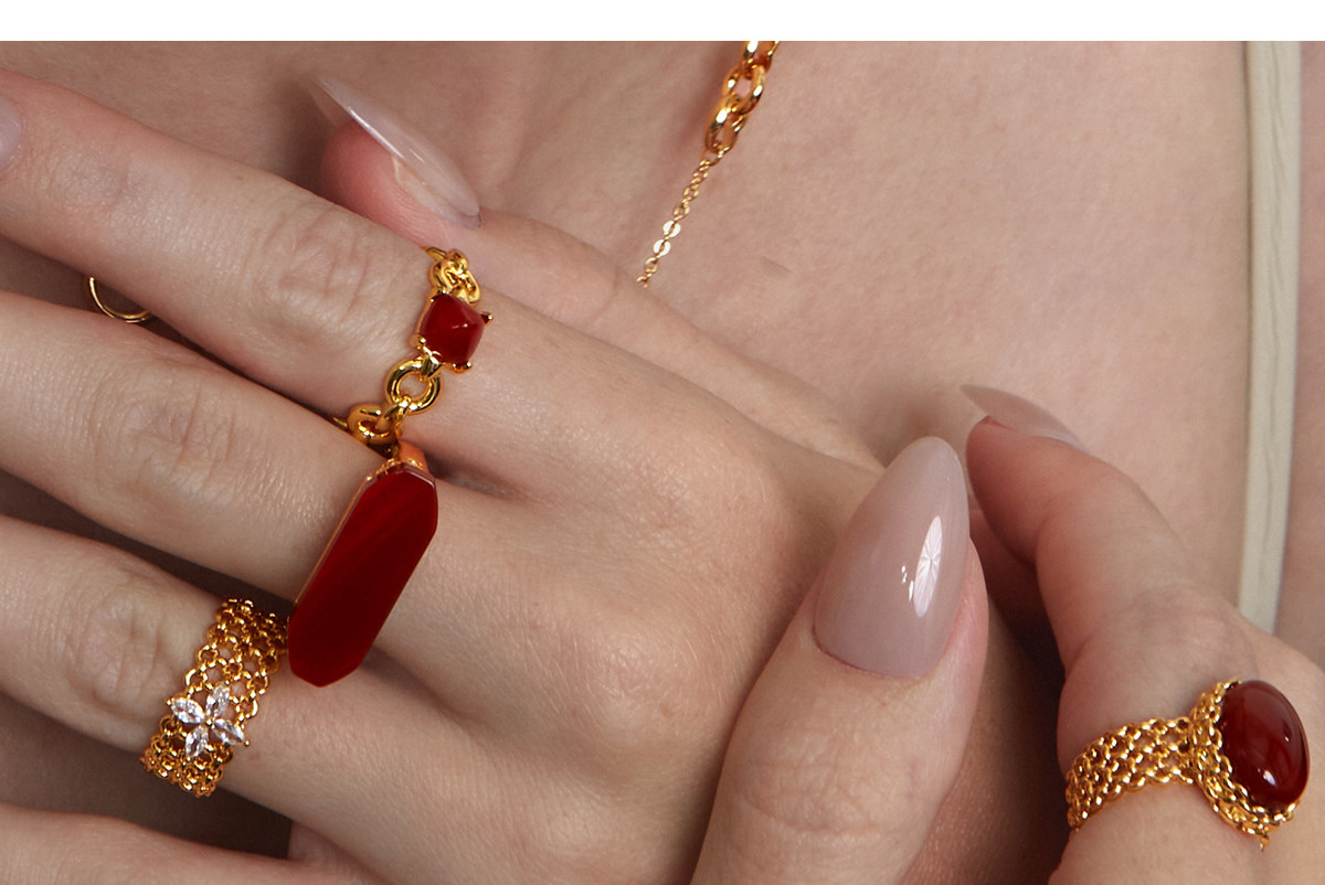Boonee alus鏈鎖秘境系列紅瑪瑙金色戒指女高級感編織鏤空食指戒