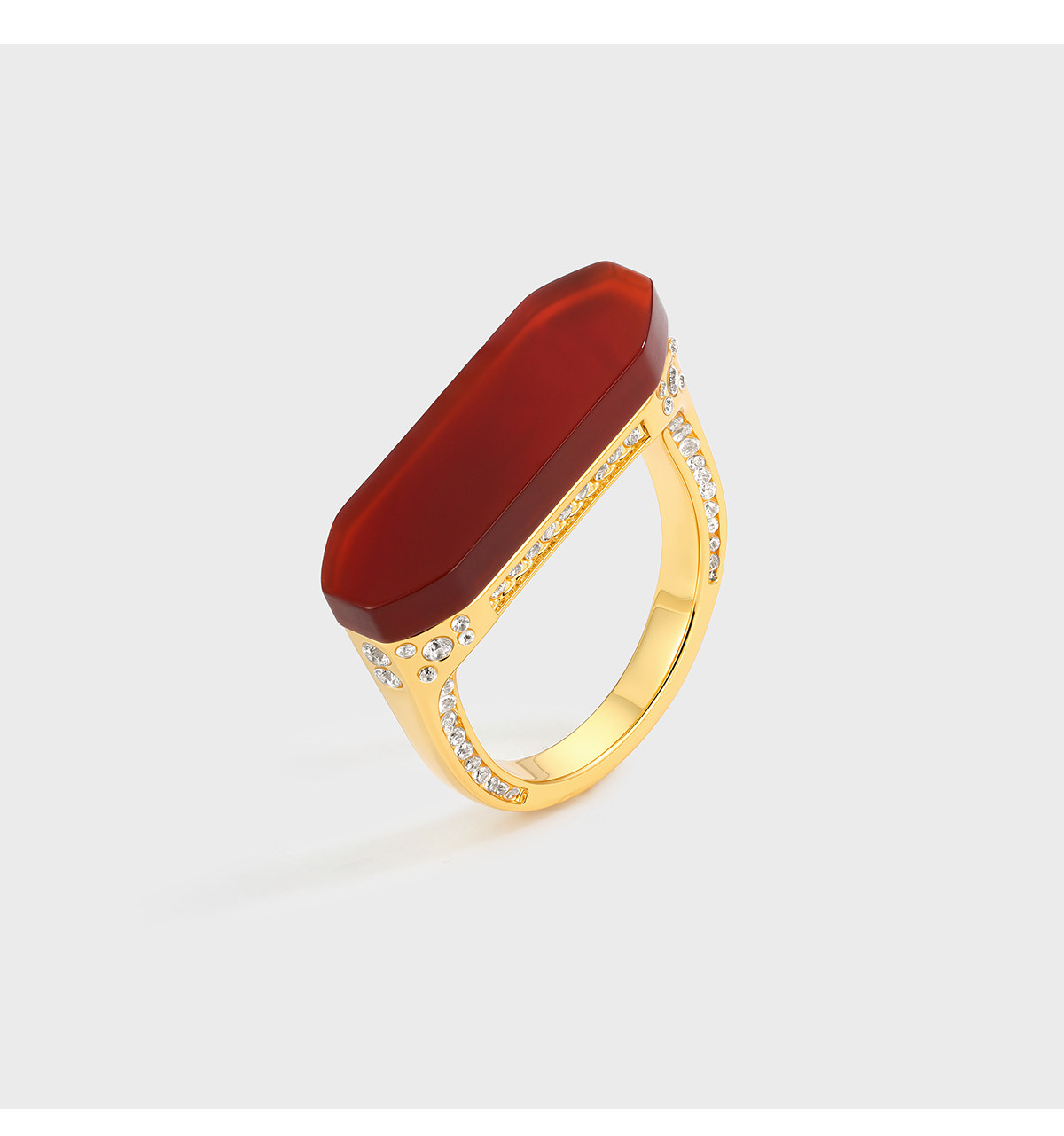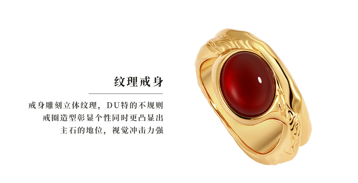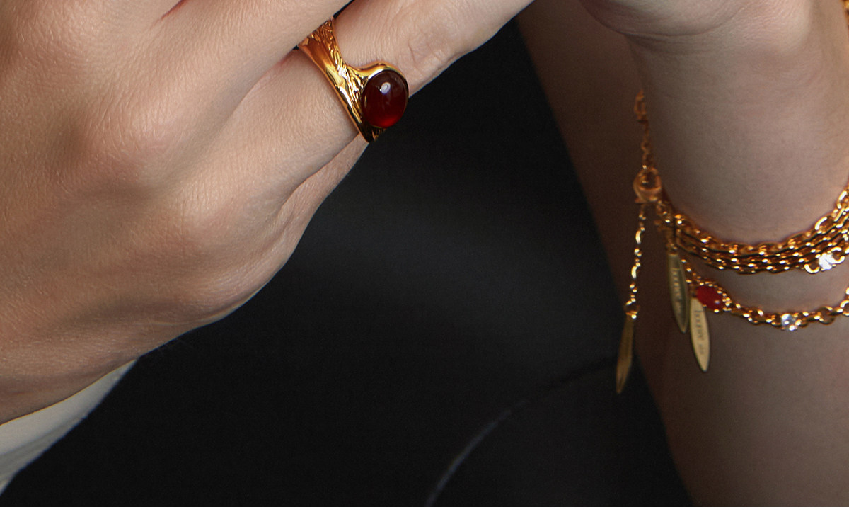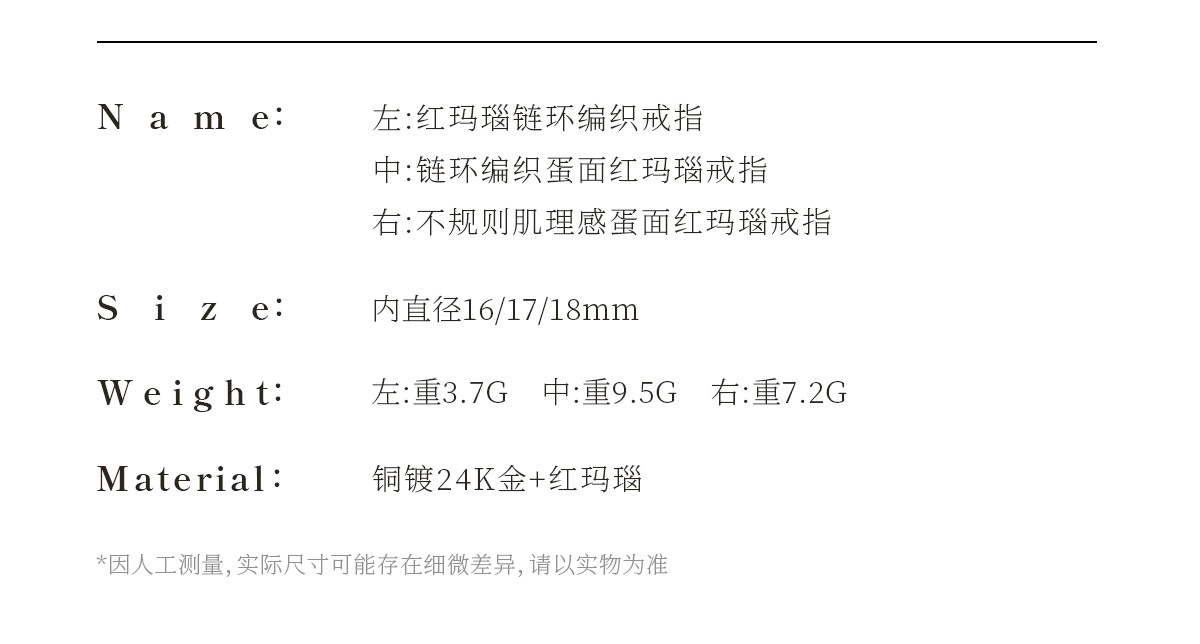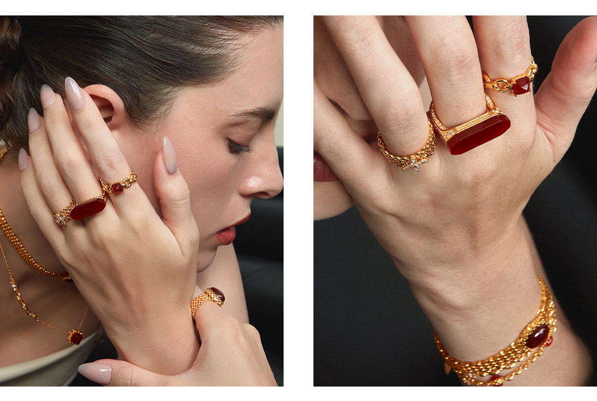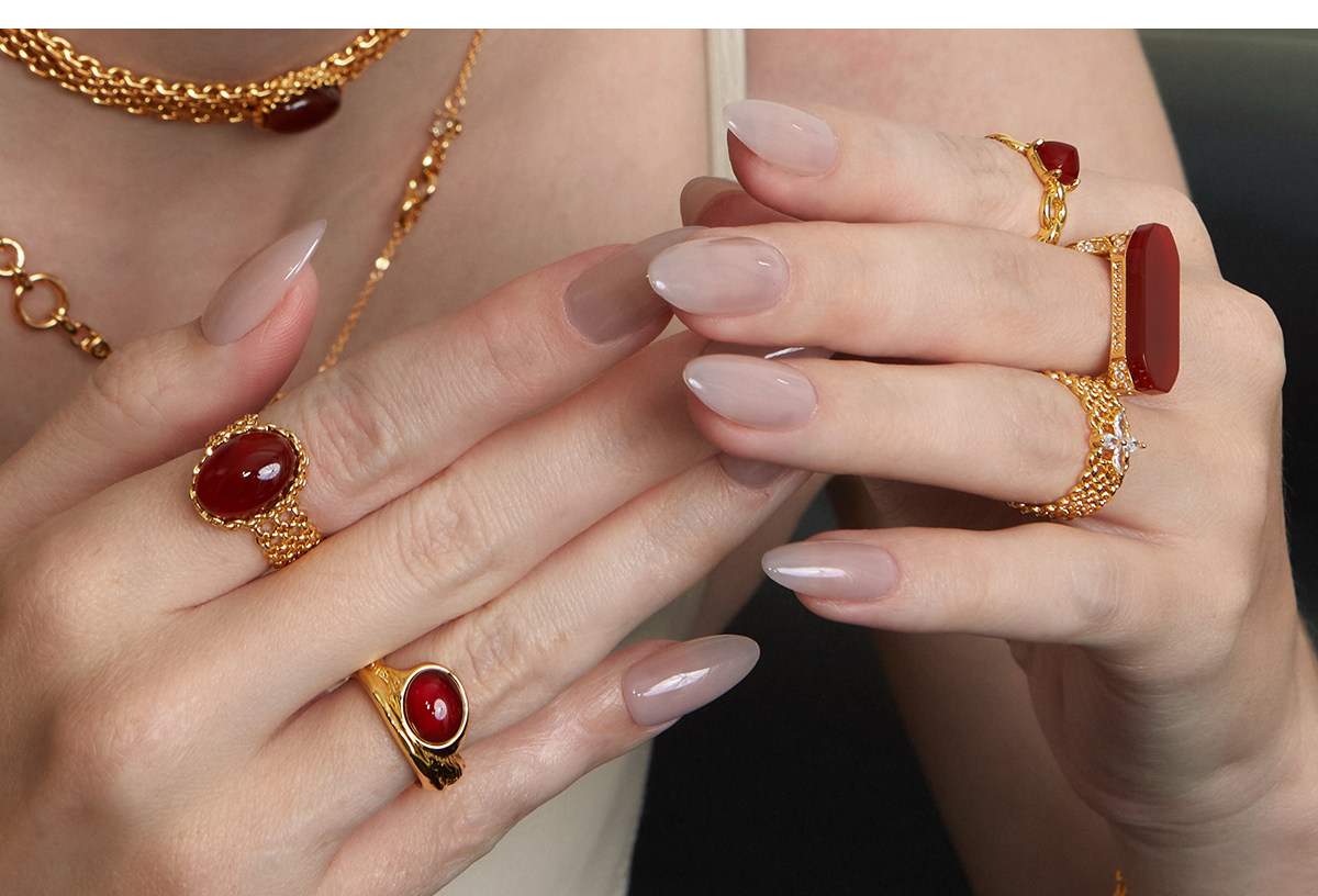 Boonee alus鏈鎖秘境系列紅瑪瑙金色戒指女高級感編織鏤空食指戒