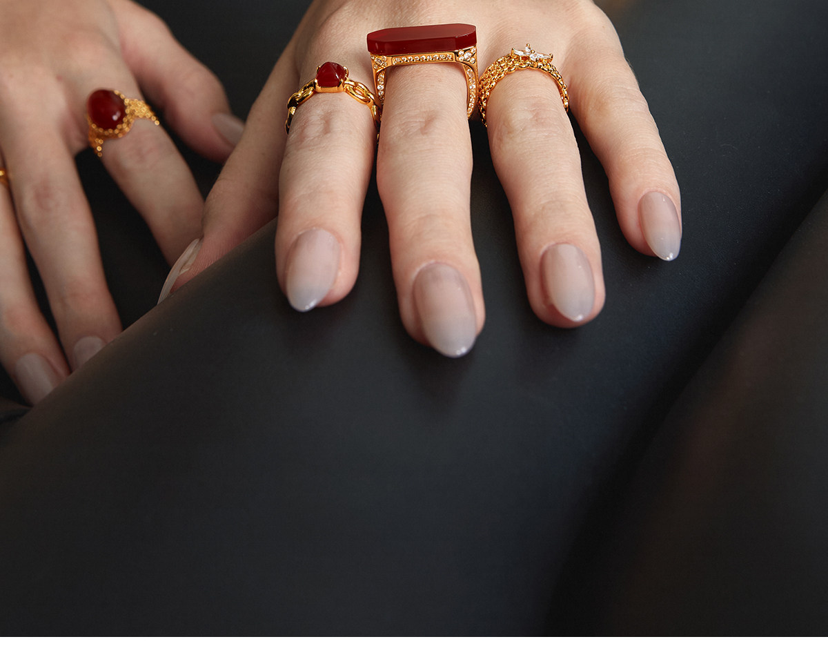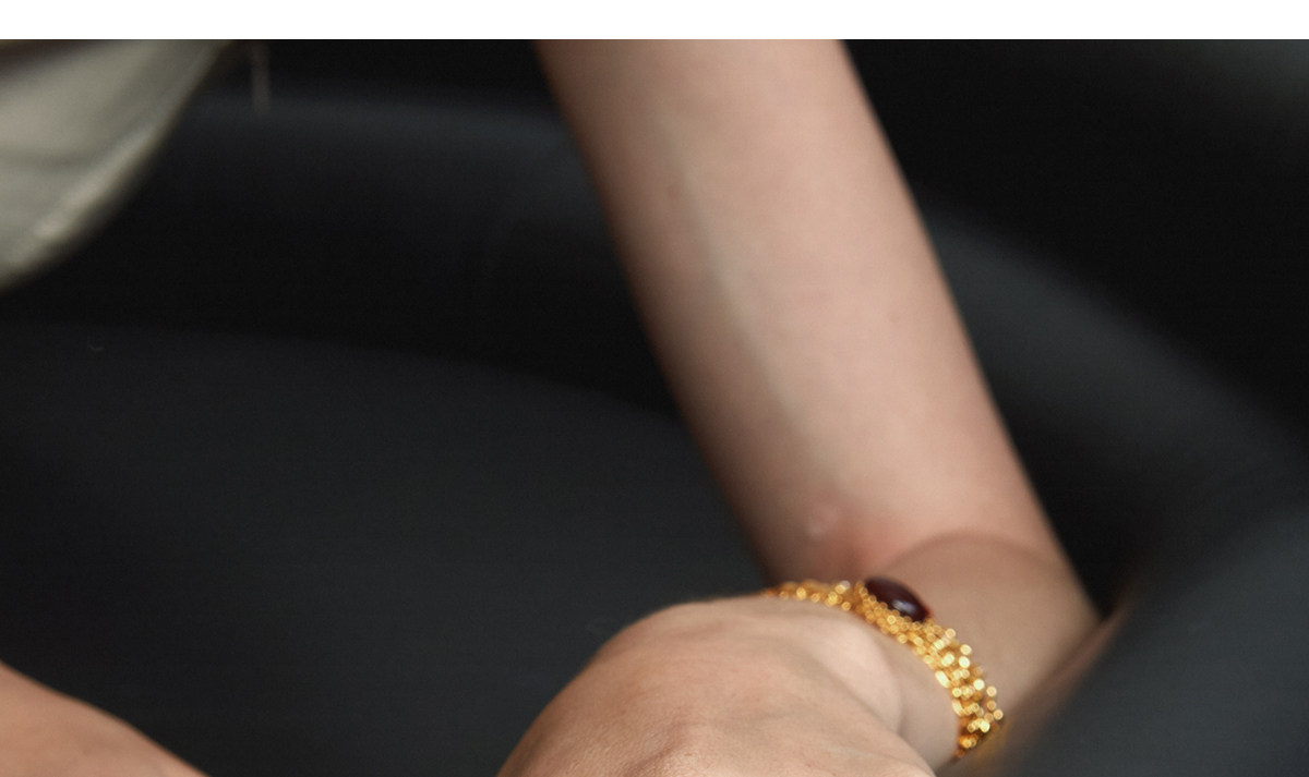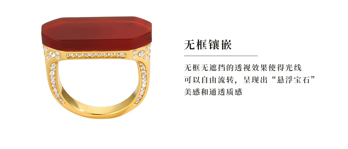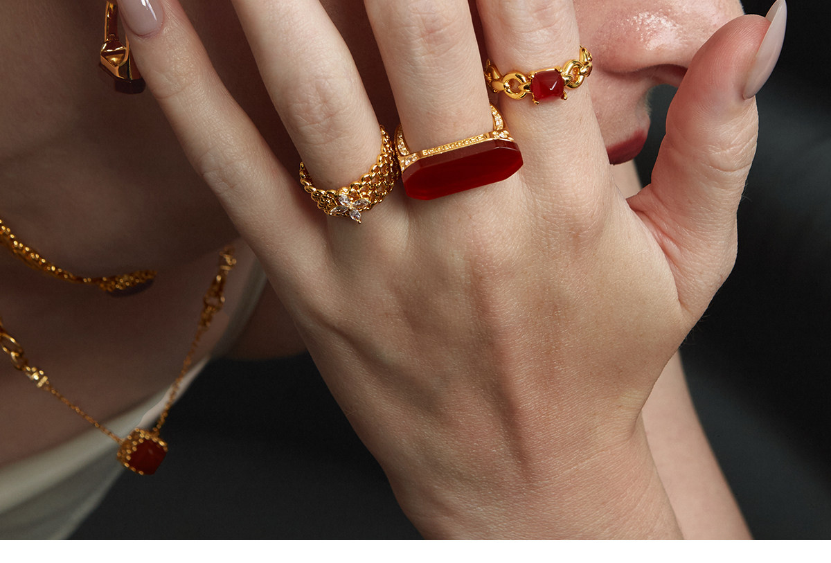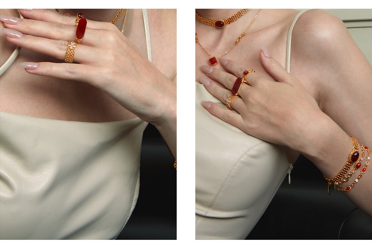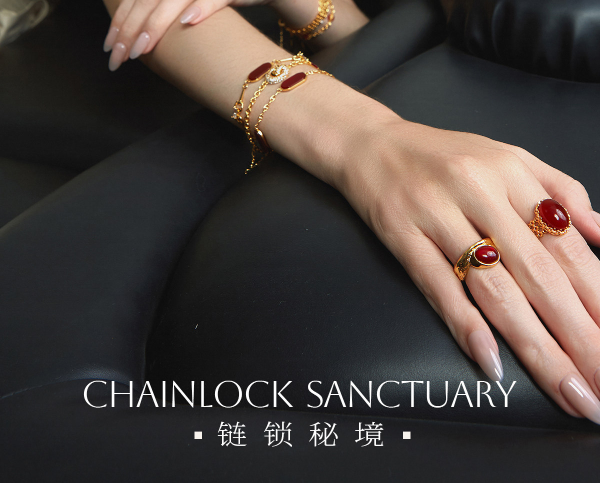 Boonee alus鏈鎖秘境系列紅瑪瑙金色戒指女高級感編織鏤空食指戒