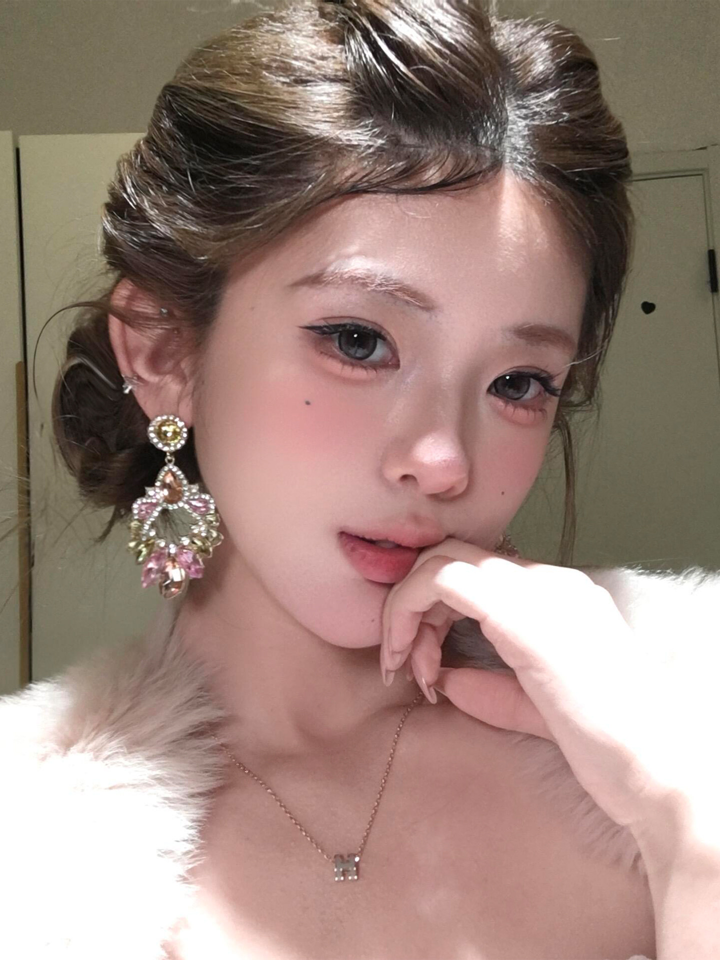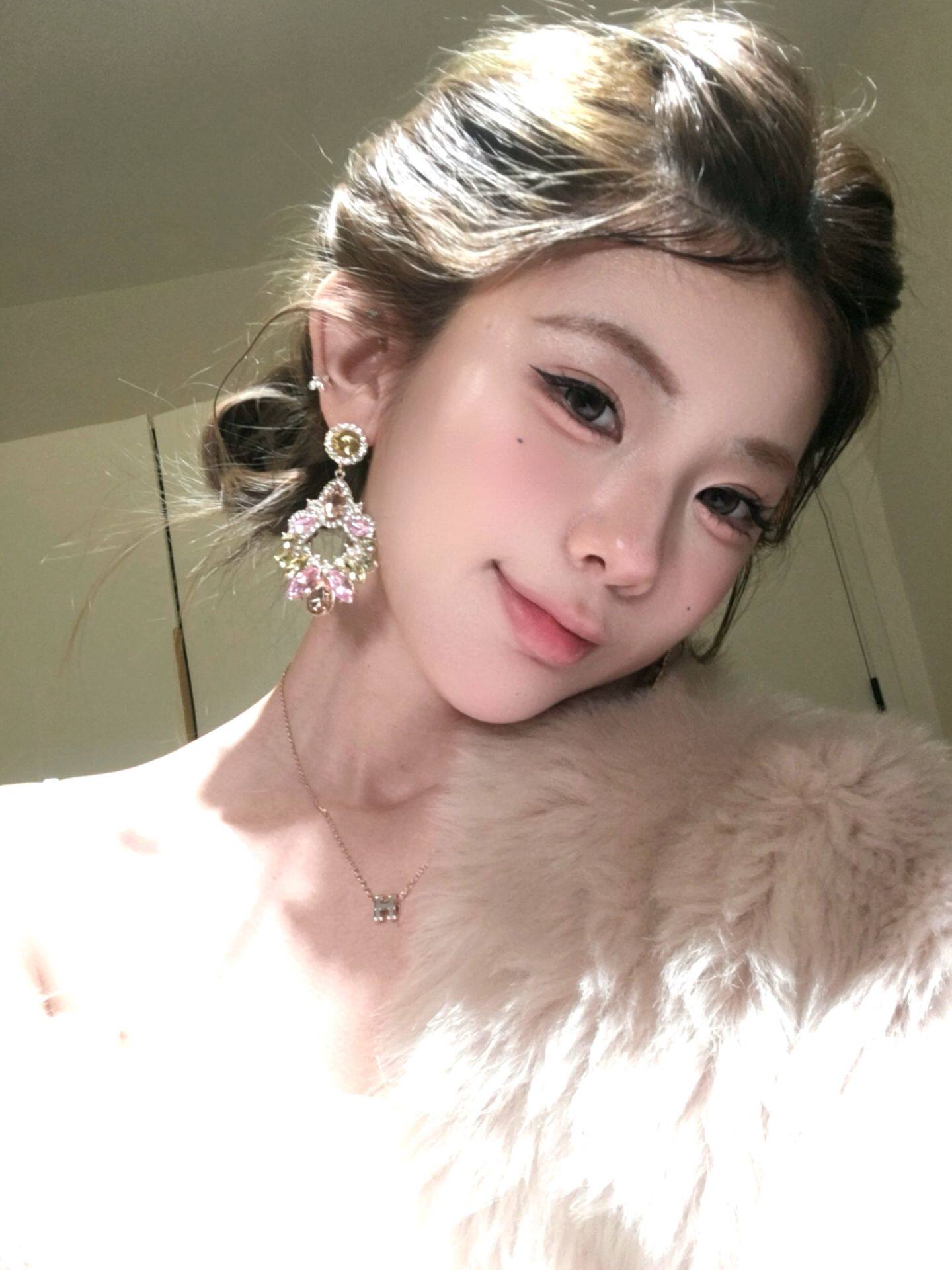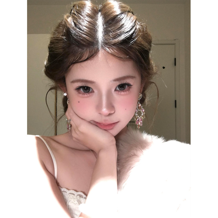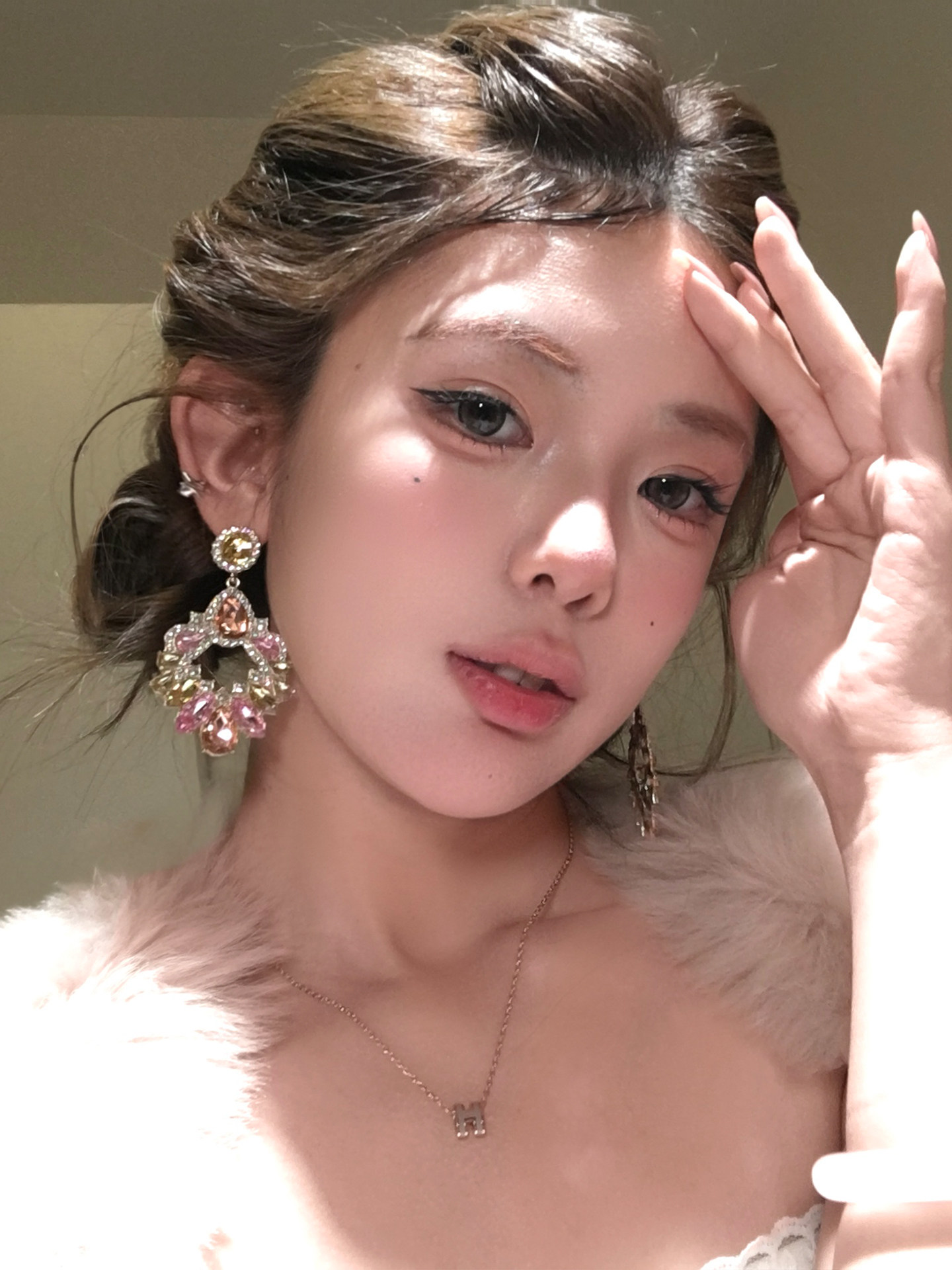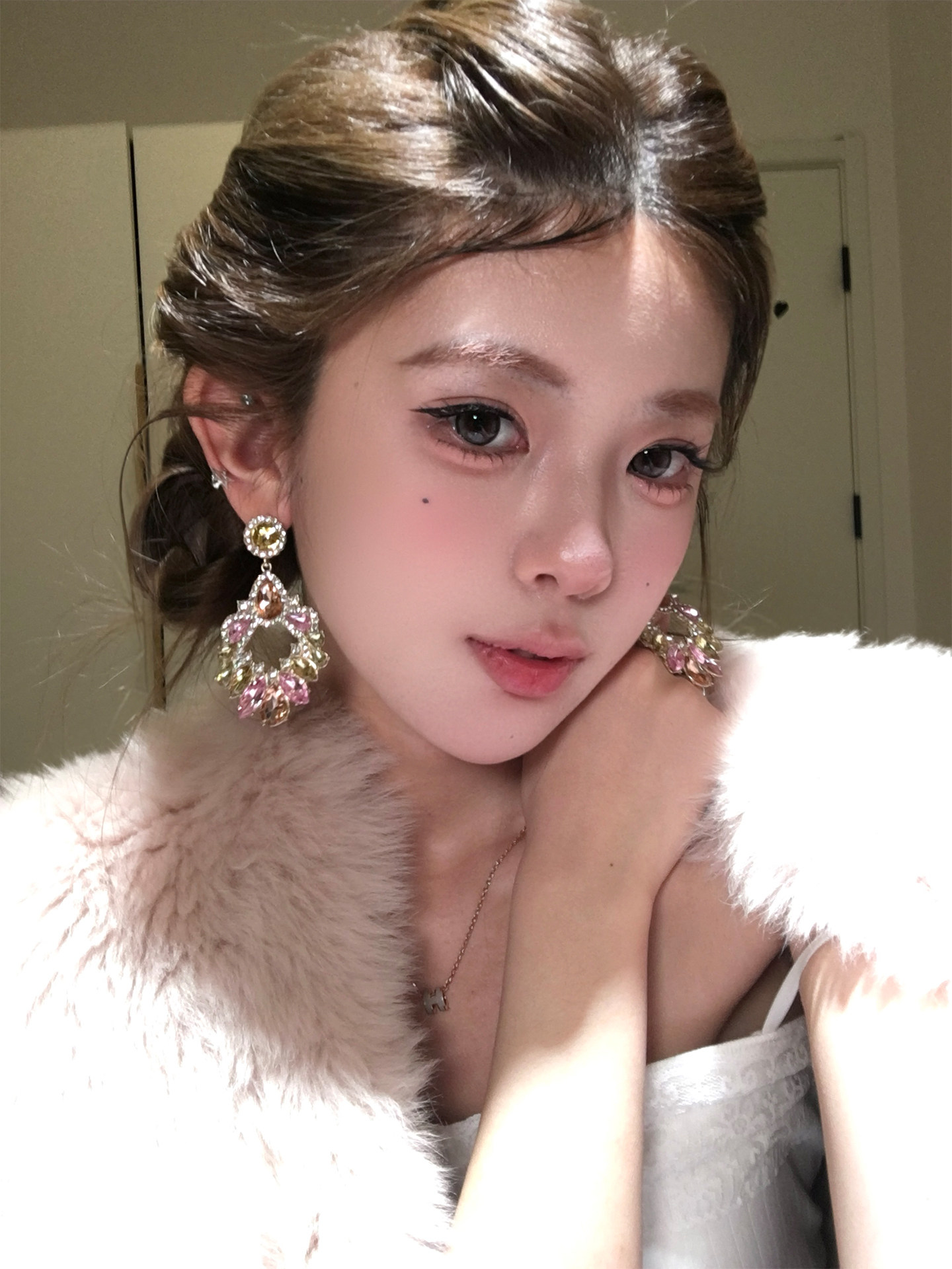 古早千金風粉色閃鋯吊墜耳環女誇張設計耳飾輕奢高級感巨好看耳釘
