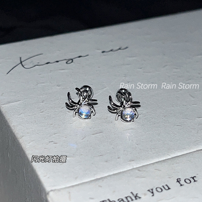 Rain Storm炫彩極光色蜘蛛耳骨釘鈦鋼平底螺絲耳蝸釘小衆絕美耳釘