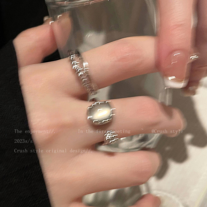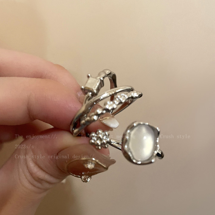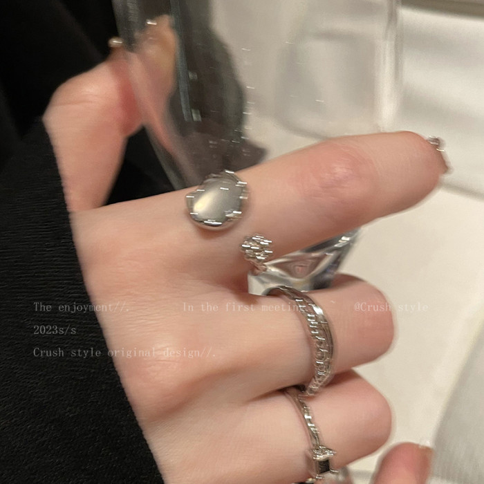 月光石鋯石戒指女款輕奢小衆高級感裝飾指環冷淡風復古曡戴食指戒