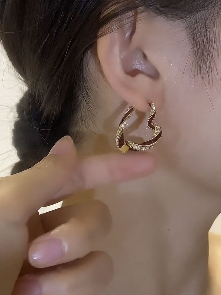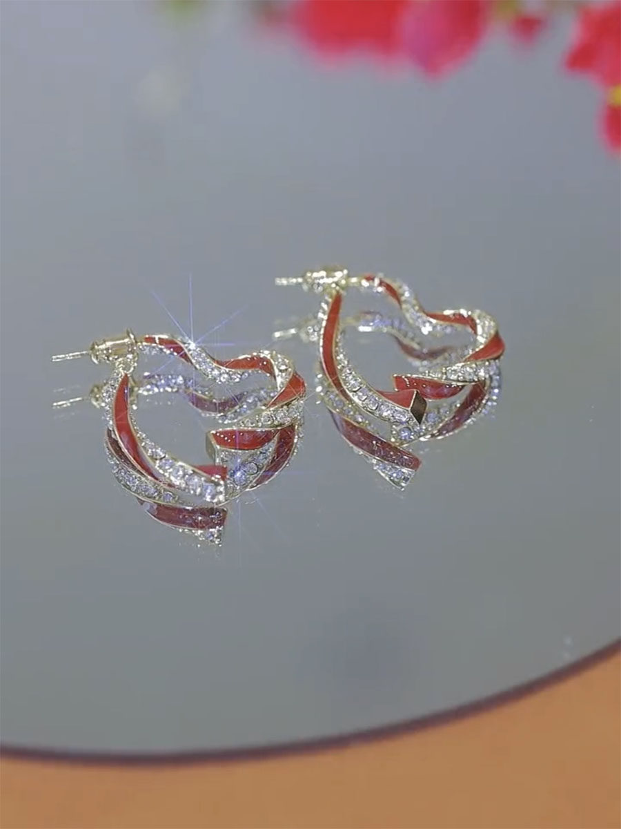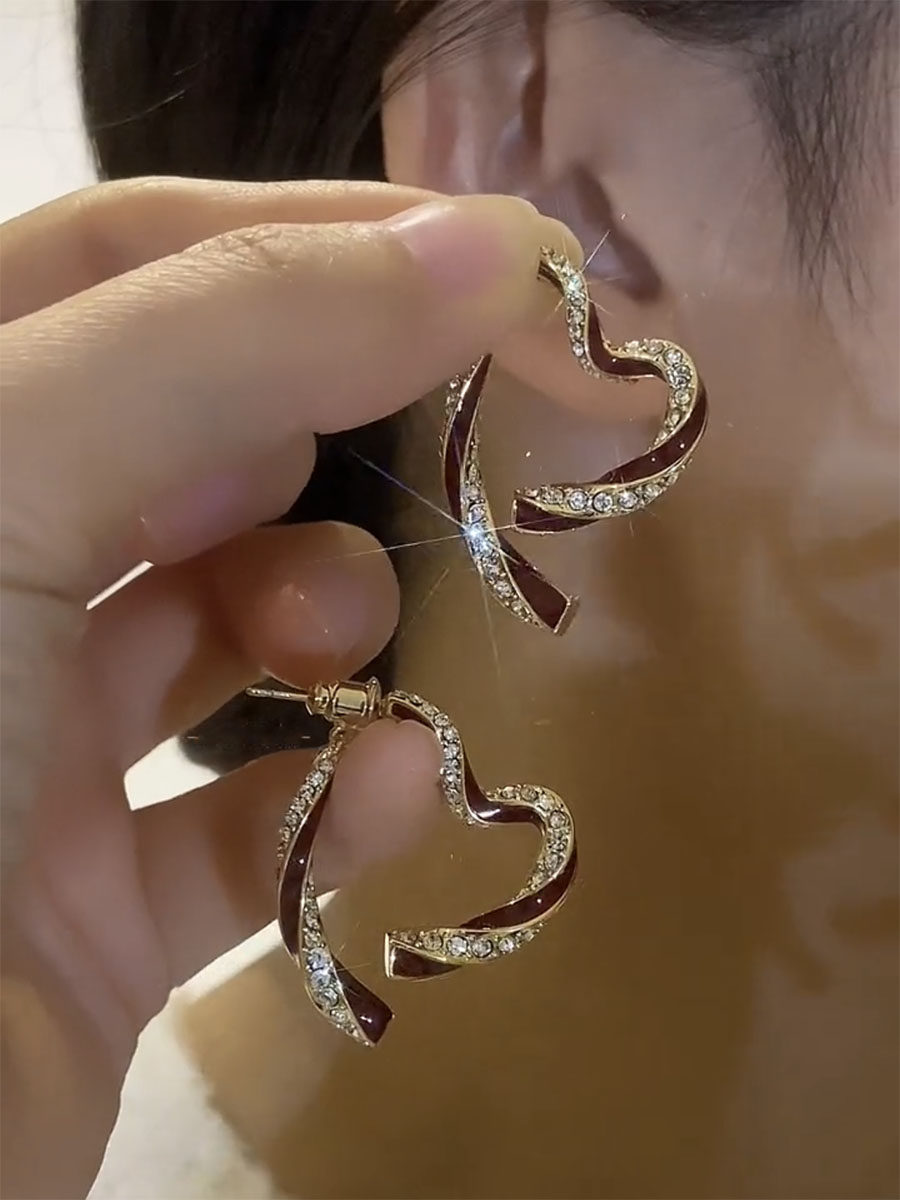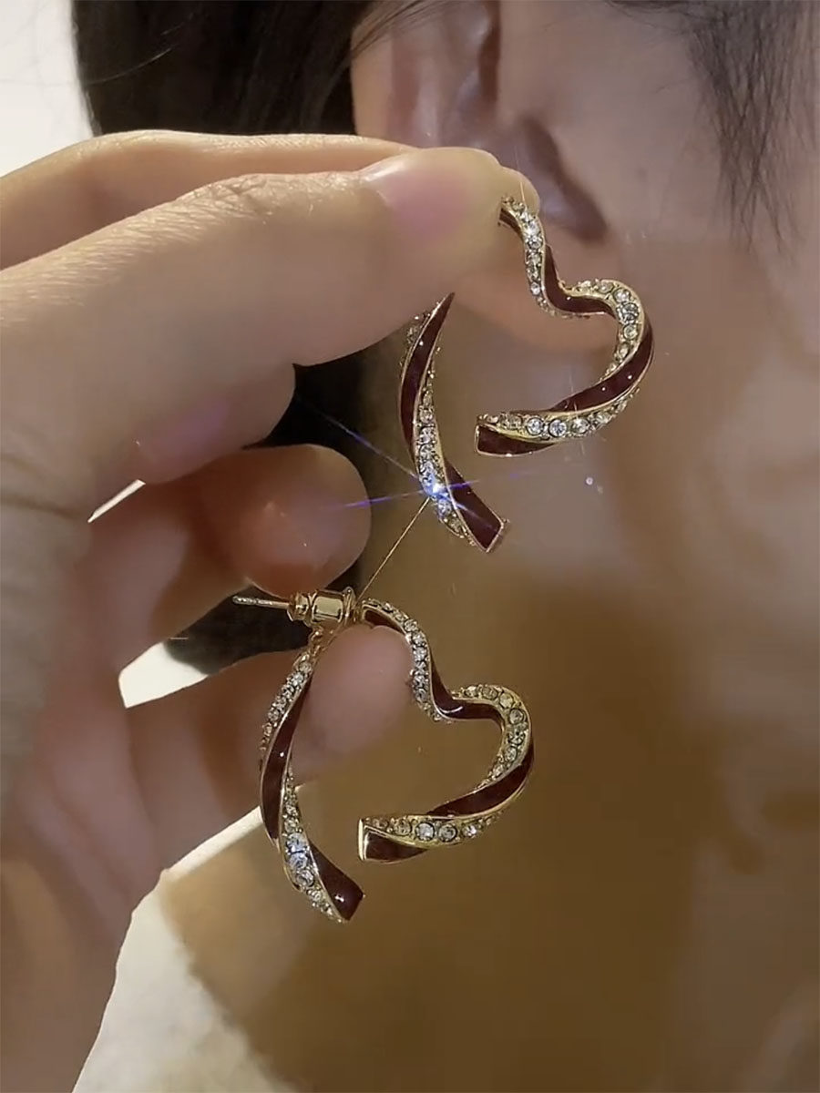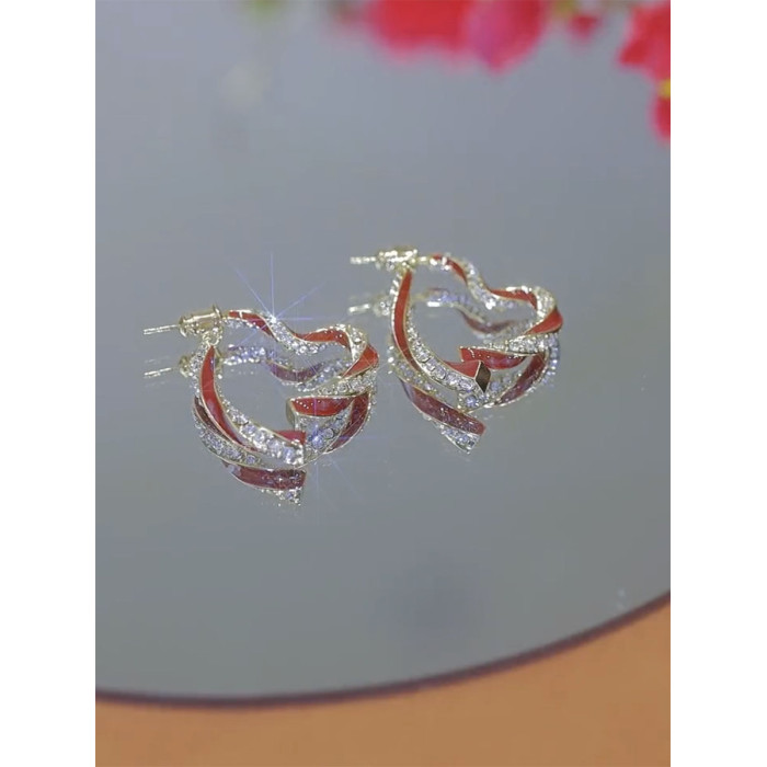 前後戴紅色愛心耳環新款輕奢獨特氣質耳飾女秋冬小衆設計高級耳飾