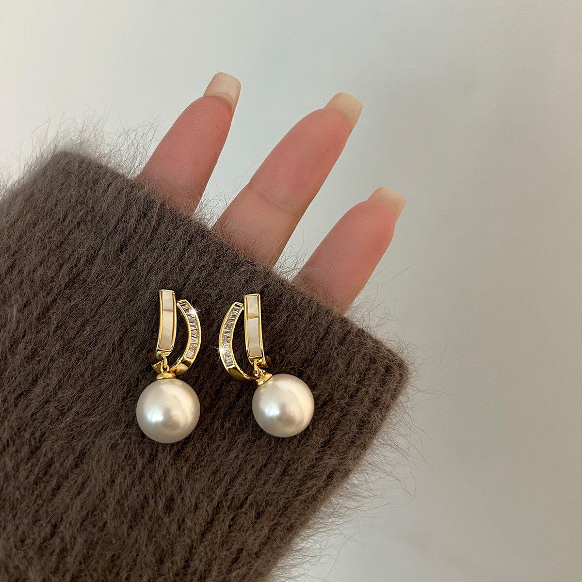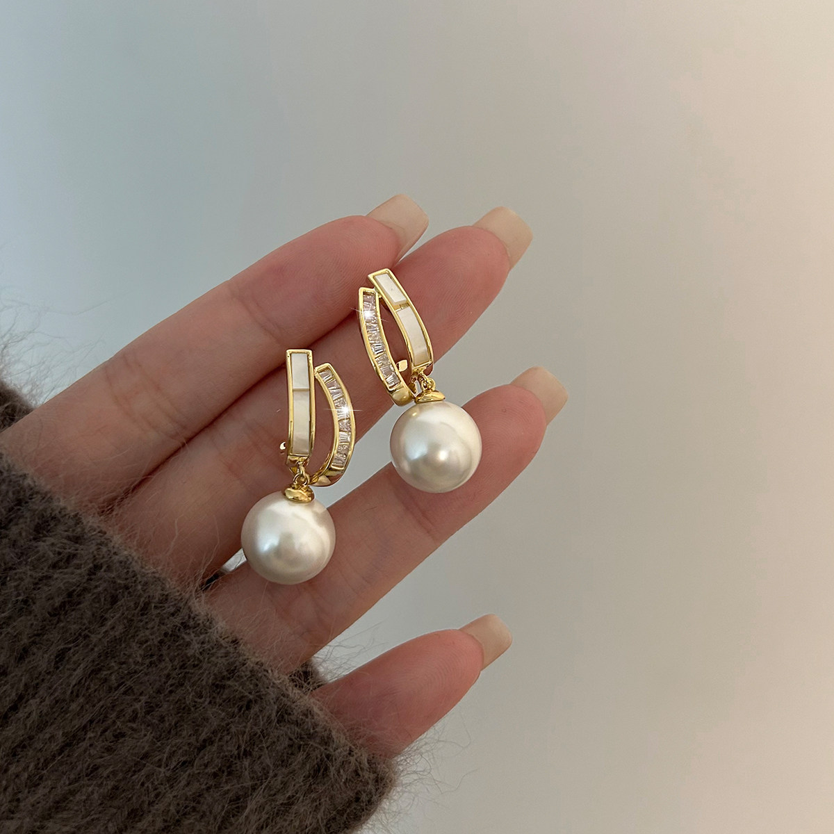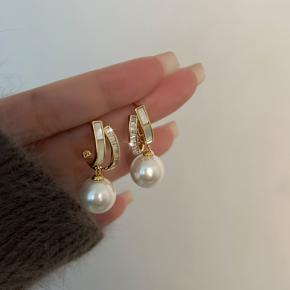 輕奢小衆貝殼珍珠耳墜高級耳夾氣質網紅耳環2025新款爆款耳釘耳飾