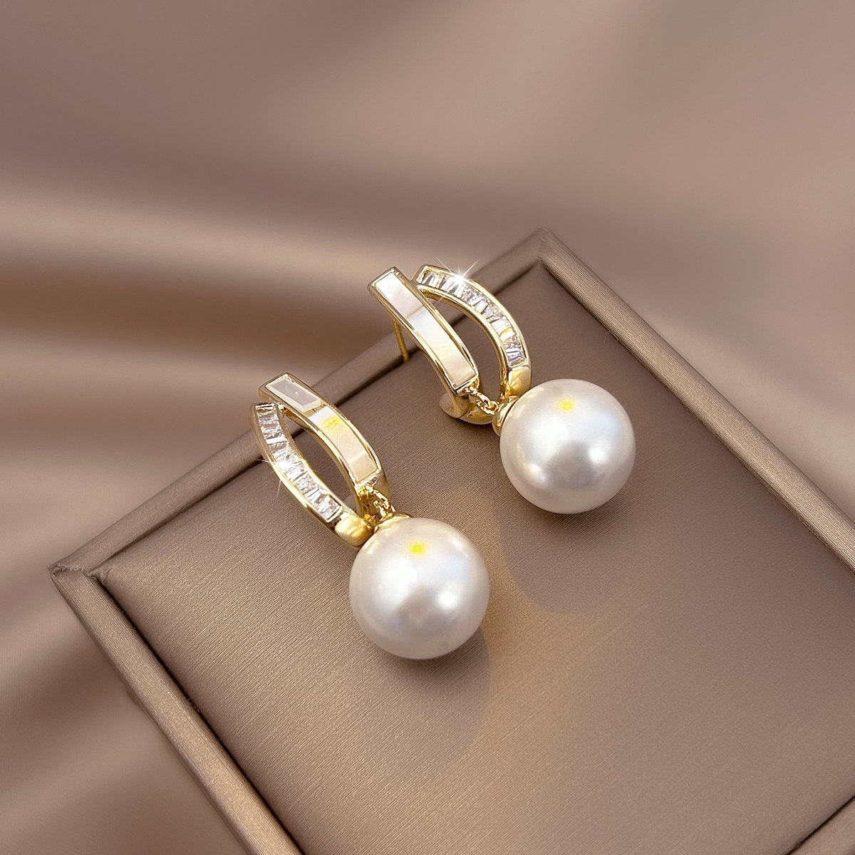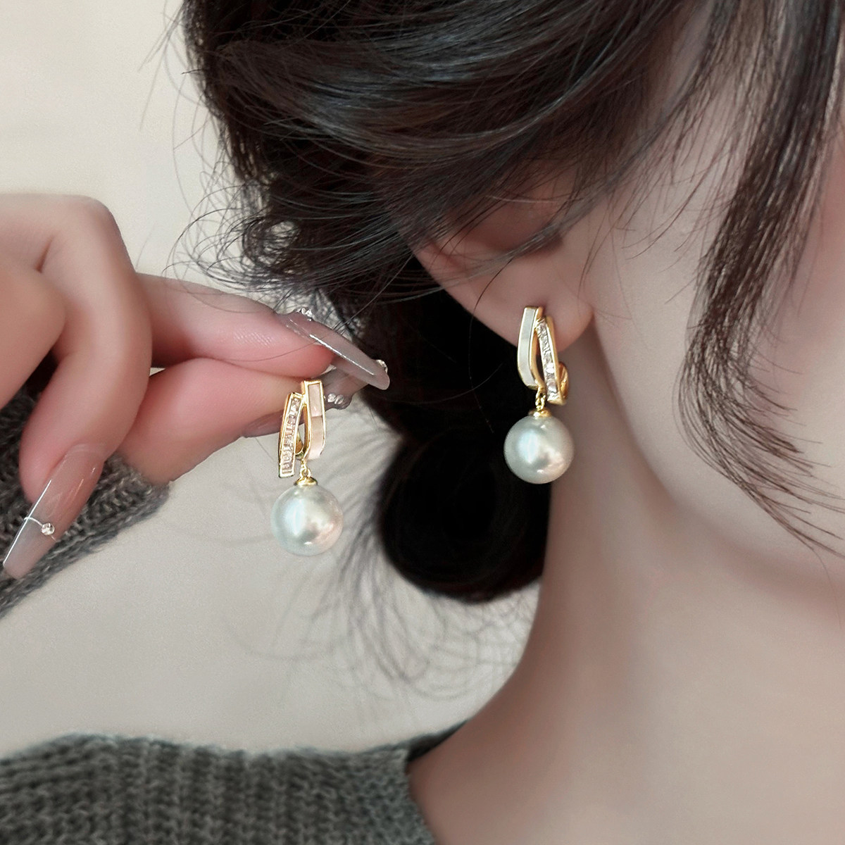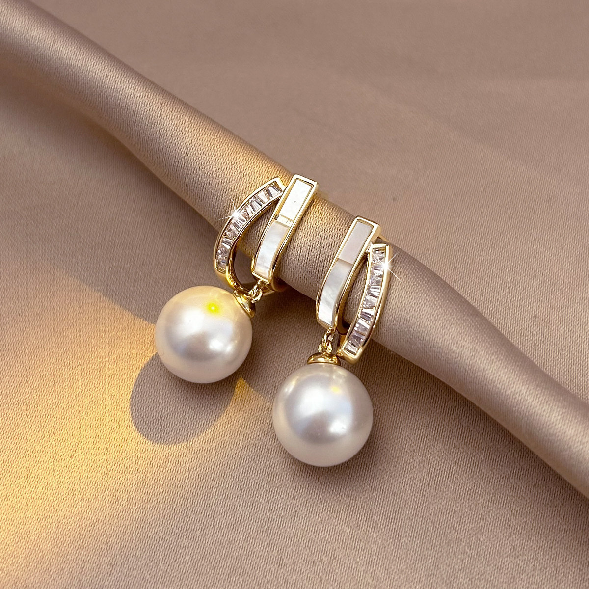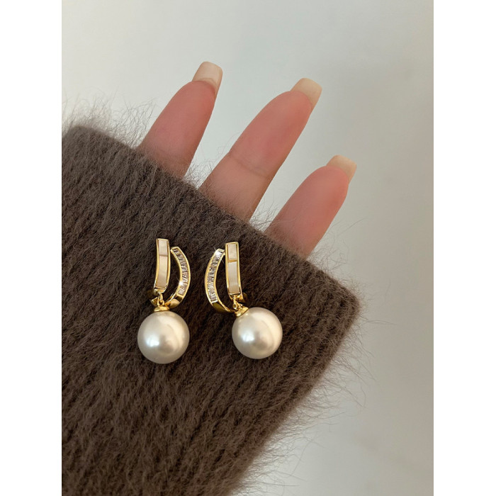 輕奢小衆貝殼珍珠耳墜高級耳夾氣質網紅耳環2025新款爆款耳釘耳飾