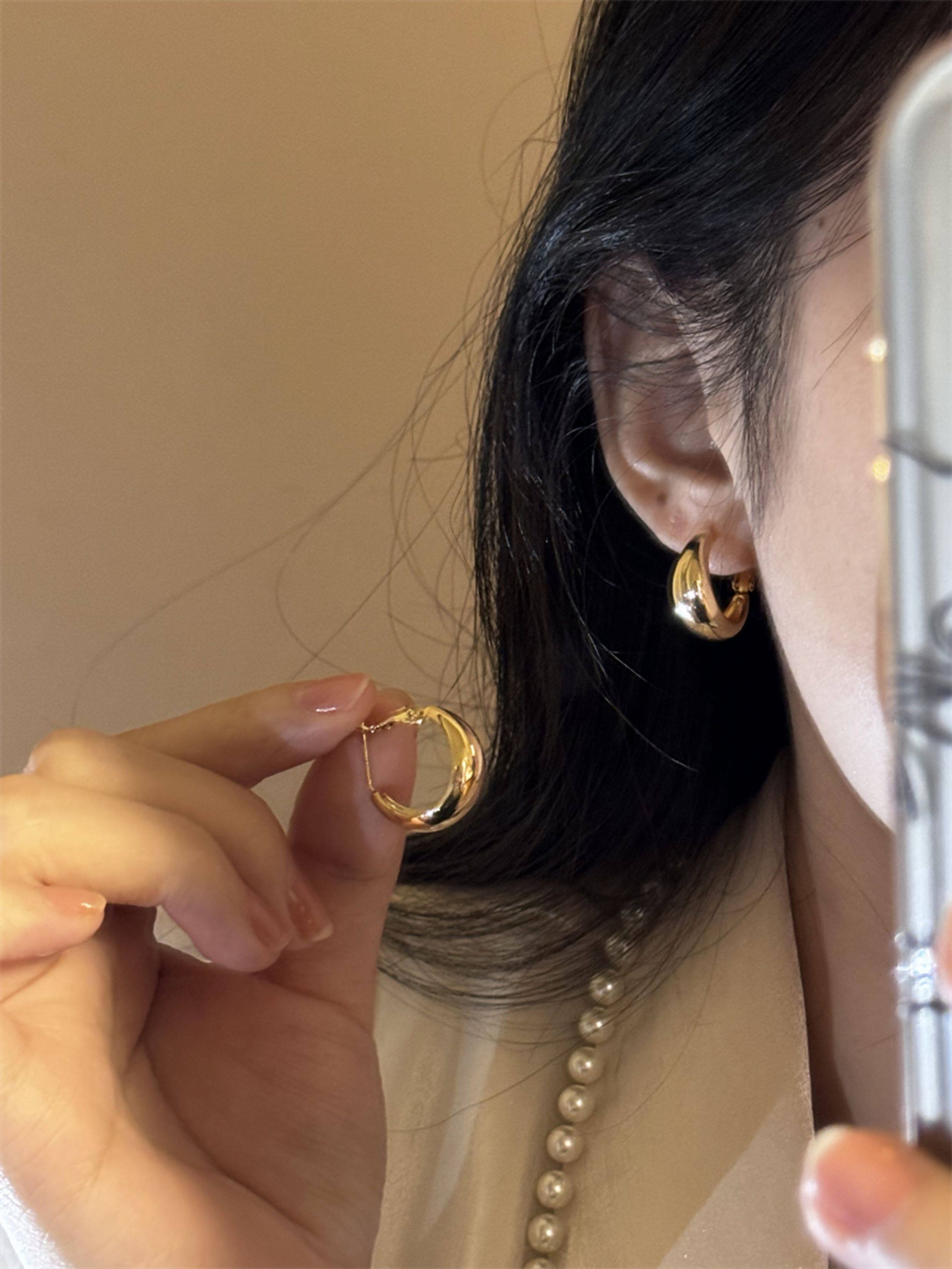 歐美復古金屬耳圈女輕奢高級感小衆設計簡約百搭氣質耳環耳飾秋冬