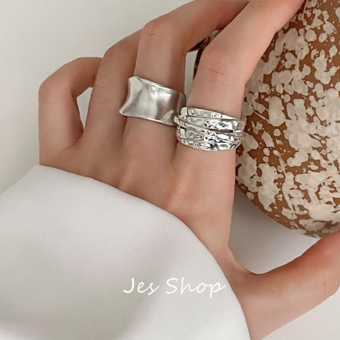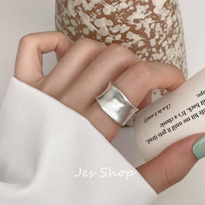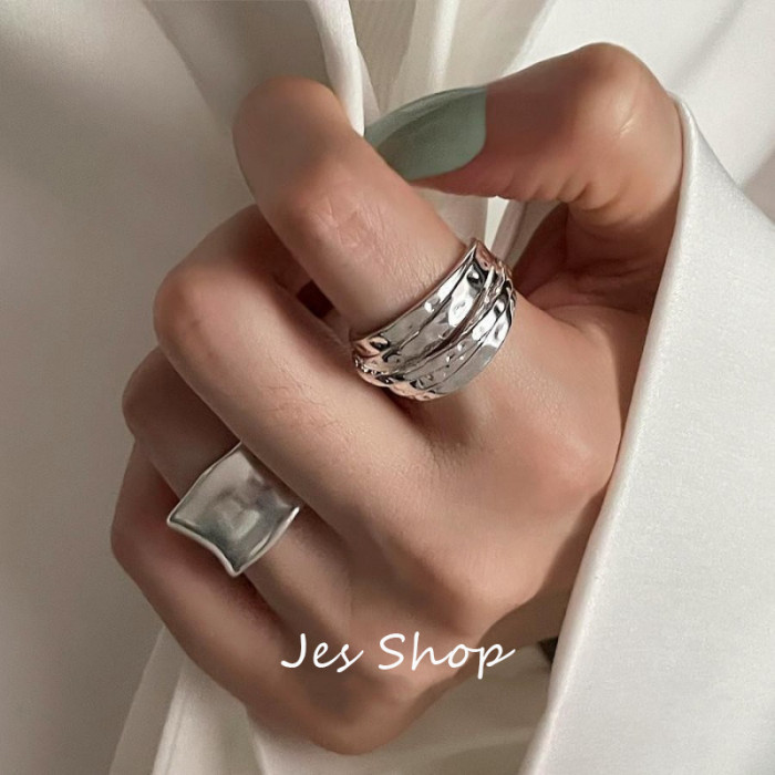 Jes Shop磨砂霧面戒指時尚寬面不規則纏繞個性開口指環情侶食指戒
