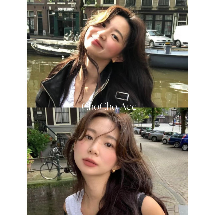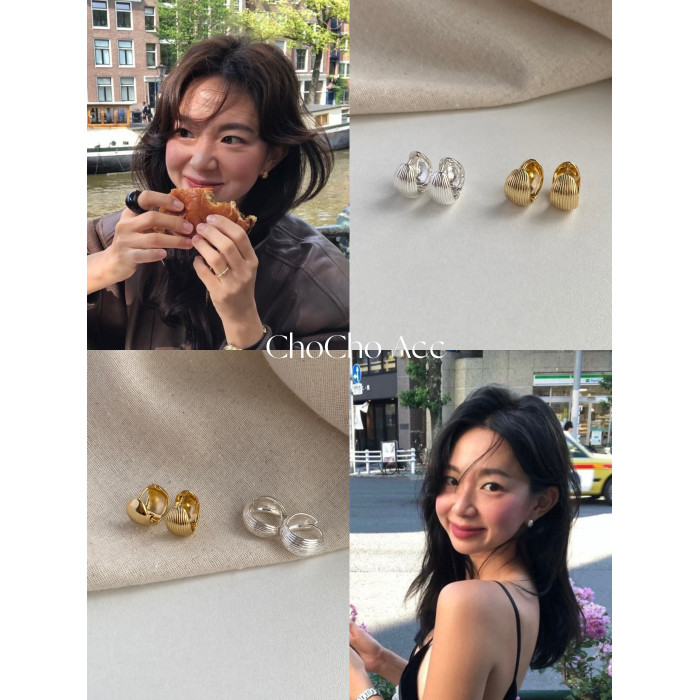 chocho/韓國博主fever同款法式氣質貝殼耳釦小衆簡約百搭ins耳釘