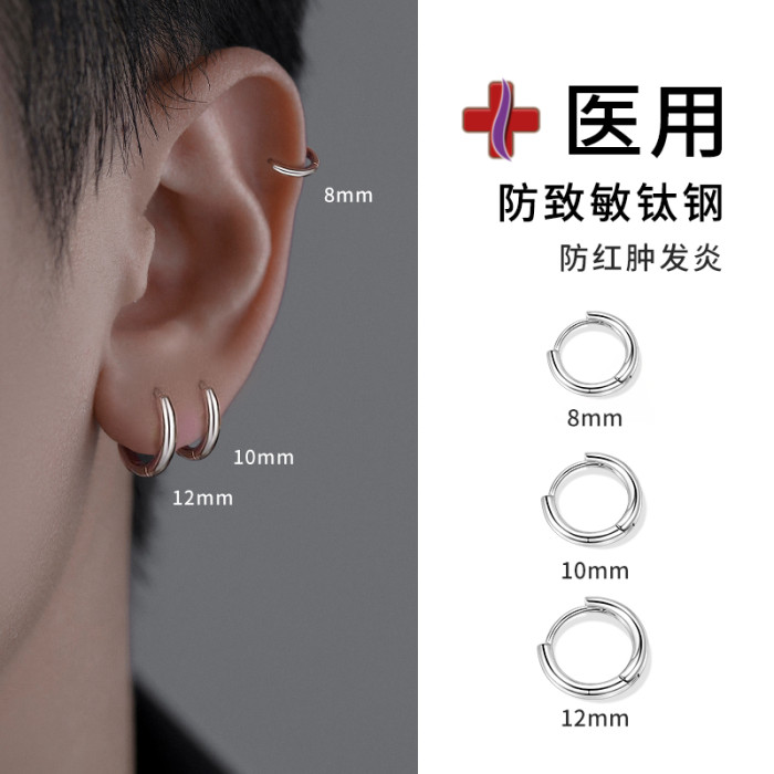 醫用鈦鋼耳圈耳釘男士潮流嘻哈素圈耳環養耳洞圓圈耳骨鈦合金耳釘