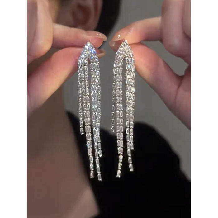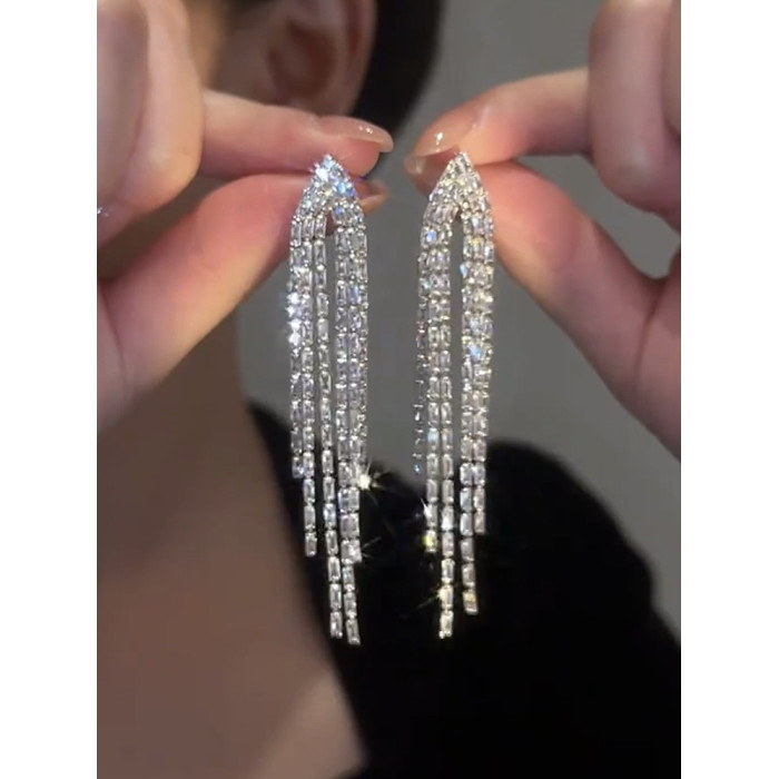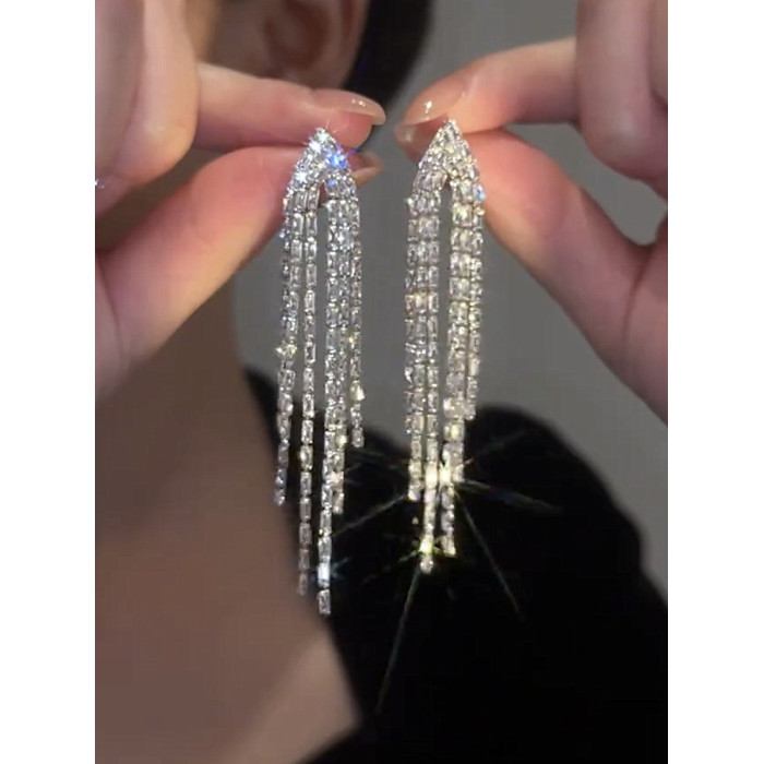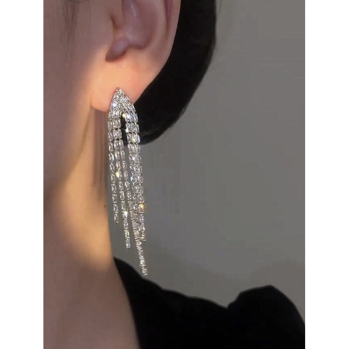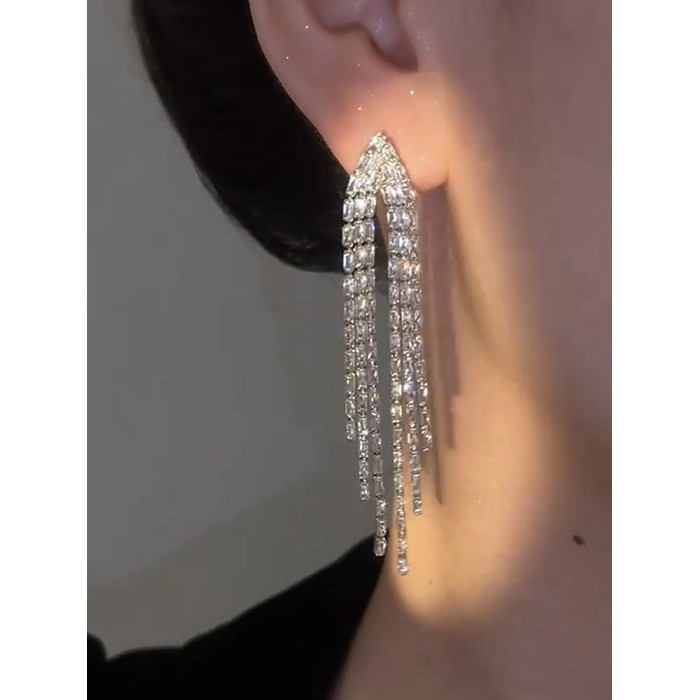高級感流蘇耳環女氣質耳墜長款圓臉顯瘦輕奢銀針耳飾2024年新款潮