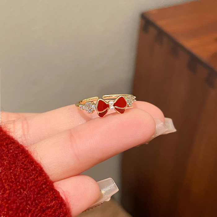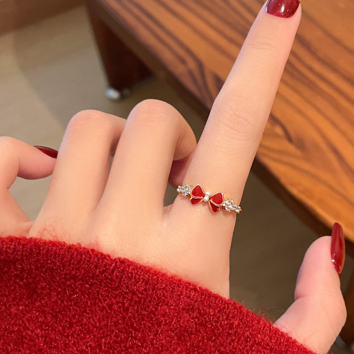 紅色蝴蝶結新年開口戒指女2026新款爆款輕奢高級感指環小衆設計