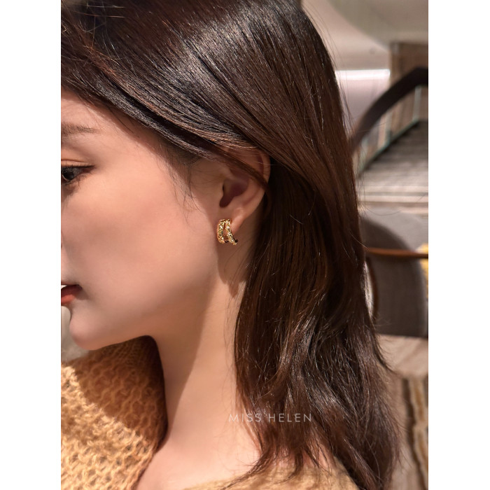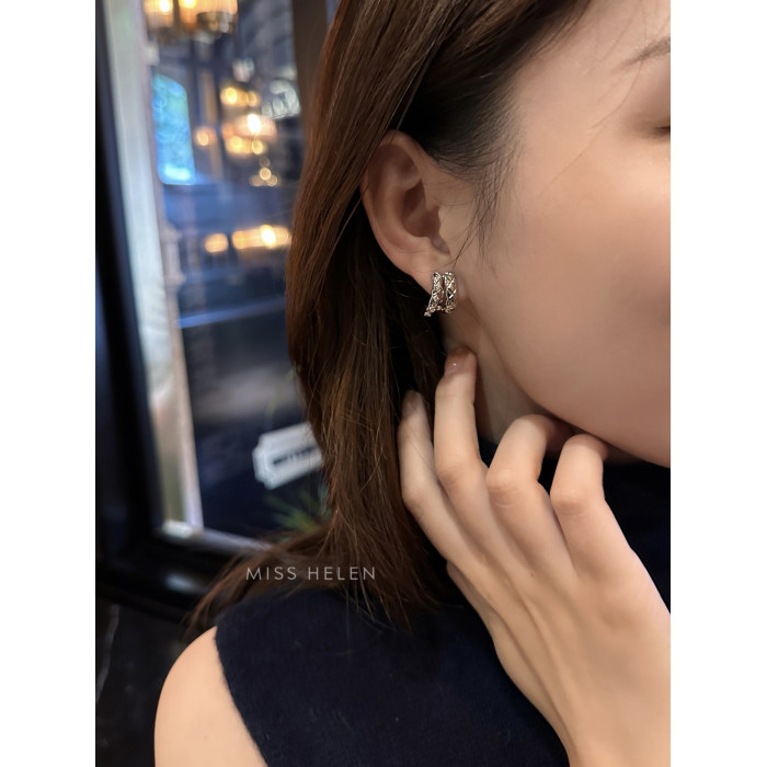 MISS HELEN「香風菱格」金屬風質感耳夾女小衆耳飾耳釘無耳洞耳環