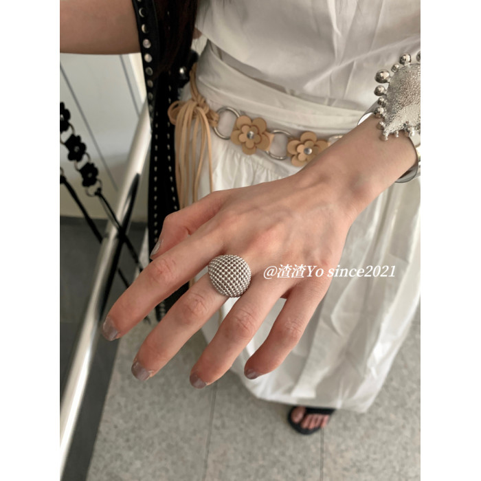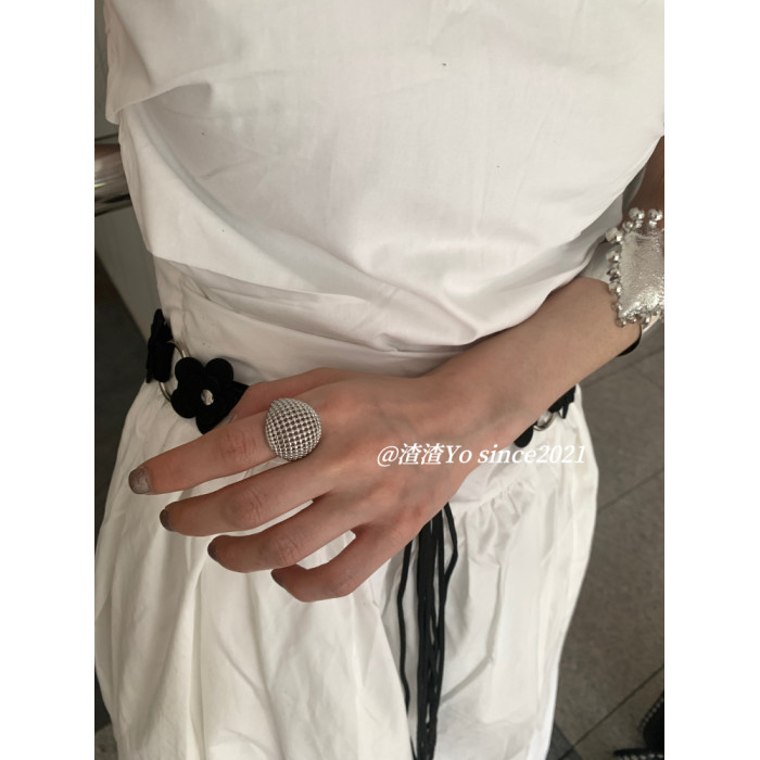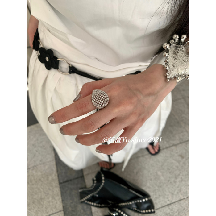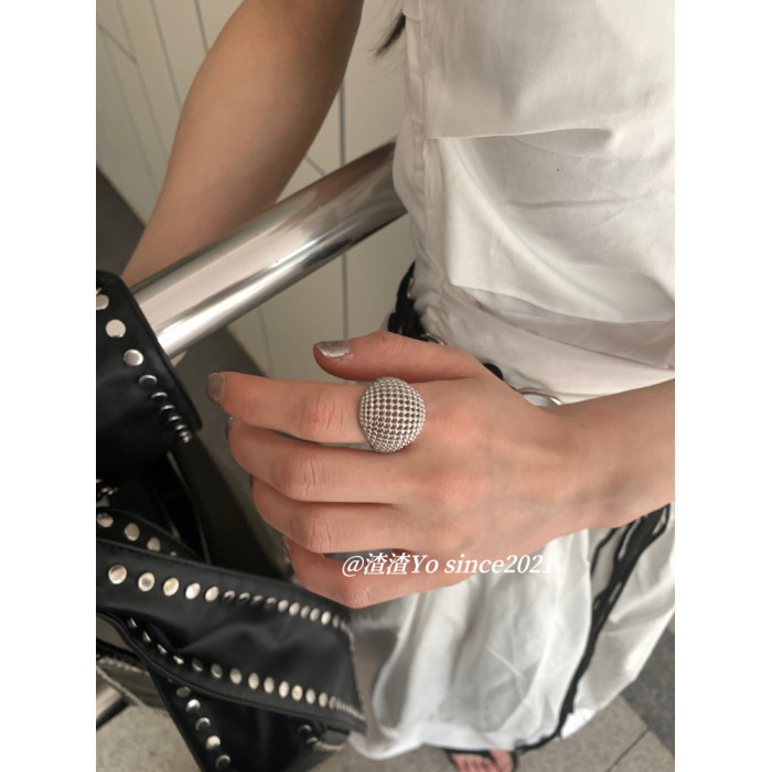 渣渣Yo韓系ins小衆鏤空圓球網狀戒指女設計感銀色輕奢高級感指環
