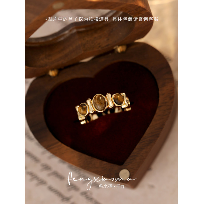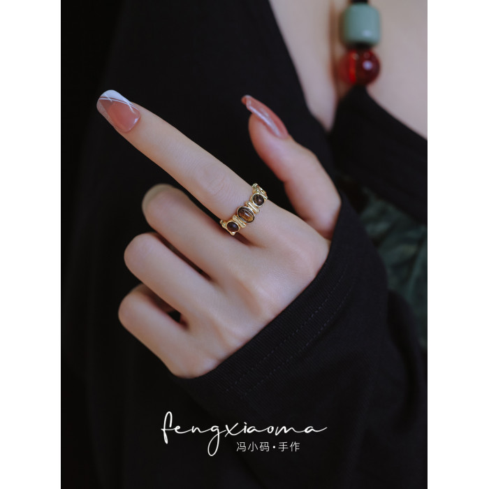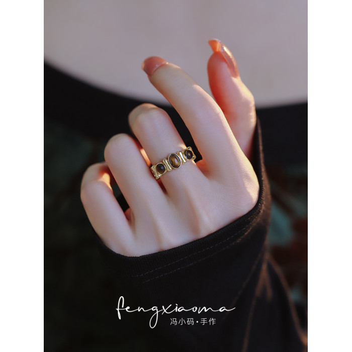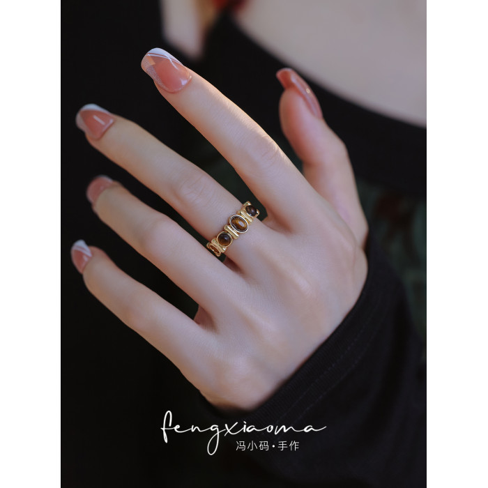 精緻復古虎眼石戒指女2025新款輕奢小衆設計食指戒自律尾戒配飾
