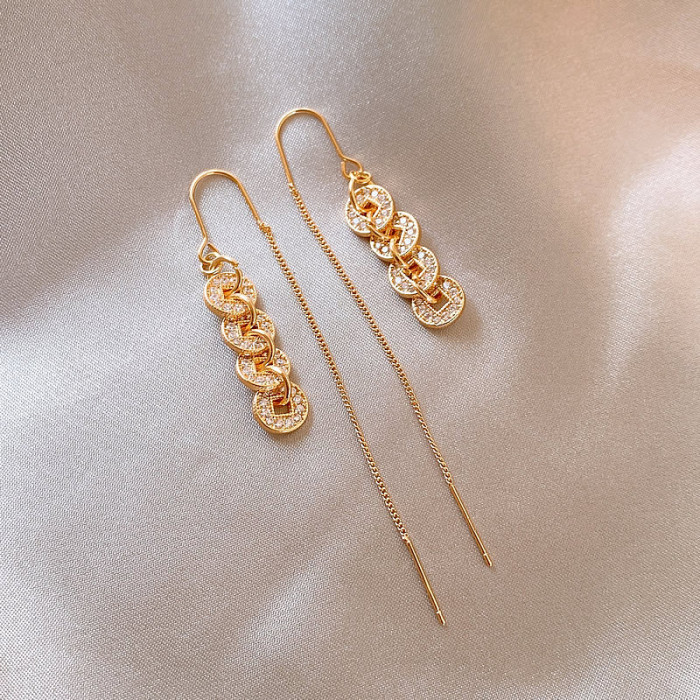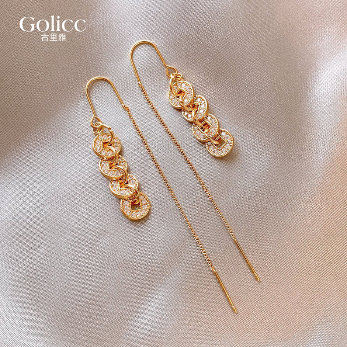 金色錢幣流蘇耳線耳環女2026新款爆款高級感耳飾獨特漂亮小衆耳釘