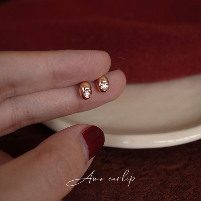 超迷你閃鑽小金豆耳夾女無耳洞精緻高級日常通勤矽膠耳飾2025新款