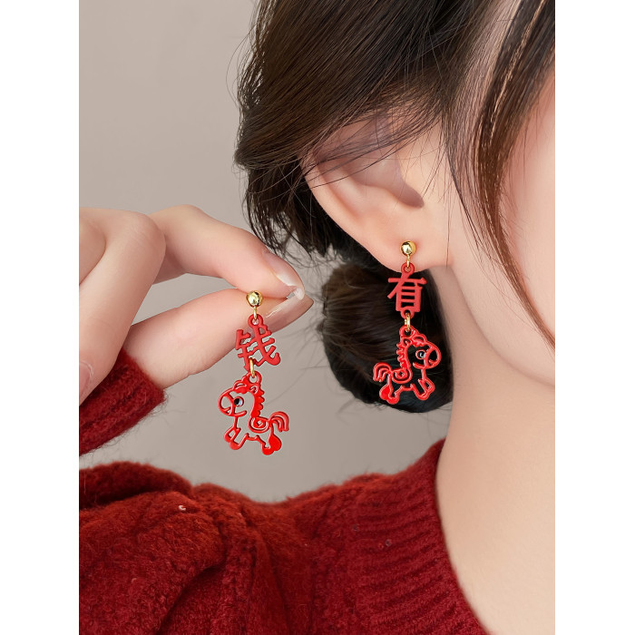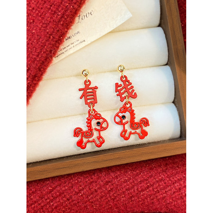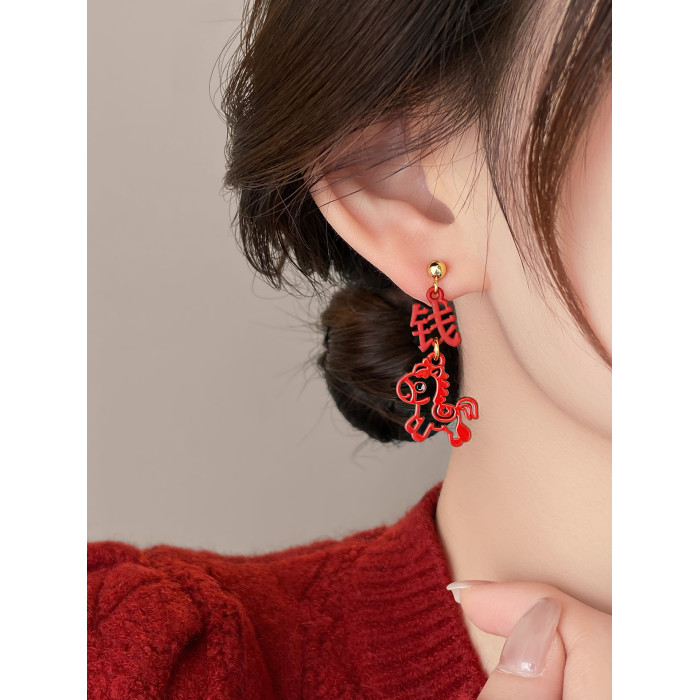 馬上有錢本命年小馬無耳洞耳夾耳環2026新款爆款高級感耳釘耳飾女