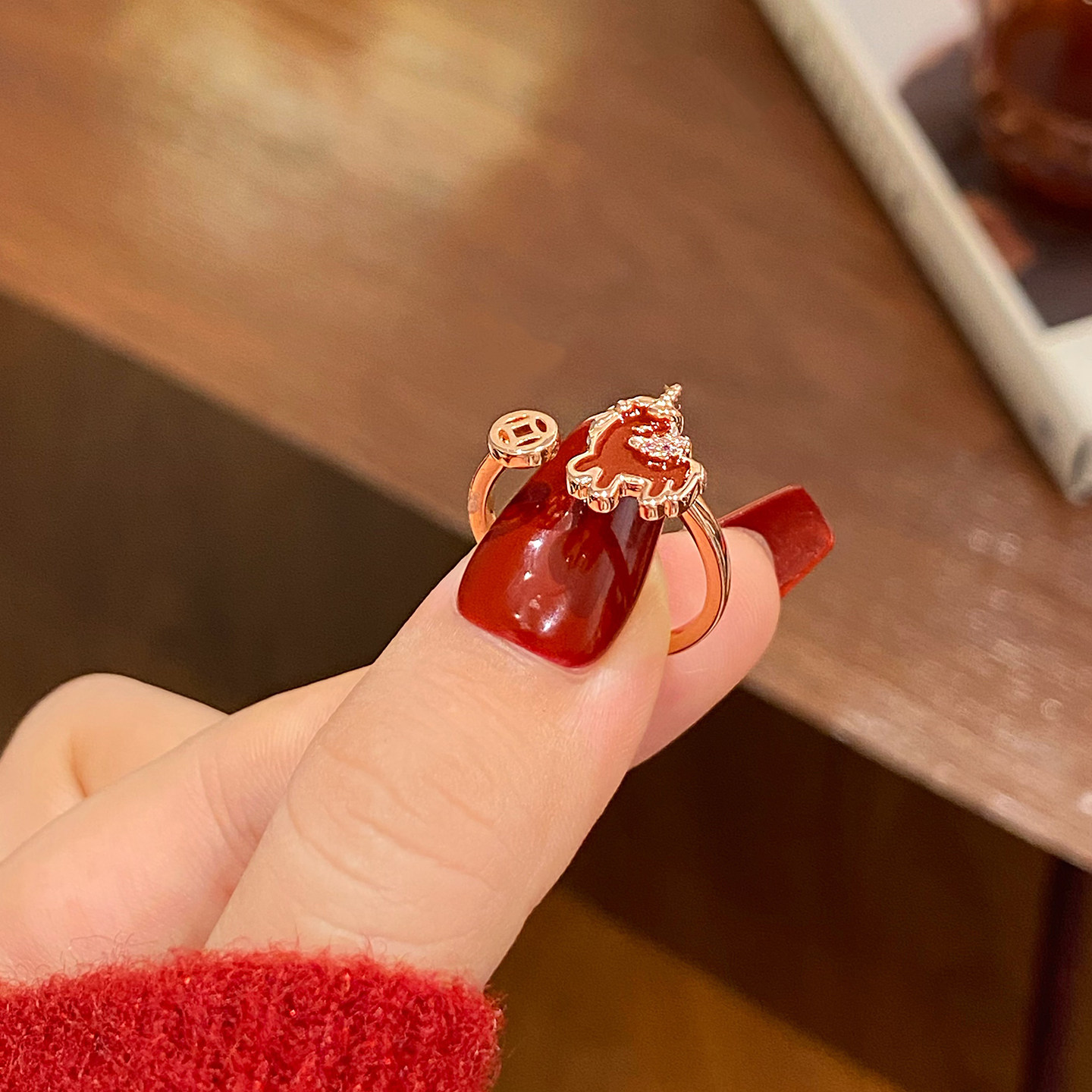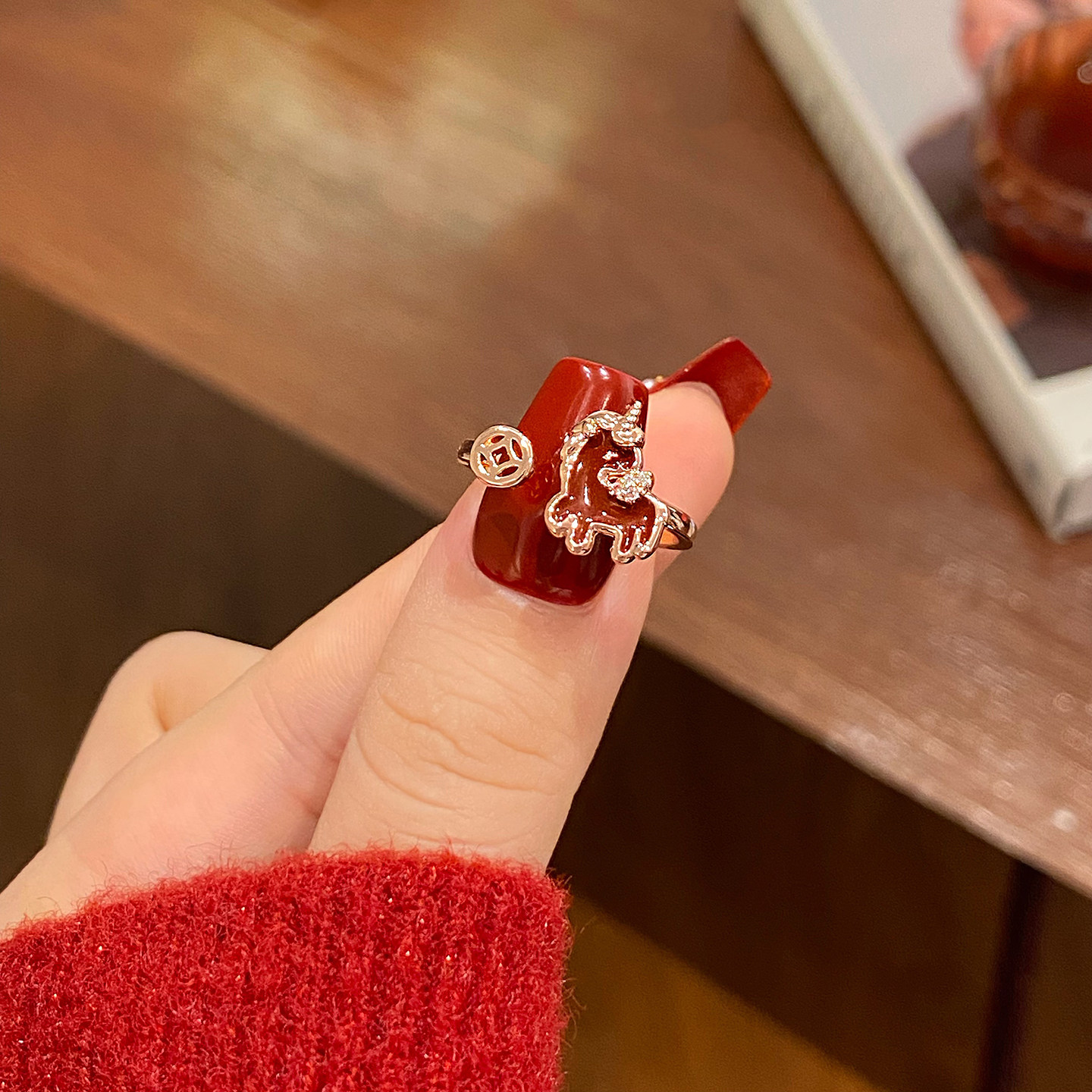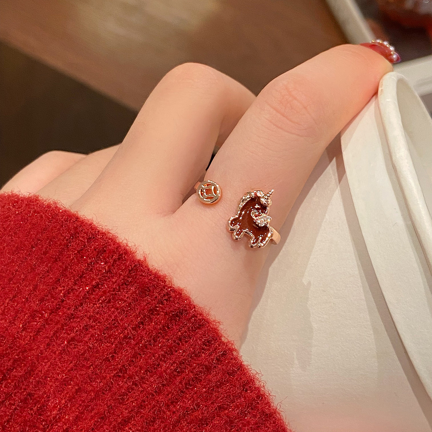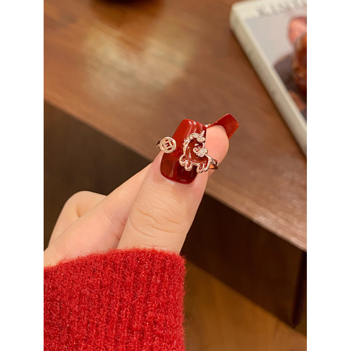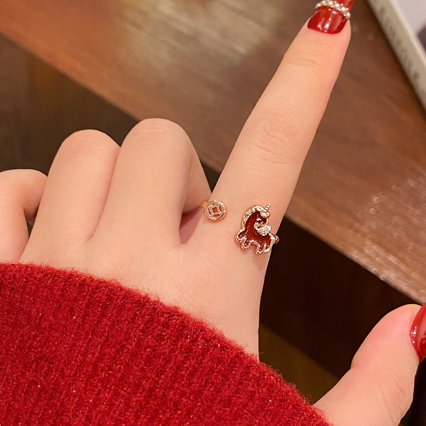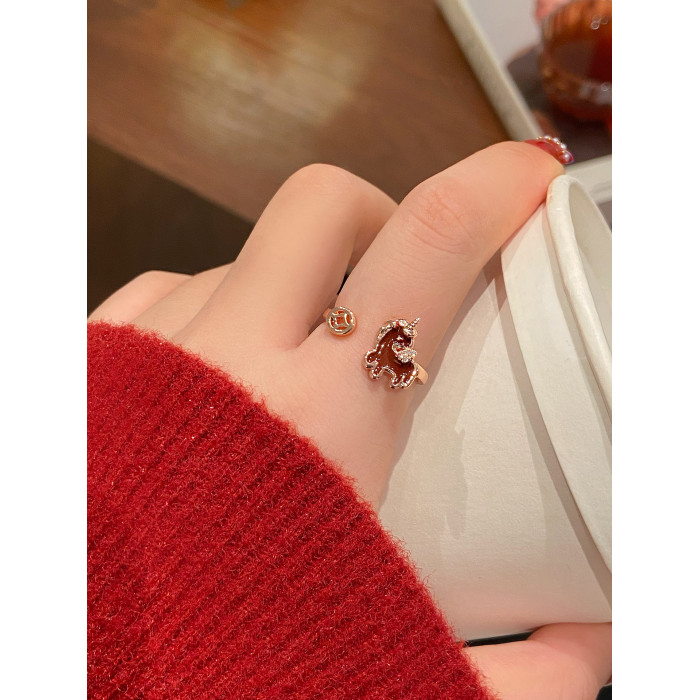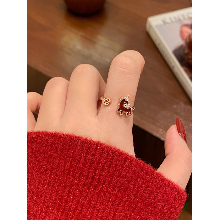 新年小馬紅色開口戒指女2026新款爆款小衆設計食指環輕奢高級感