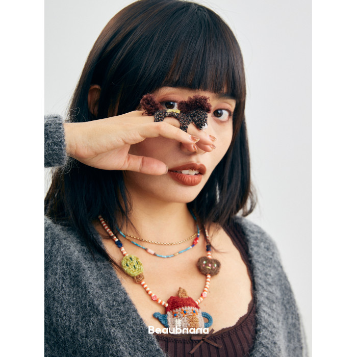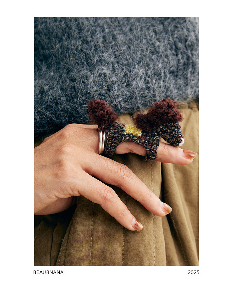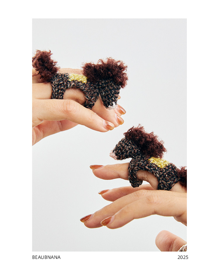 入會享8-9折 小黃香蕉手鉤馬戒指女新年限定款毛線針織指環套獨特