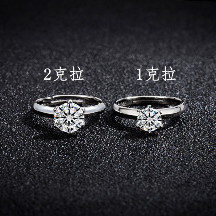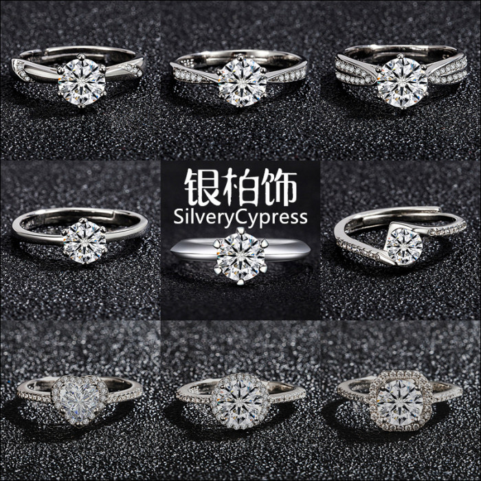 銀柏飾戒指女莫桑鑽戒女仿真一克拉開口刻字時尚個性小衆設計禮物