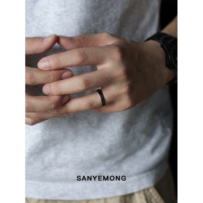 山野望原創磨砂陶瓷戒指男潮極簡個性霧面黑色不掉色百搭基礎戒指