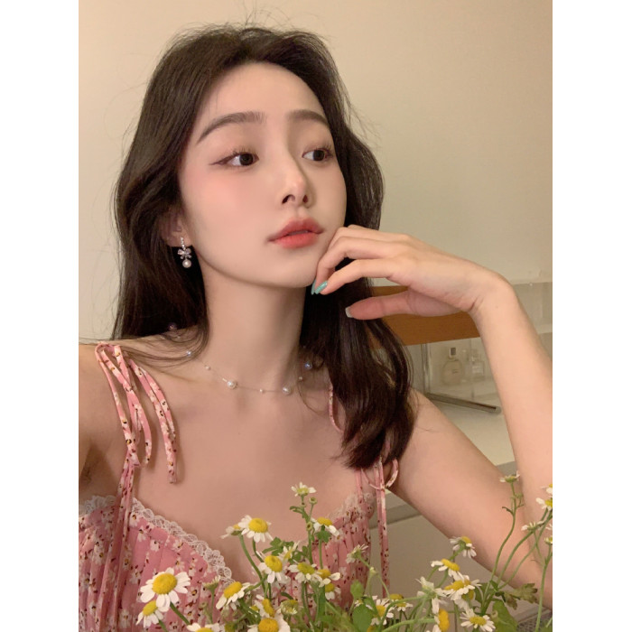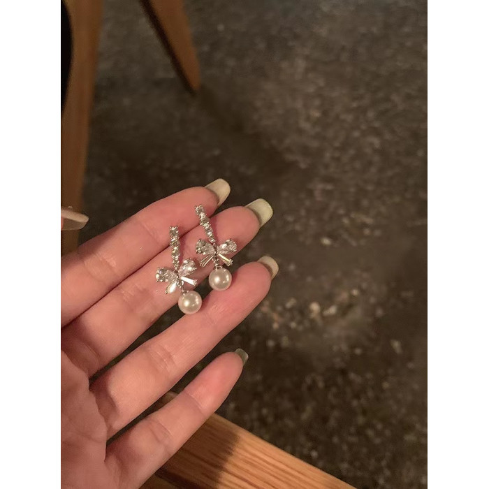 韓系閃鋯蝴蝶結珍珠耳環輕奢高級感耳釘獨特絕美耳飾無耳洞耳夾