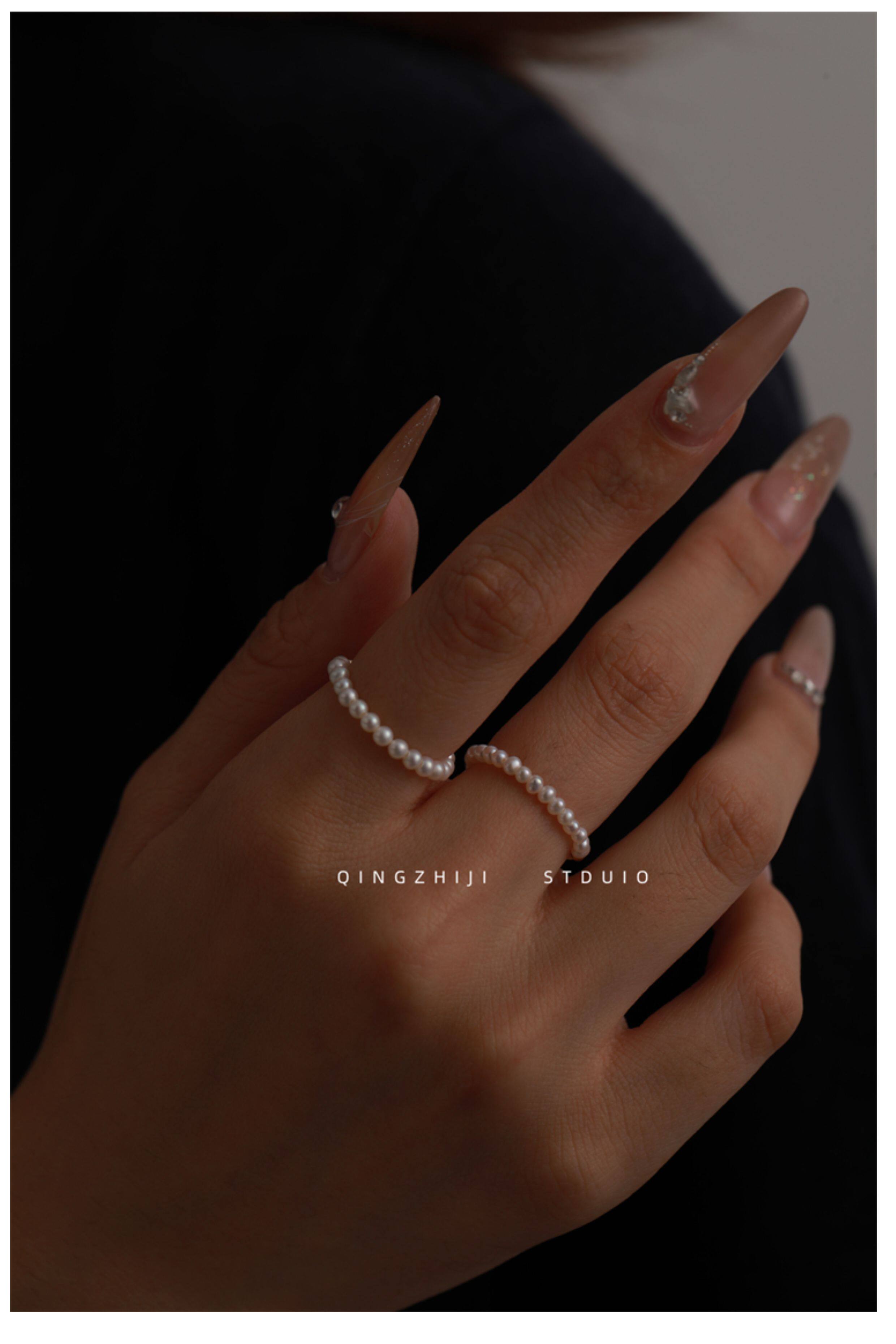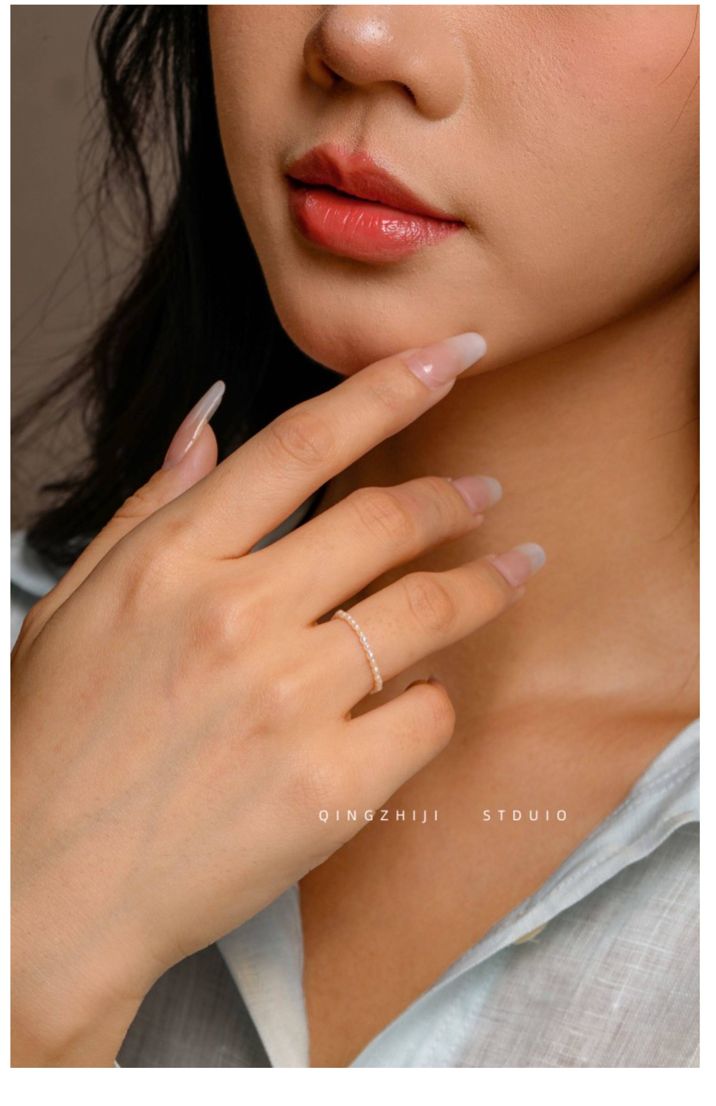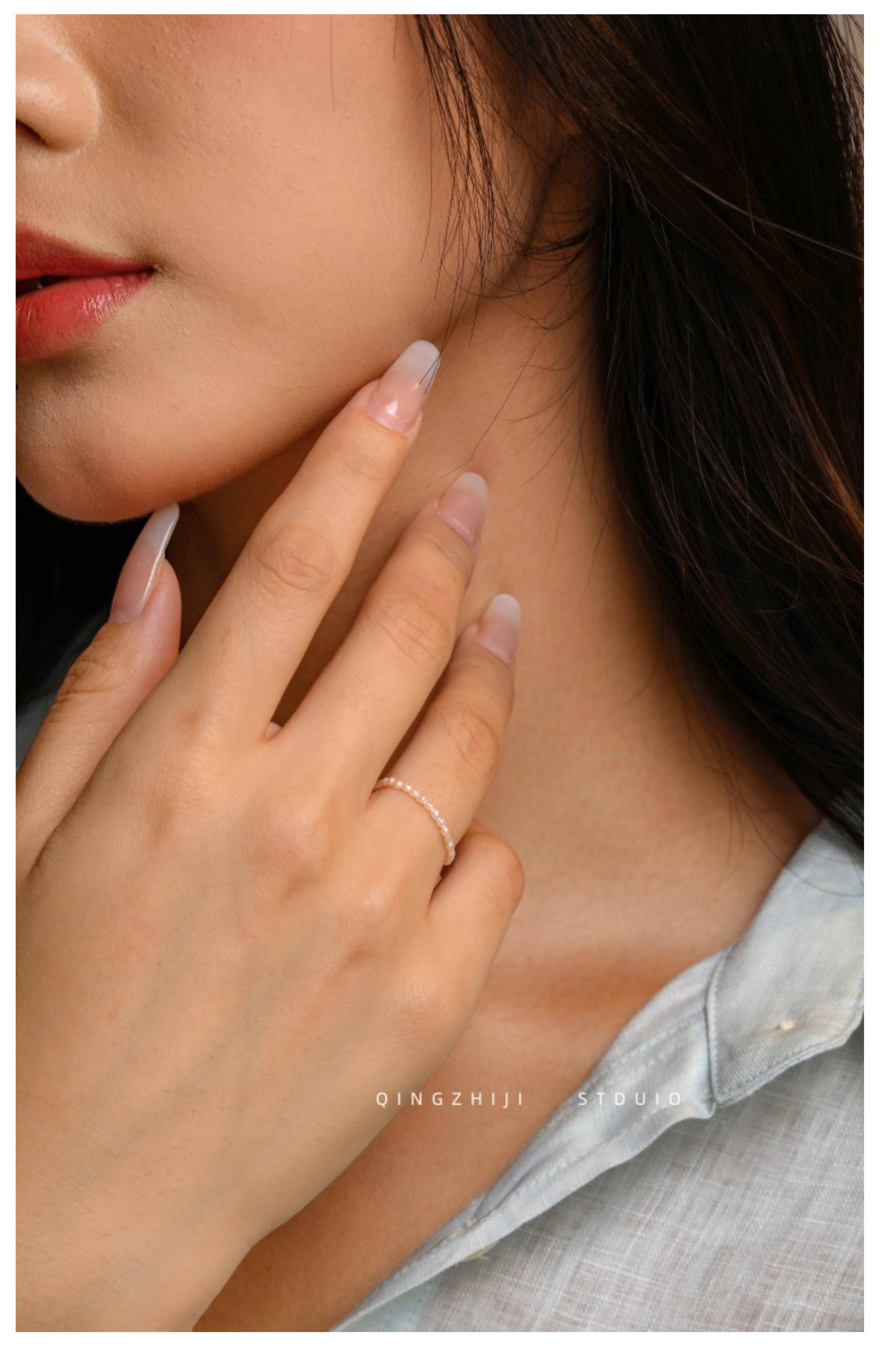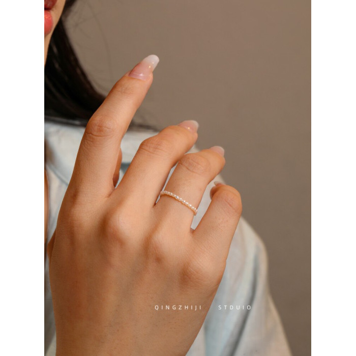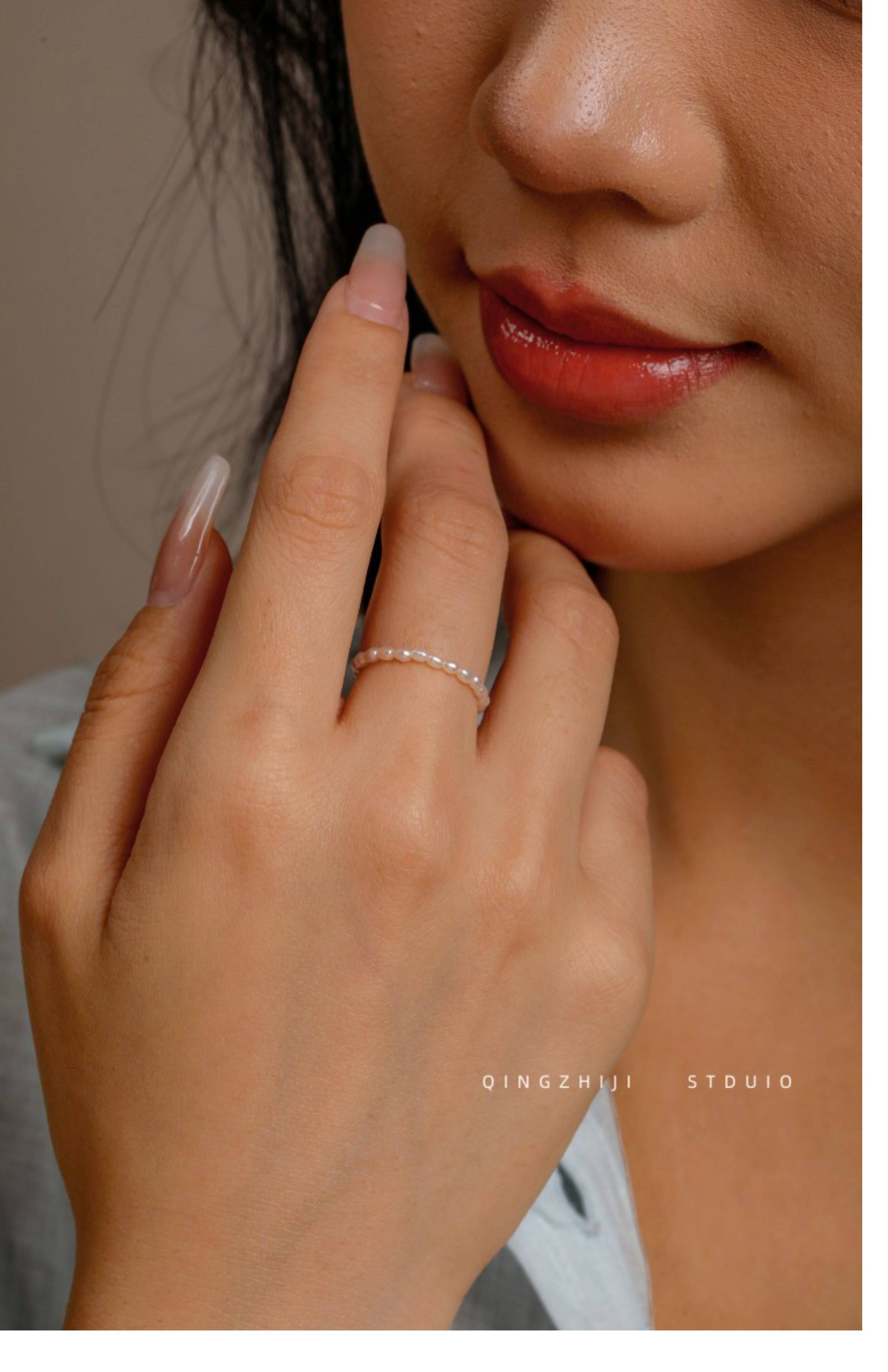 強光淡水養殖超小米粒珍珠戒指女全網zui細純手工製作彈力繩戒指