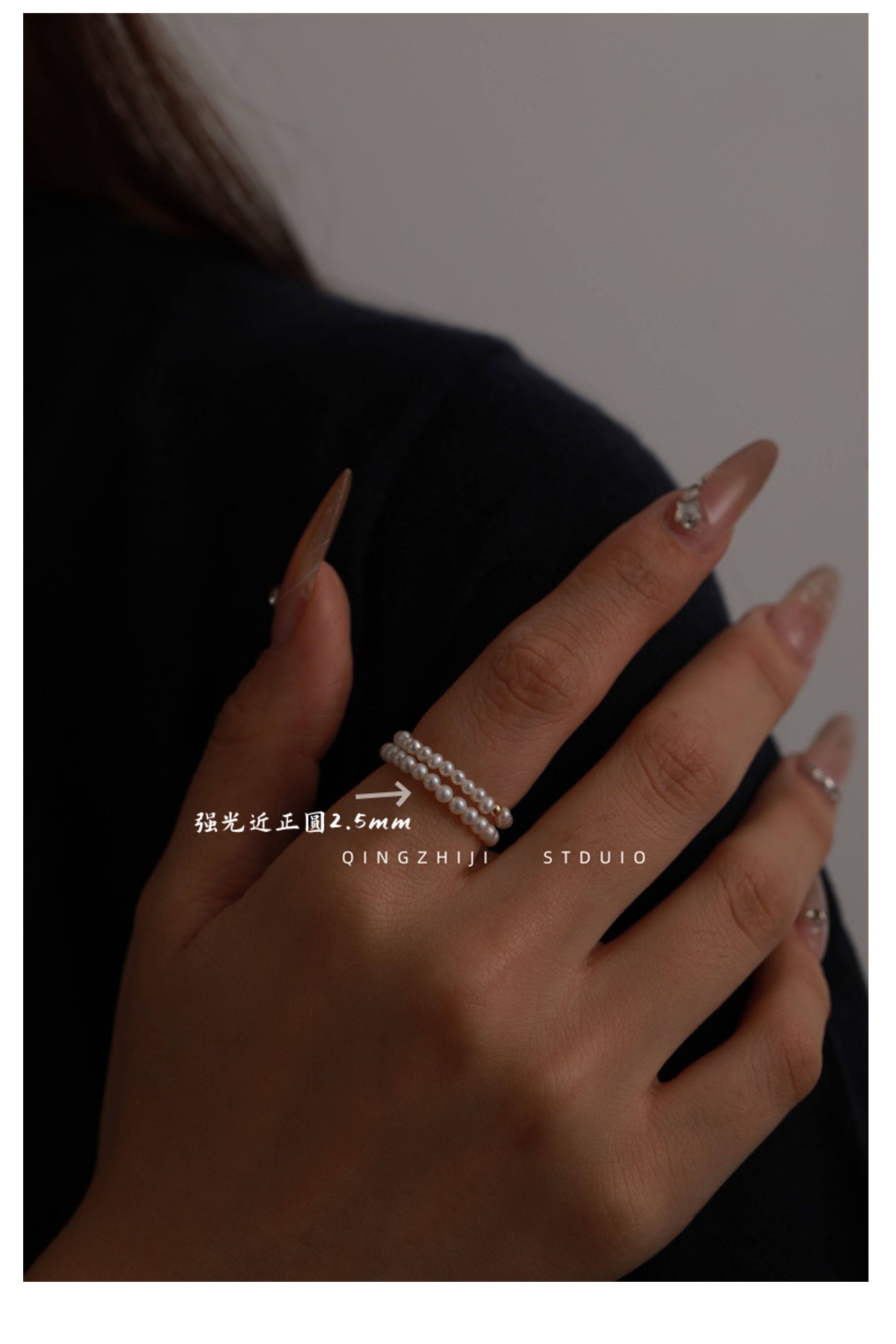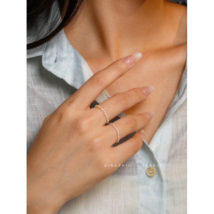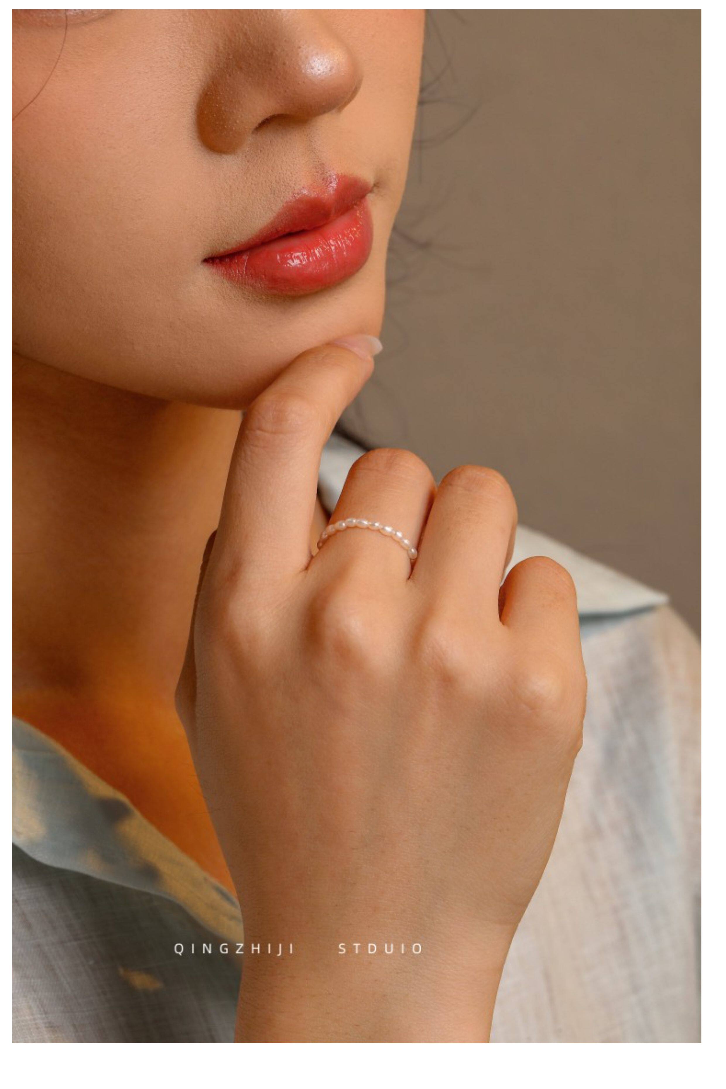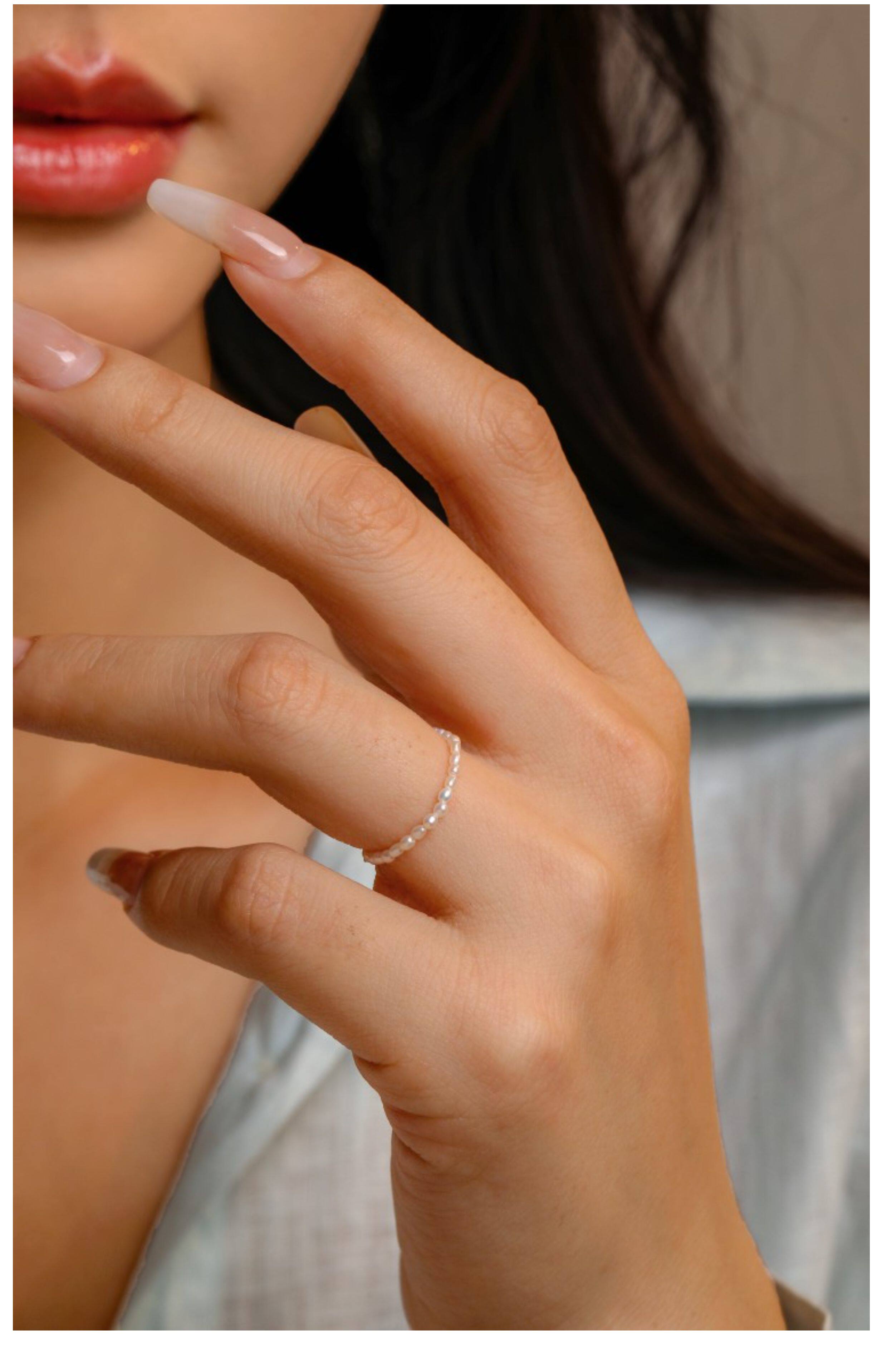 強光淡水養殖超小米粒珍珠戒指女全網zui細純手工製作彈力繩戒指