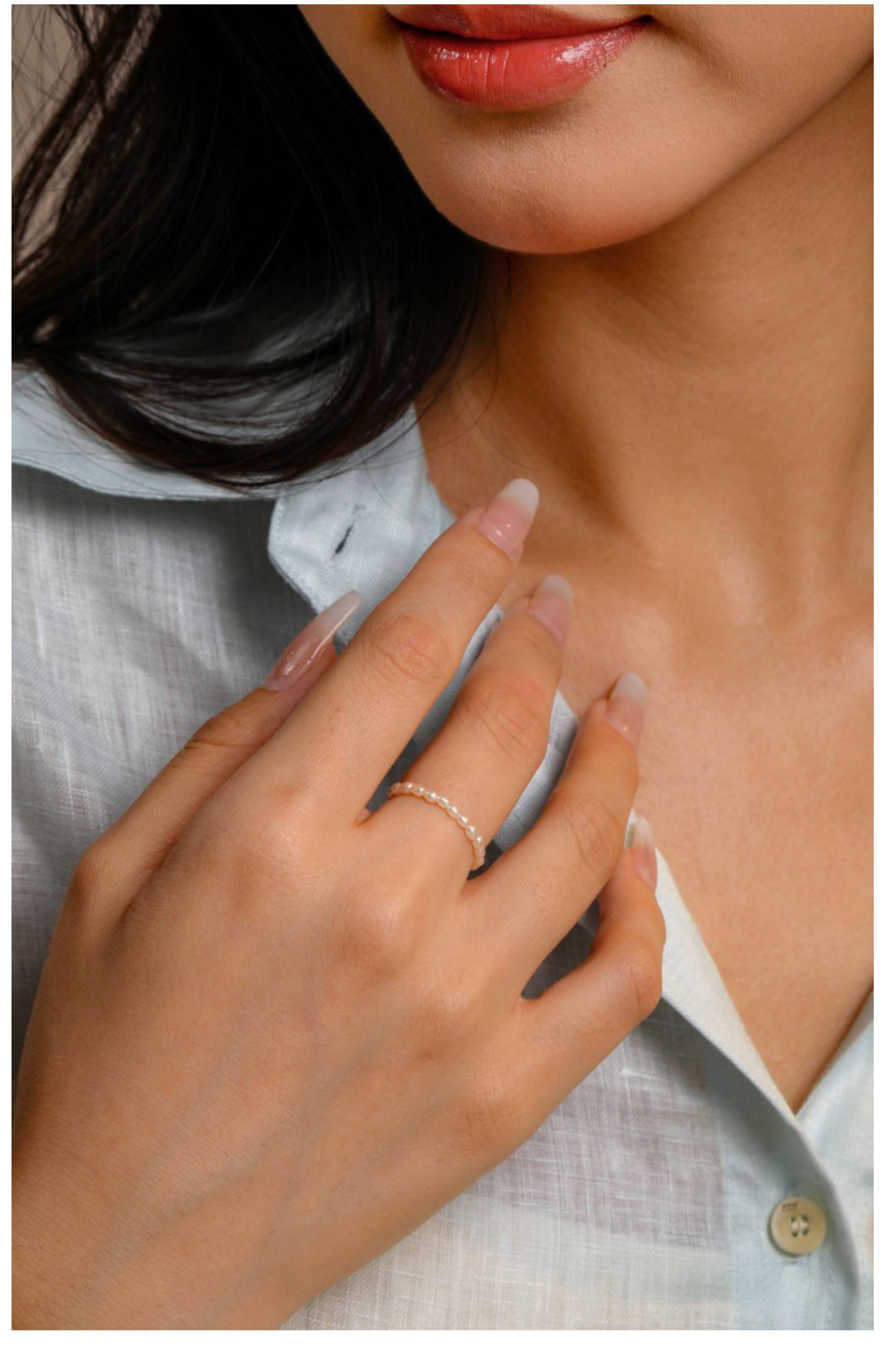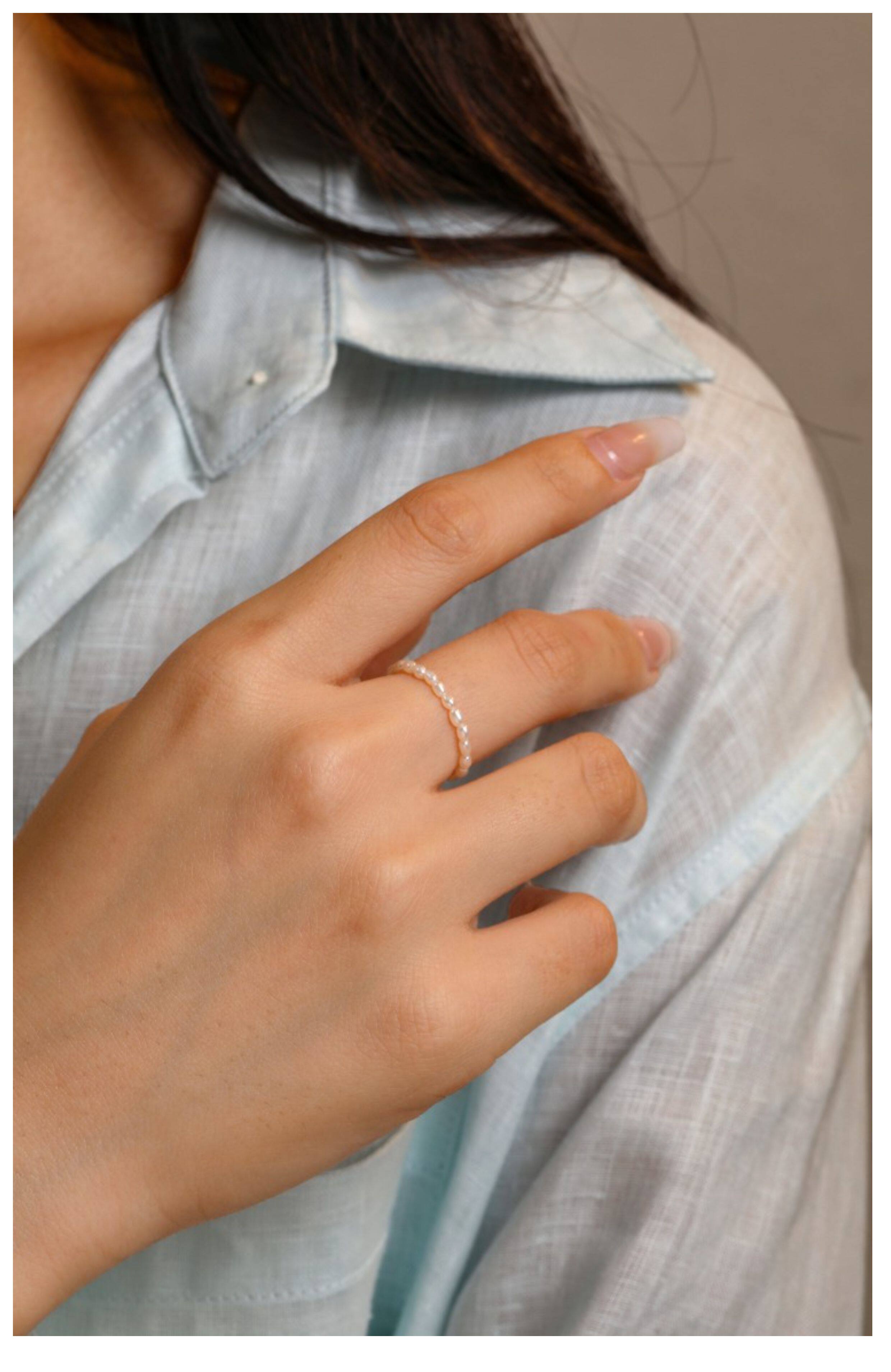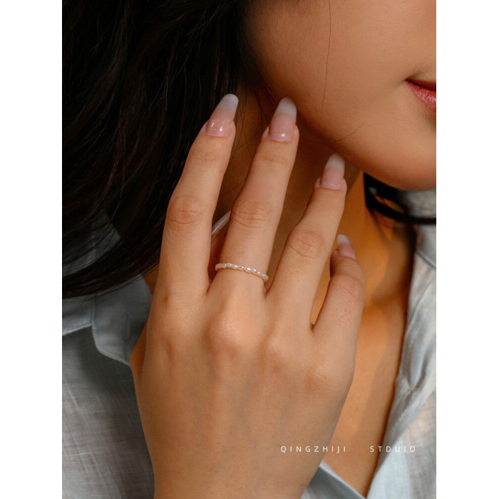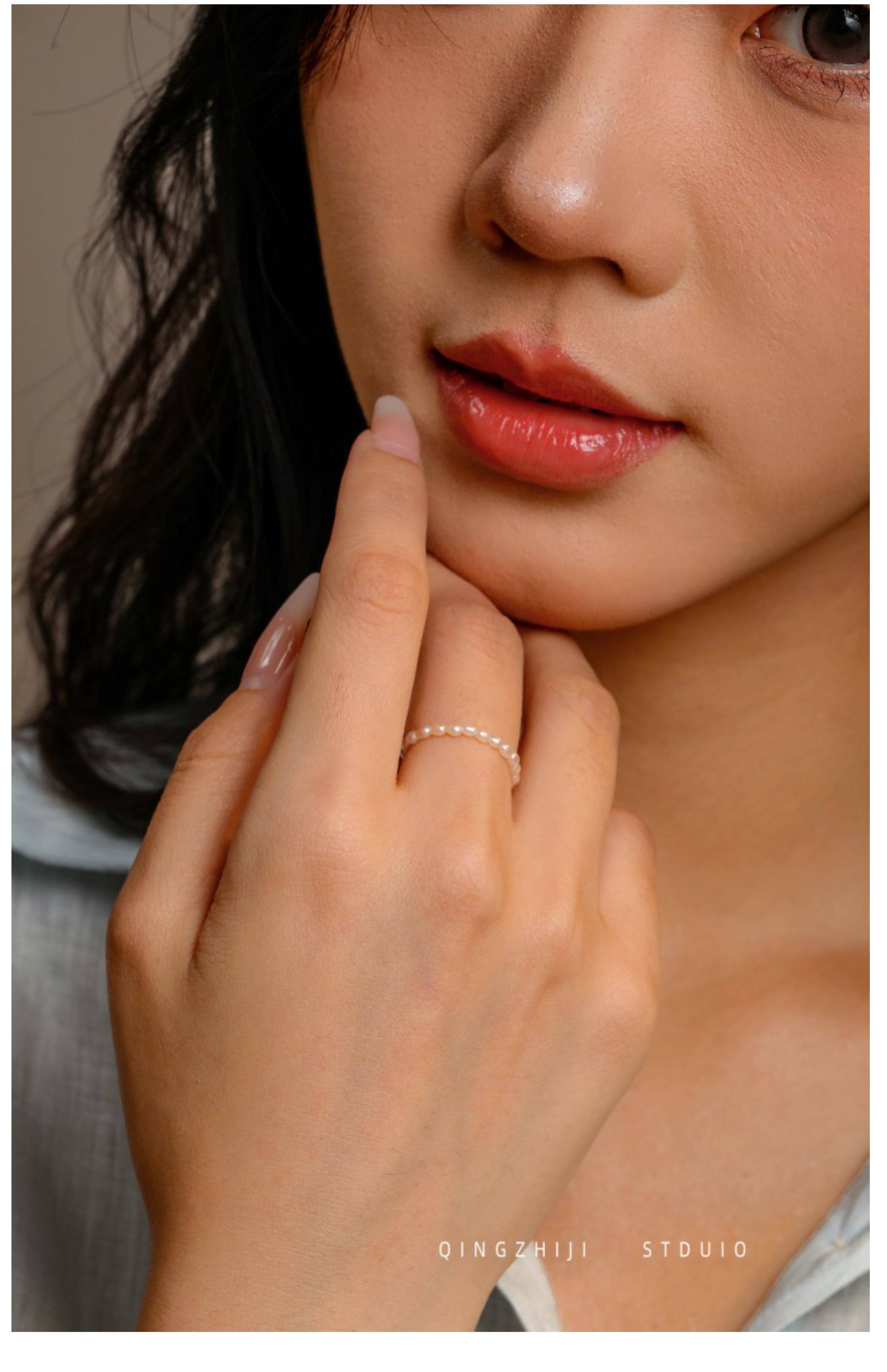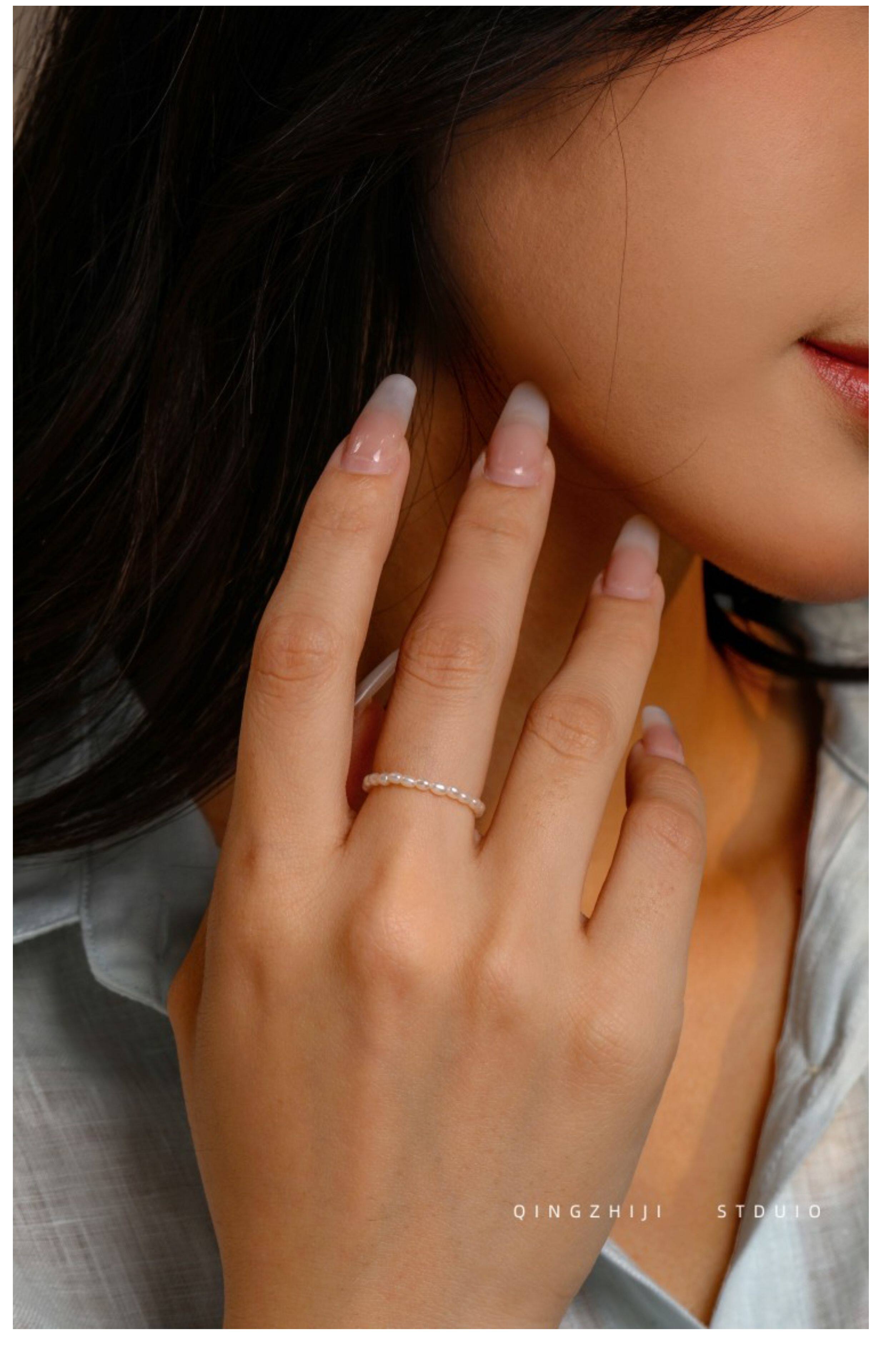 強光淡水養殖超小米粒珍珠戒指女全網zui細純手工製作彈力繩戒指