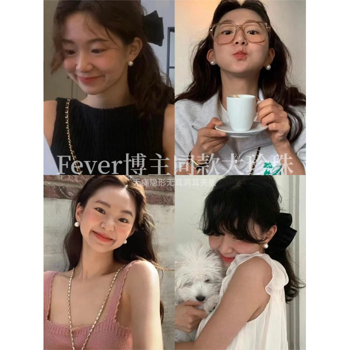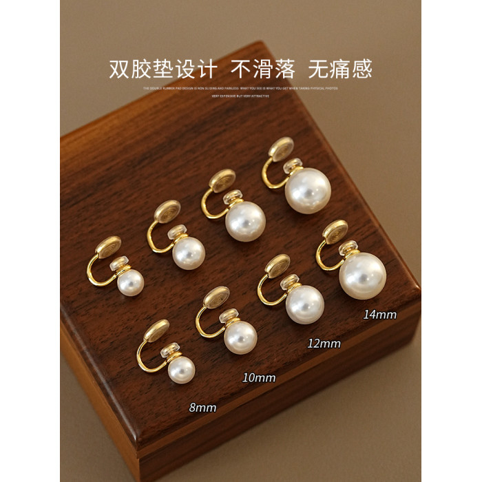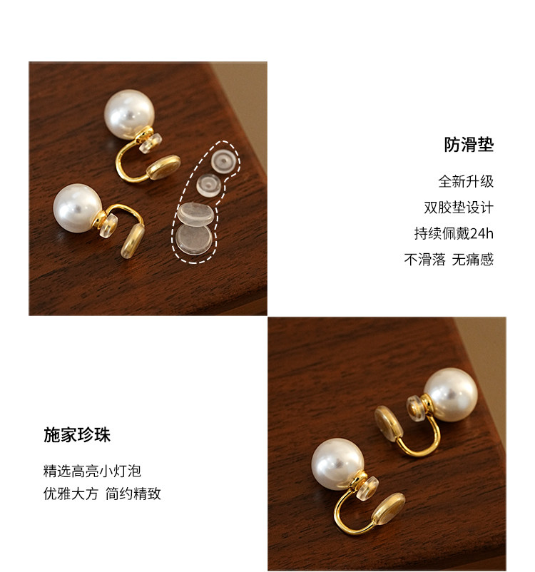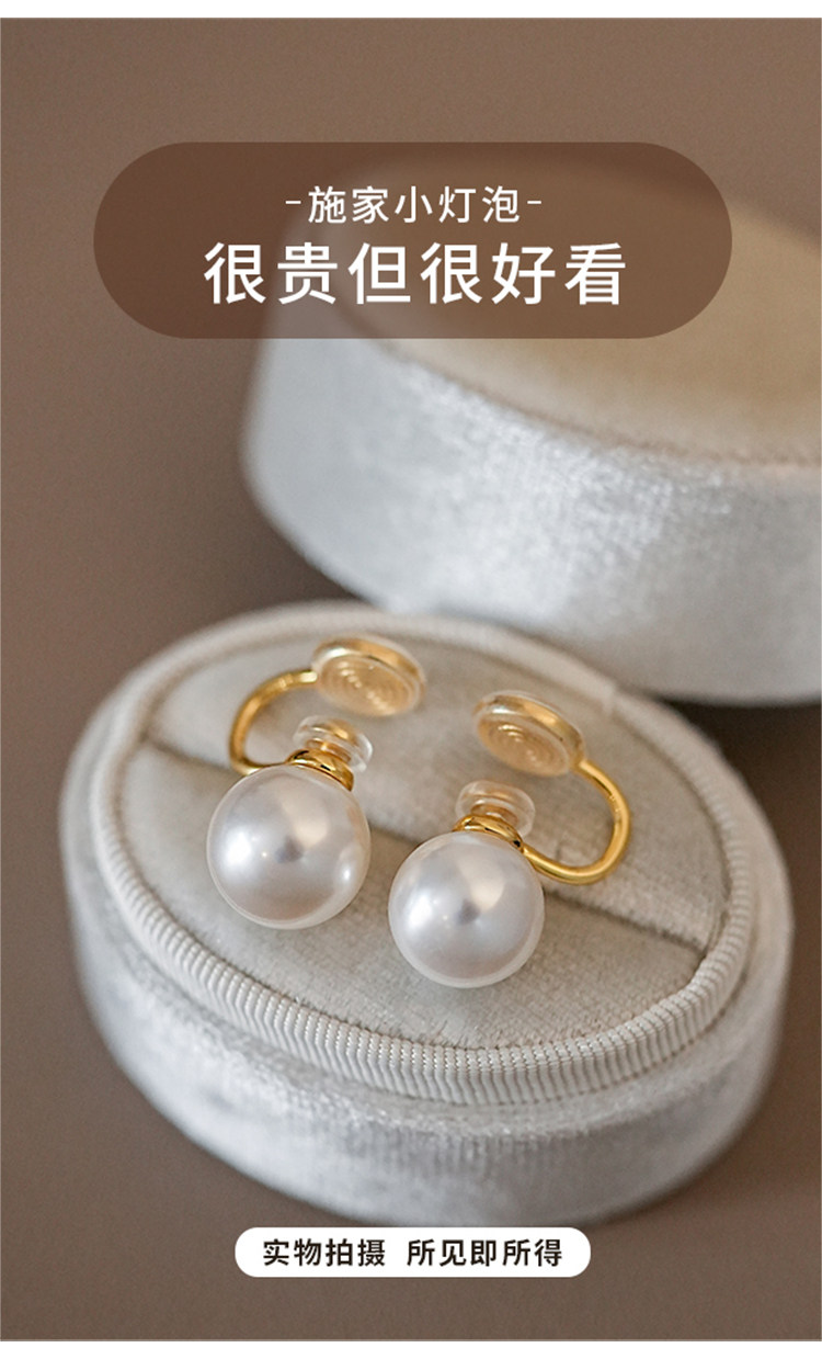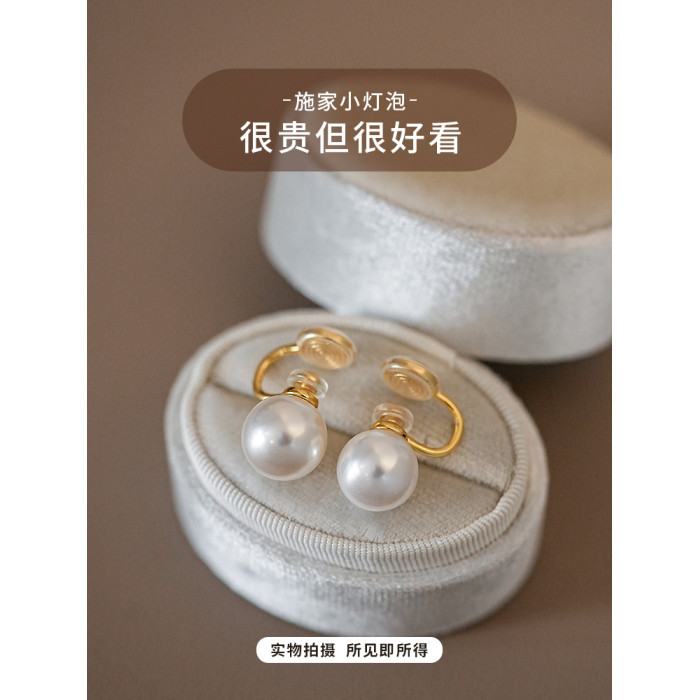 施家珍珠耳釘無耳洞珍珠耳夾女新款大珍珠耳環蚊香盤高級感耳飾