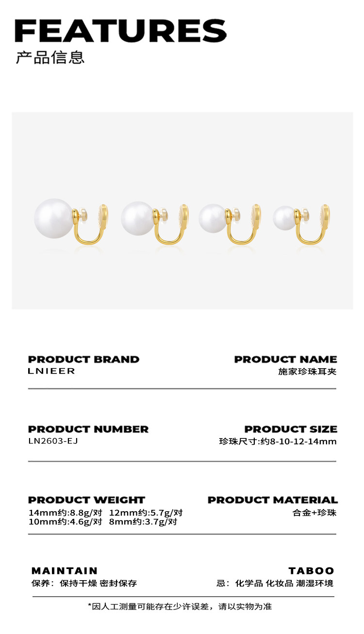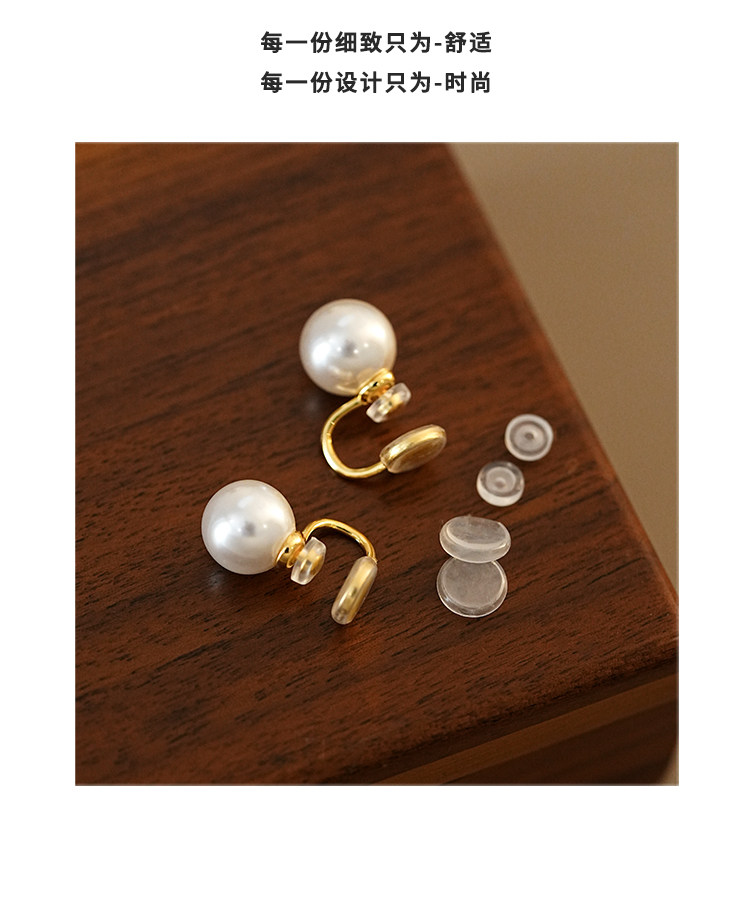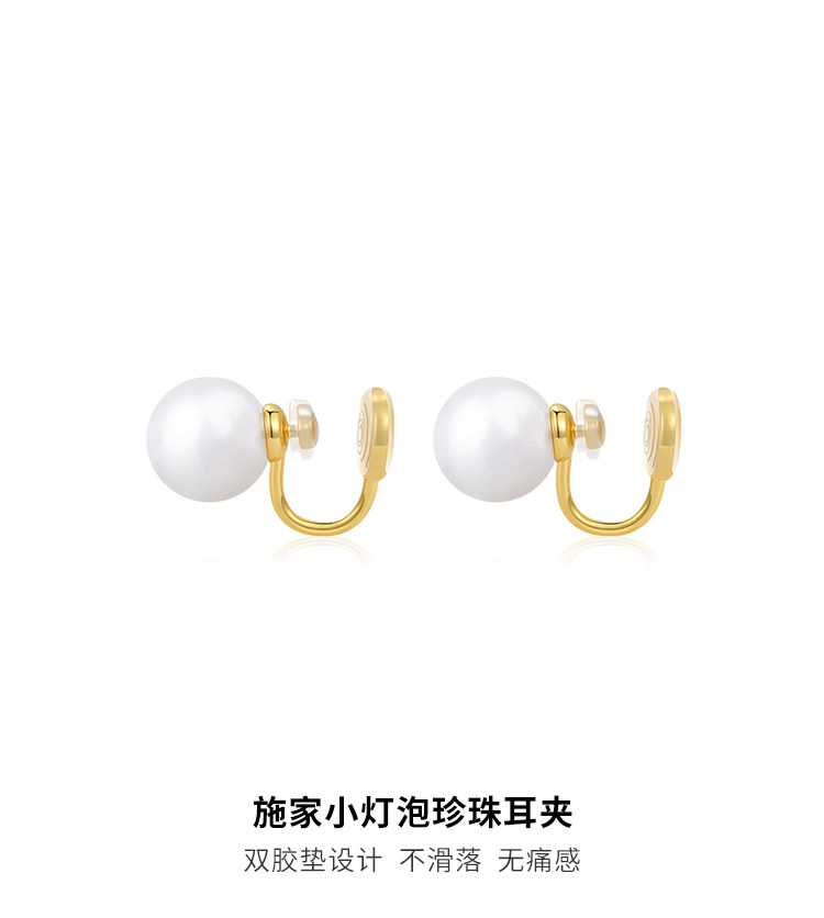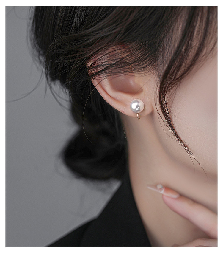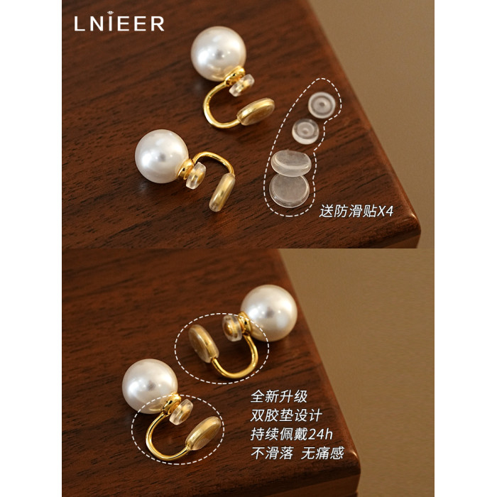 施家珍珠耳釘無耳洞珍珠耳夾女新款大珍珠耳環蚊香盤高級感耳飾