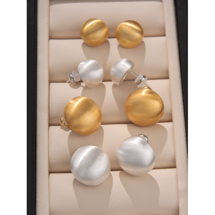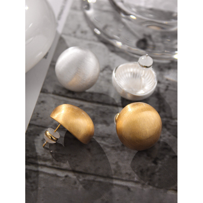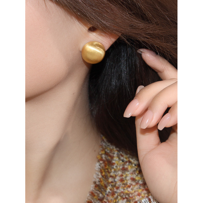 歐美時尚輕奢啞光金屬拉絲半圓球耳釘小衆設計感百搭氣質耳環網紅