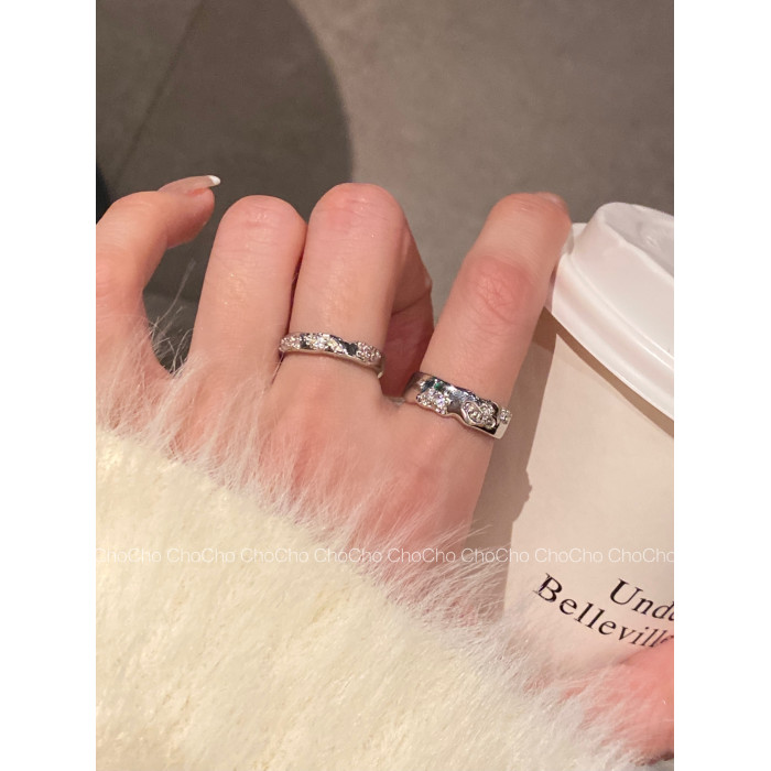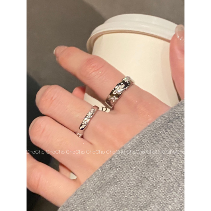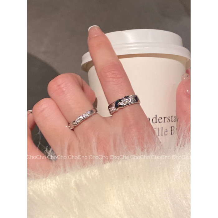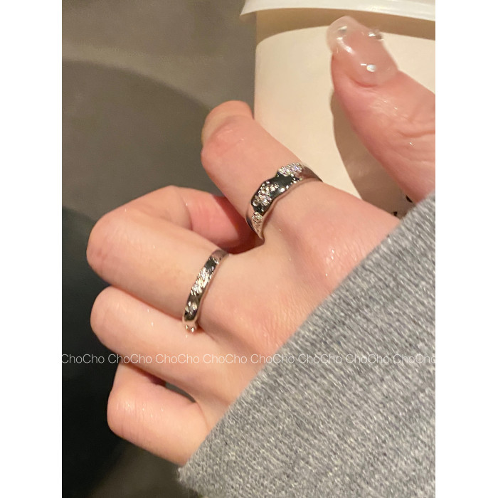 chocho/輕奢小衆設計銀色鋯石戒指ins冷淡風高級感個性曡戴指環女