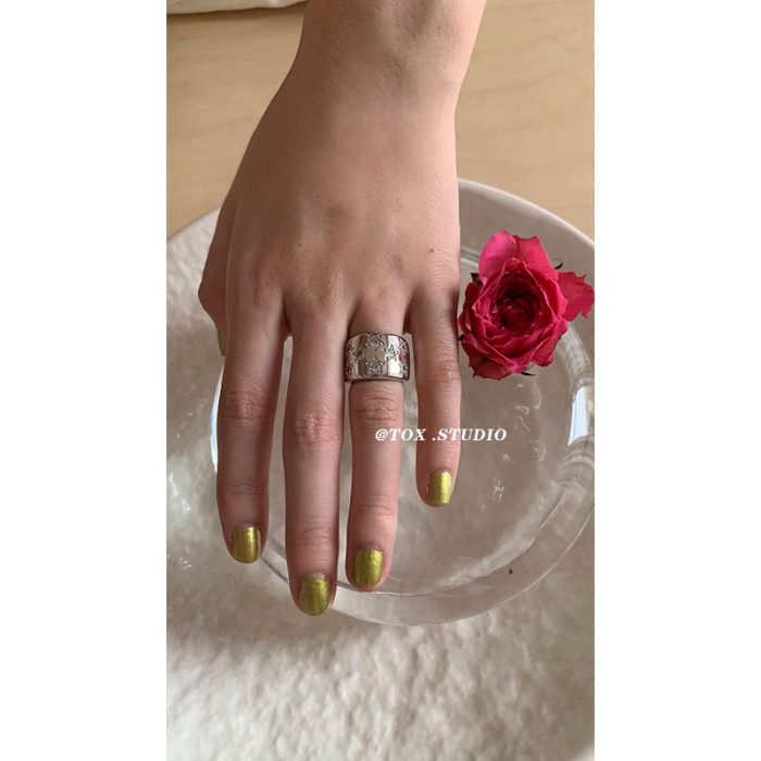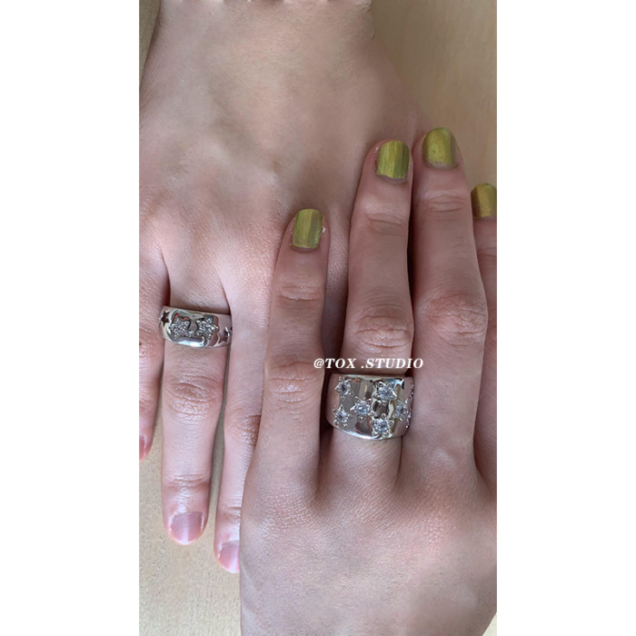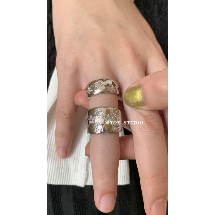 TOX ACC韓版甜酷星星閃鑲鑽可開口鏤空戒指女寬窄個性百搭指環女