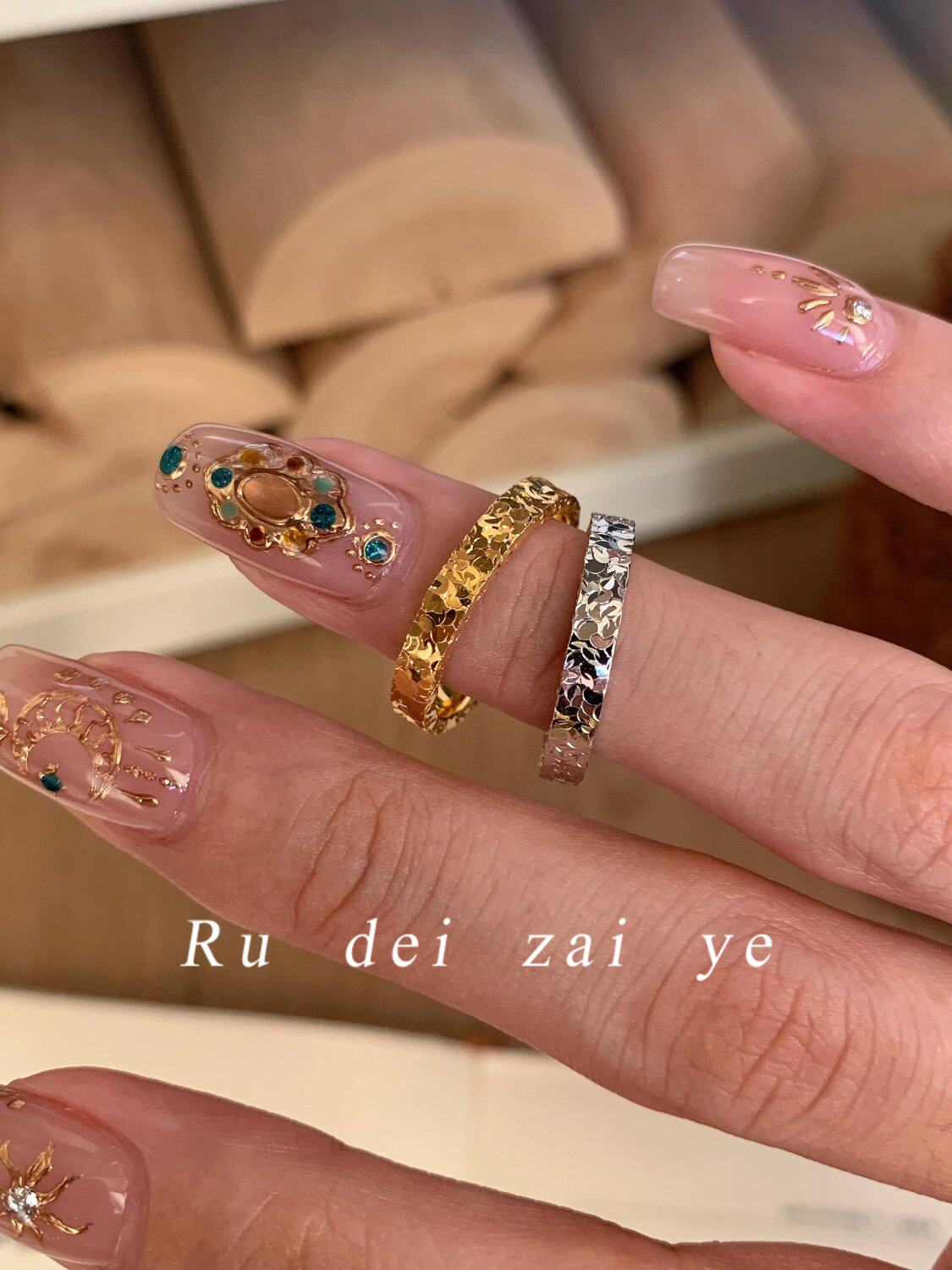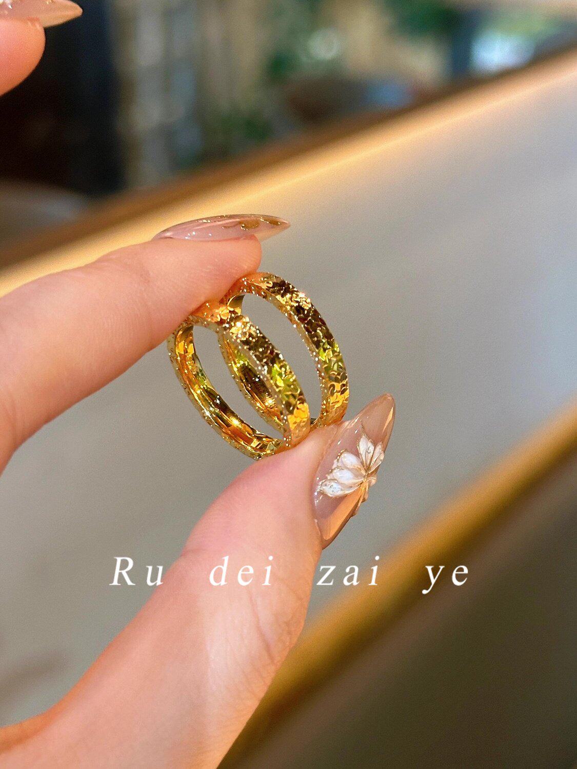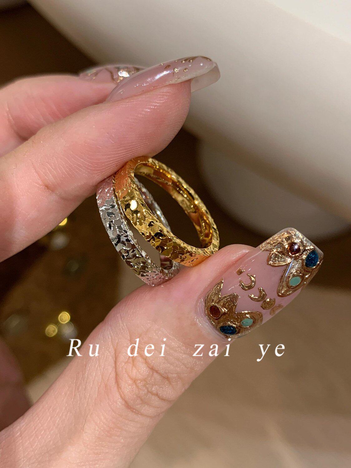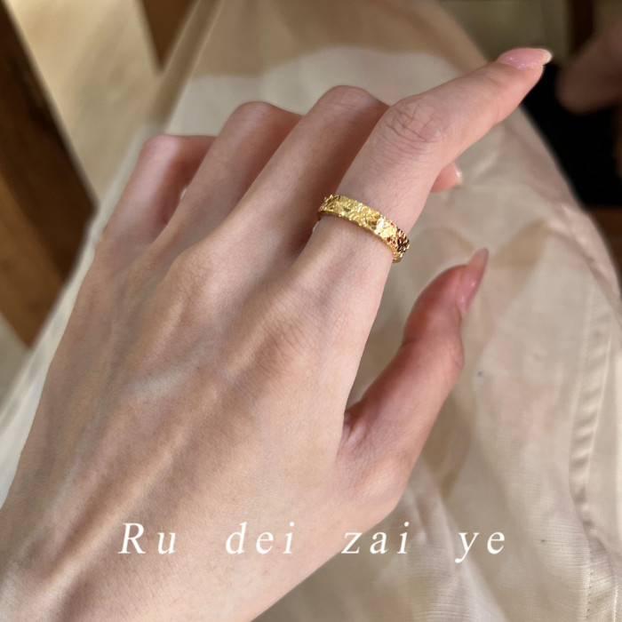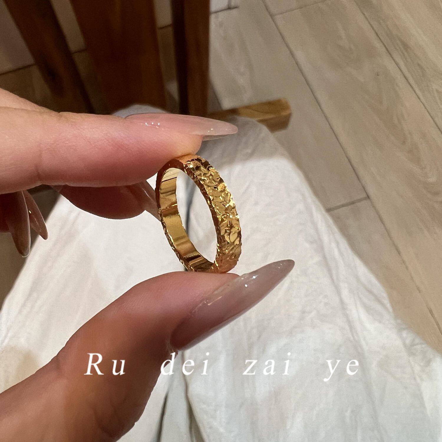 如蝶在野 碎冰冰超閃素圈高保色戒指中式復古高級感精緻百搭戒指